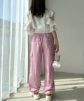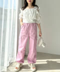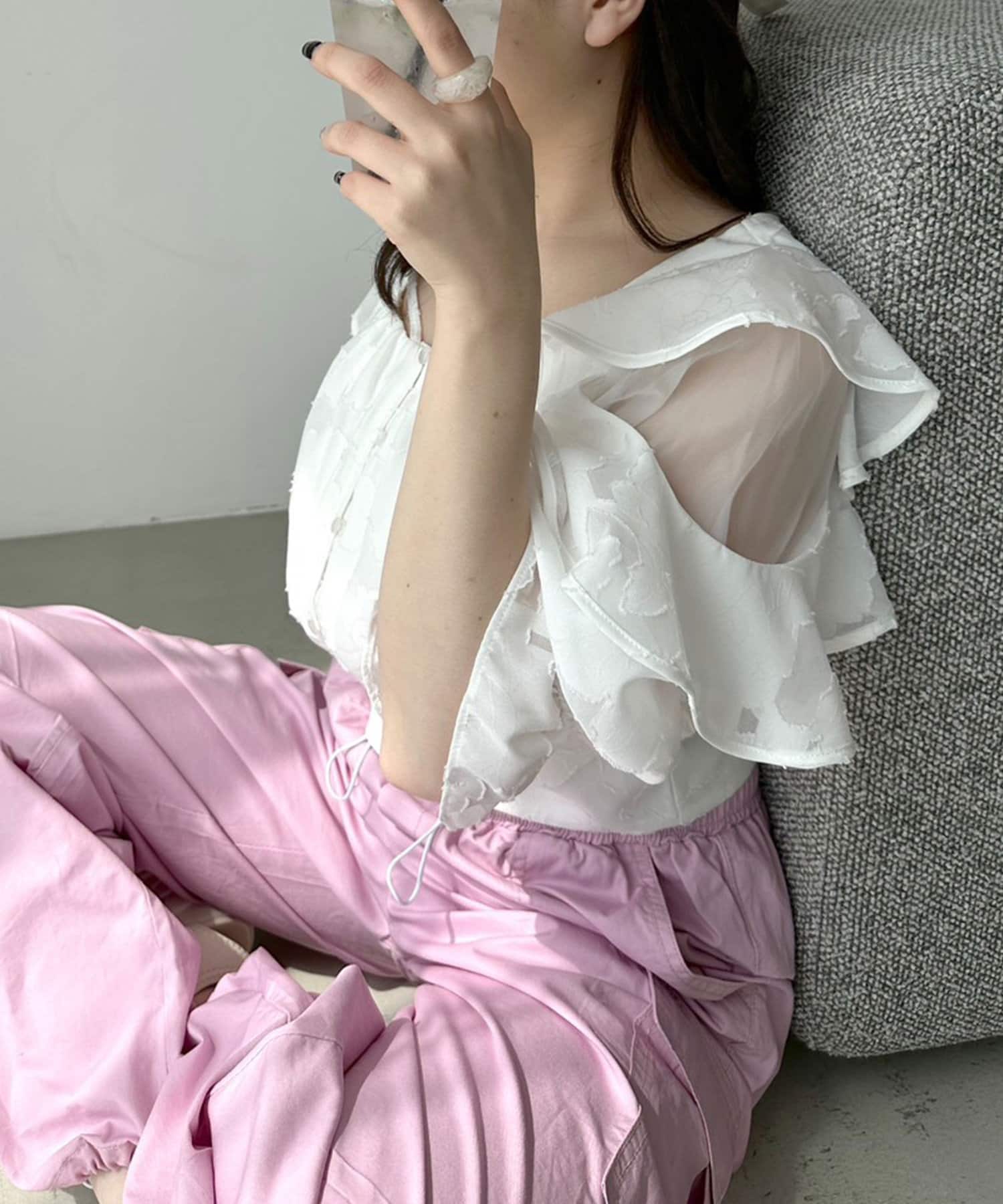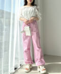 袖のガーリーなデザインなのでカジュアルなボトムで合わせるのが◎