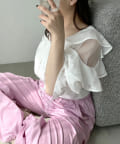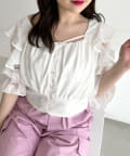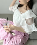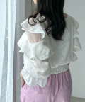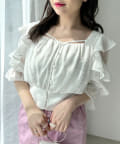 オープンフリル袖ブラウス