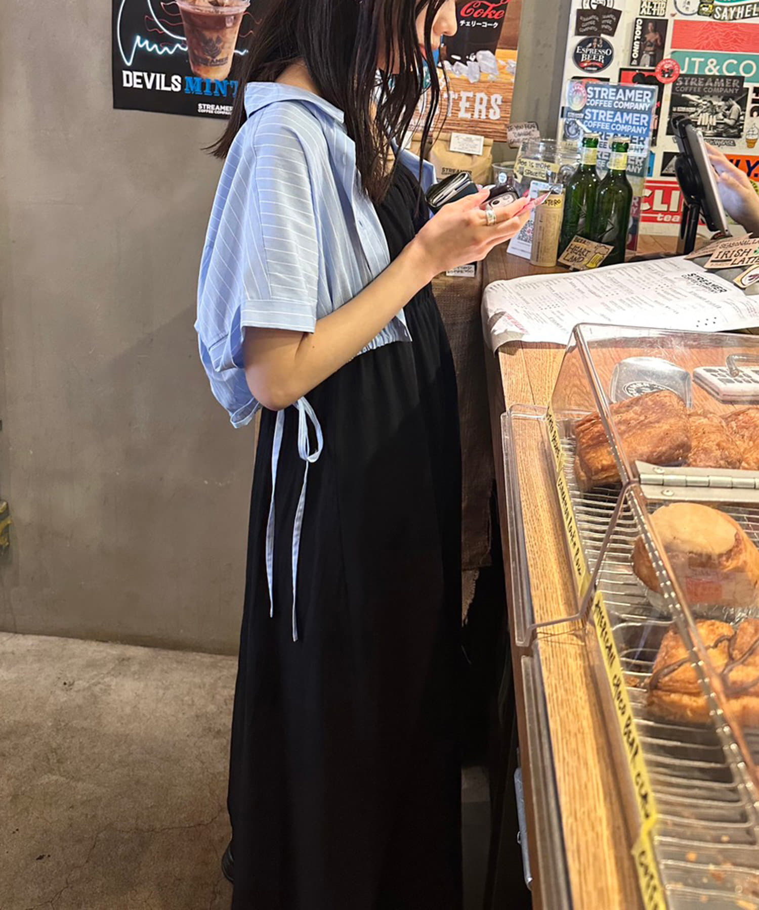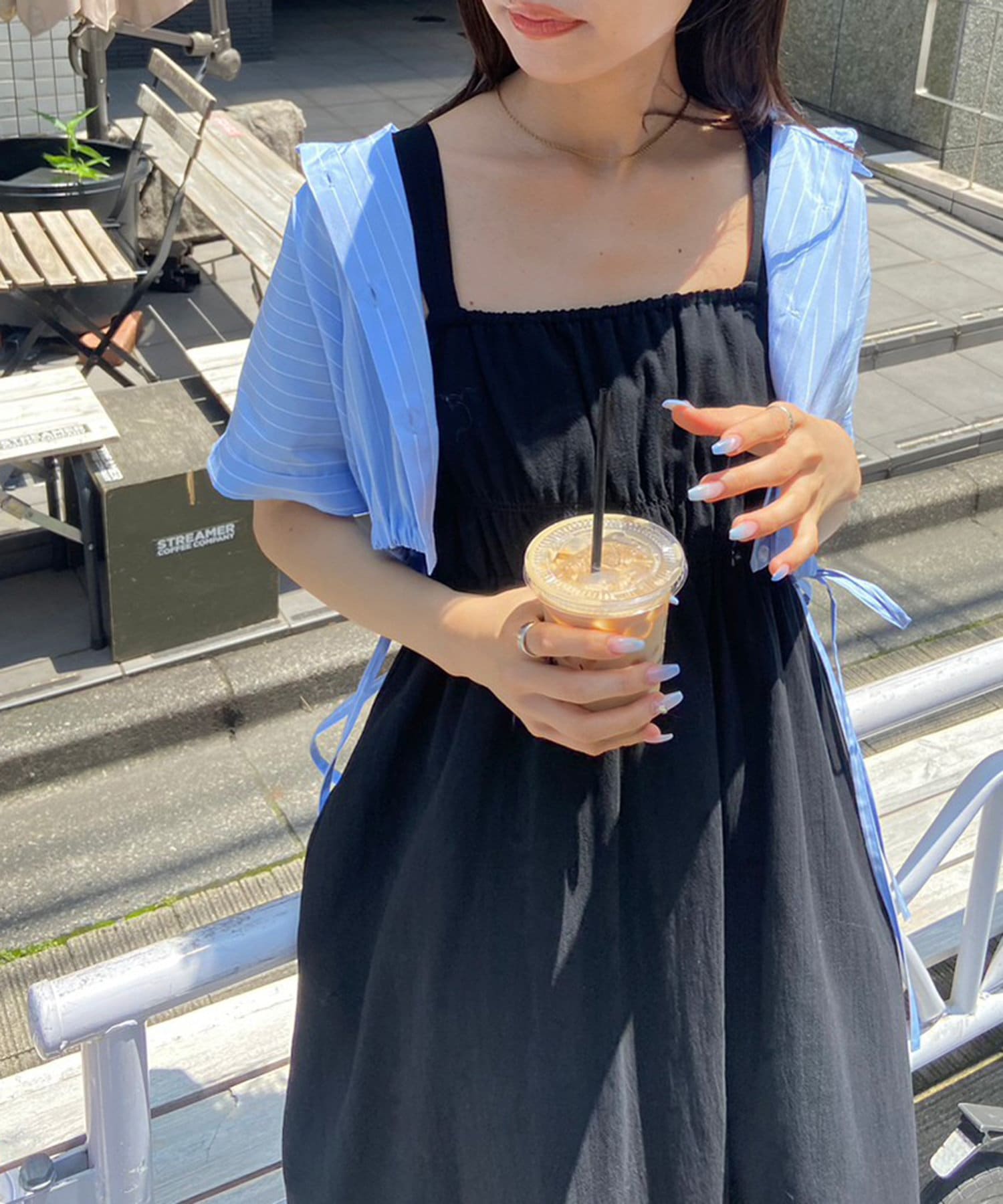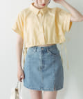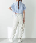 ・ウエストリボンと、ゆるっとしたサイジングが女性らしいシャツ。