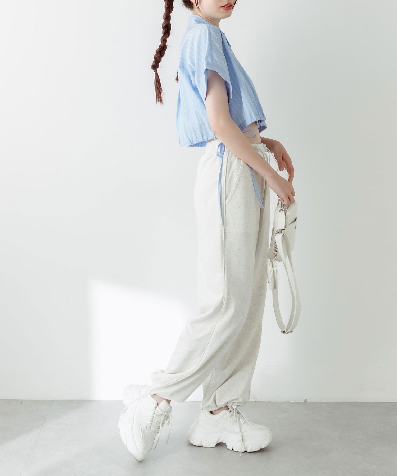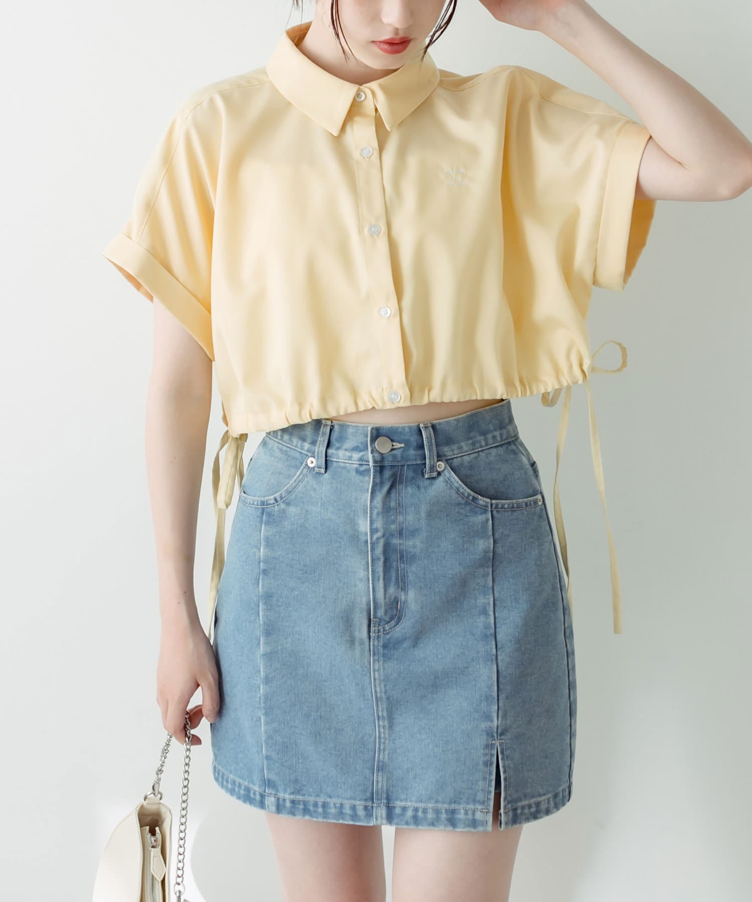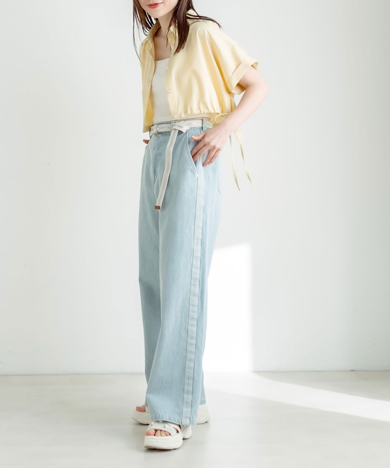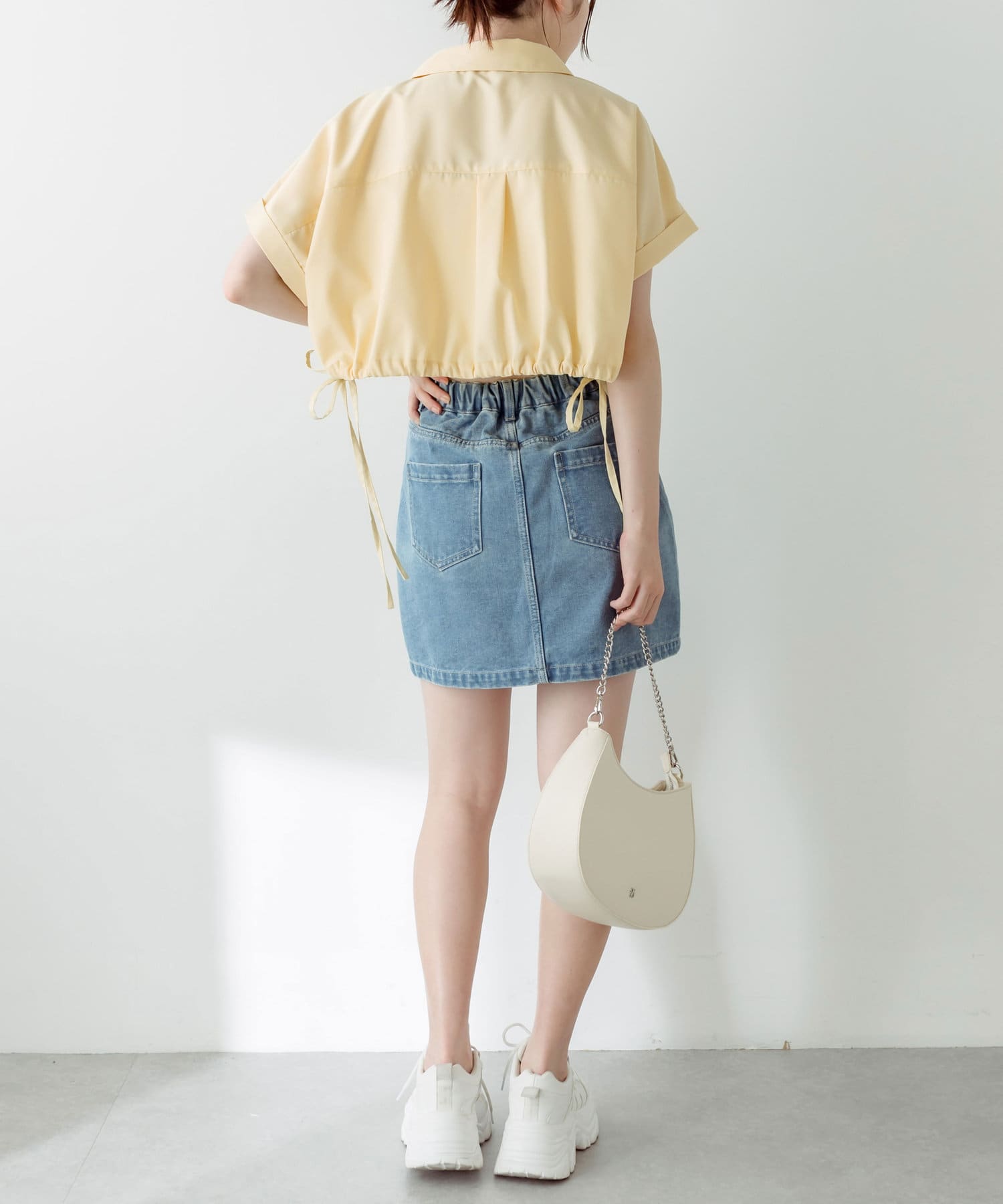 クロップド丈なのでハイウエストボトムと合わせるとスタイルアップ◎