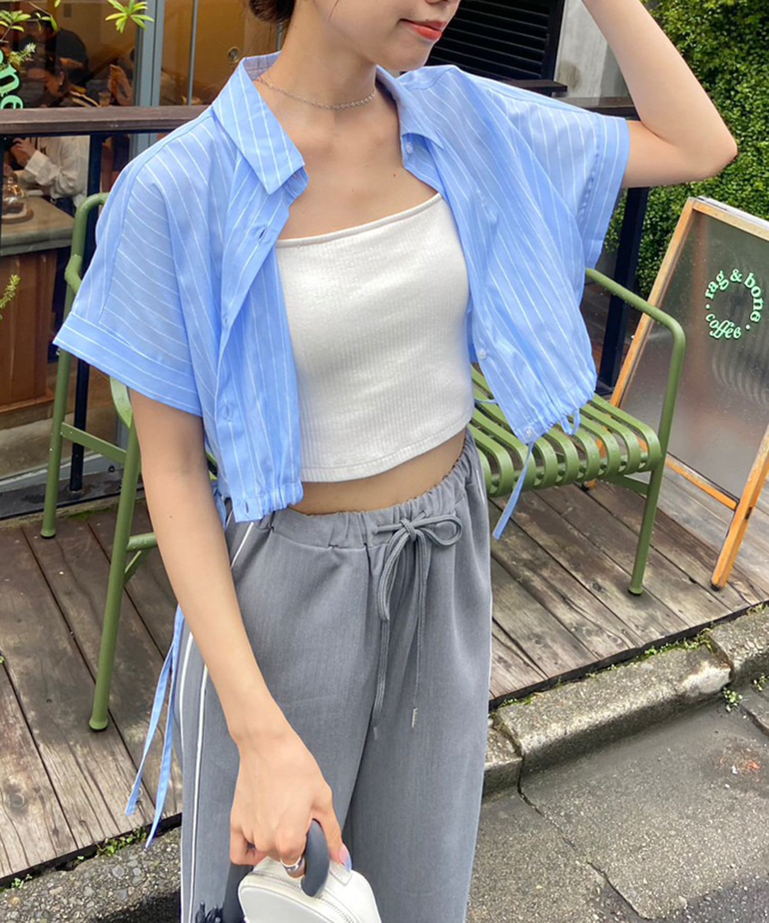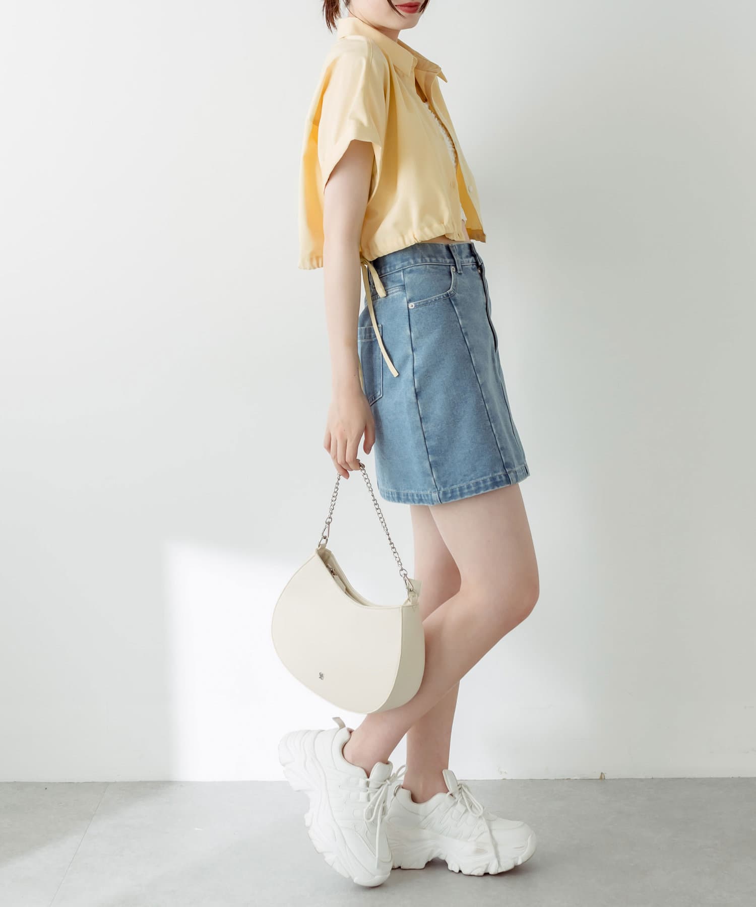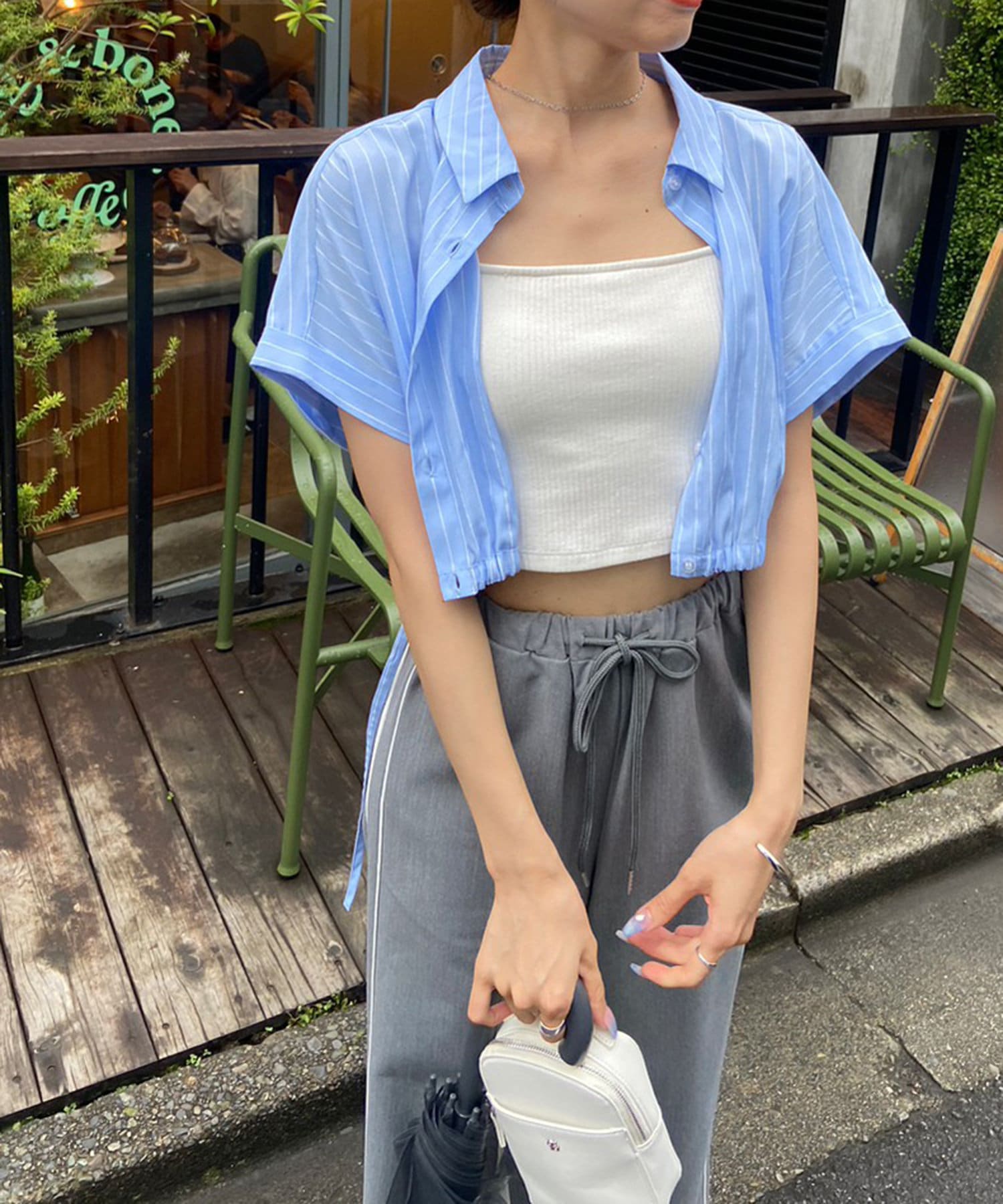 ・クロップド丈なのでハイウエストボトムと相性◎スタイルアップ効果があります。