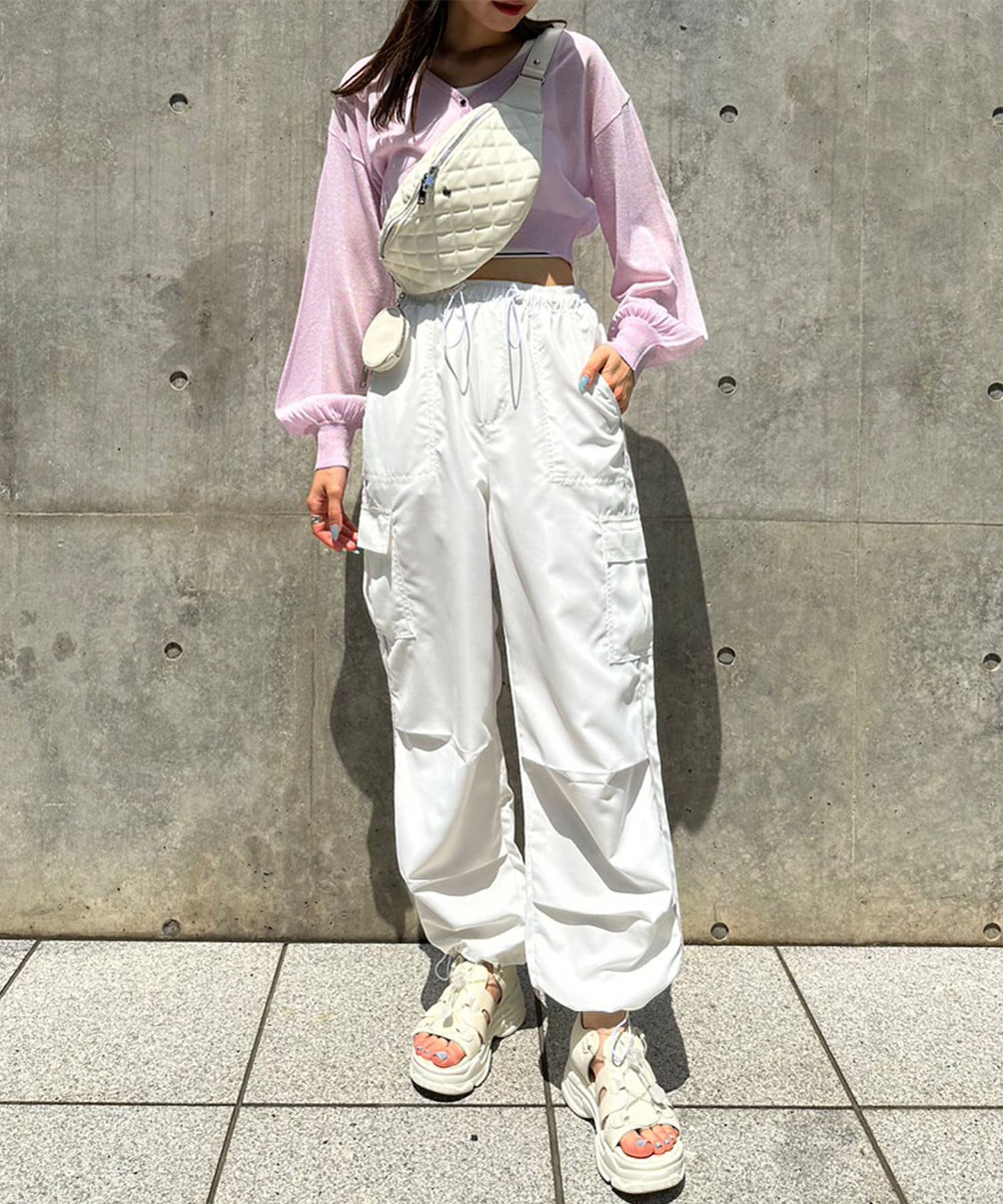 トレンドのカーゴパンツやデニムなどカジュアルなボトムスとも相性抜群◎
