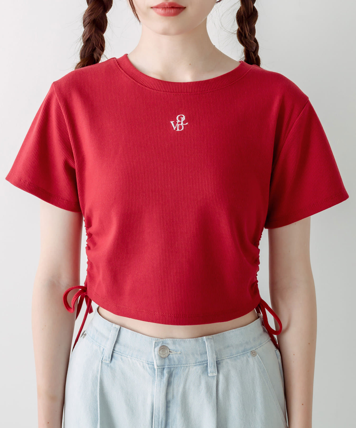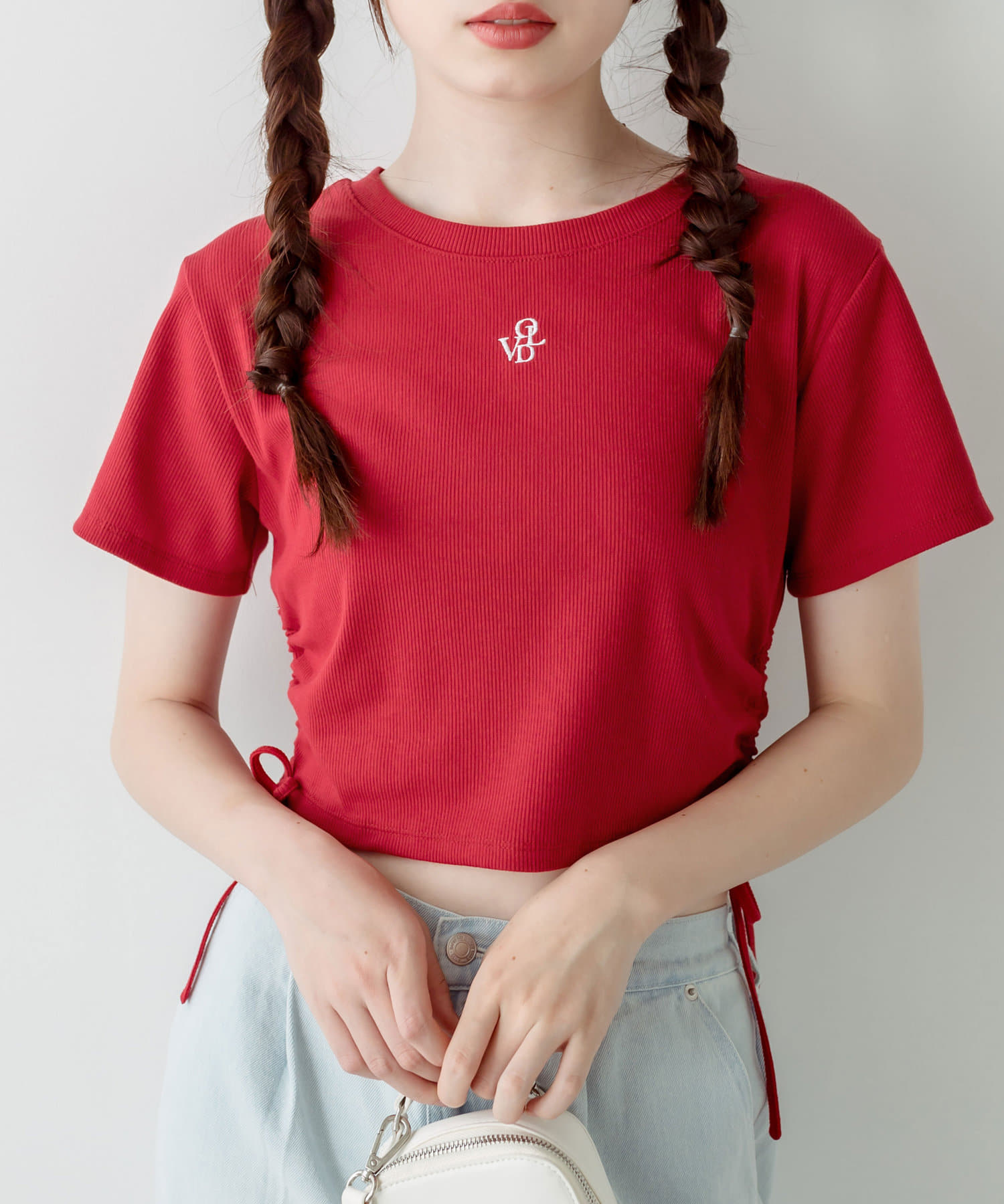 ・オリーブのロゴ刺繍が可愛いドロストTシャツ。