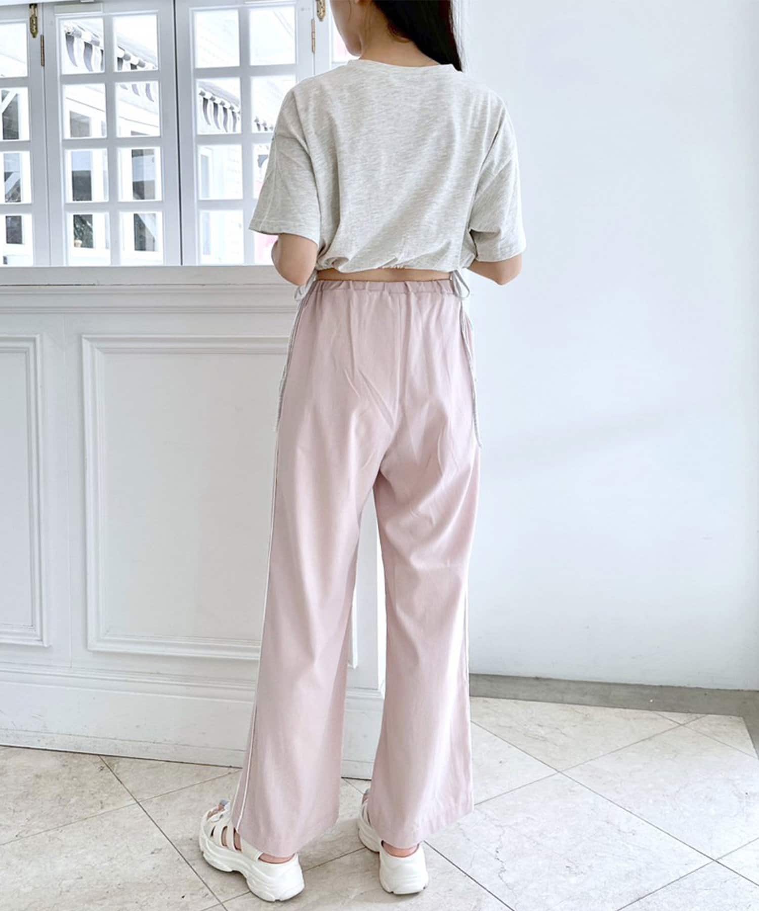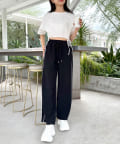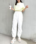 ・トレンドのラインパンツやカーゴパンツで合わせるのがおすすめ。