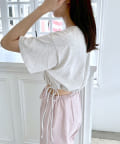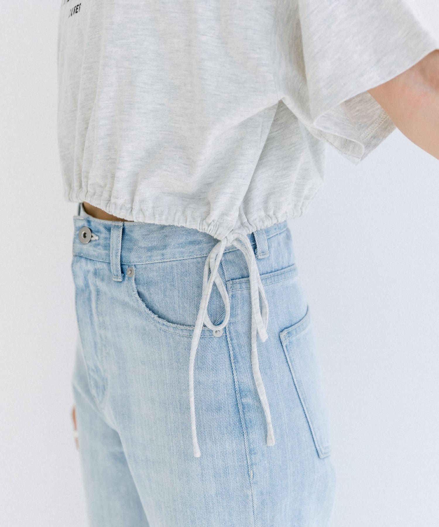 ・短めの着丈なので様々なボトムスに合わせやすいです。お腹の肌見せが今年らしいポイントです。
