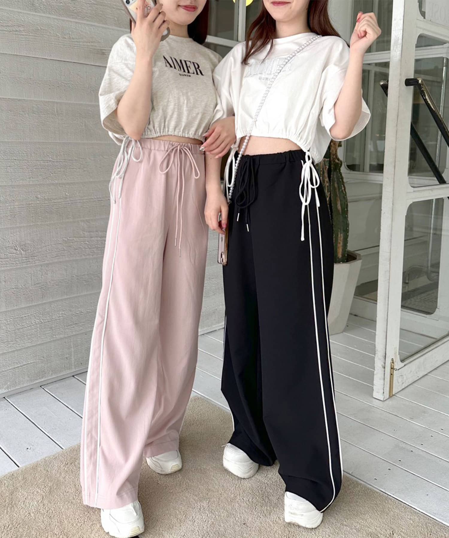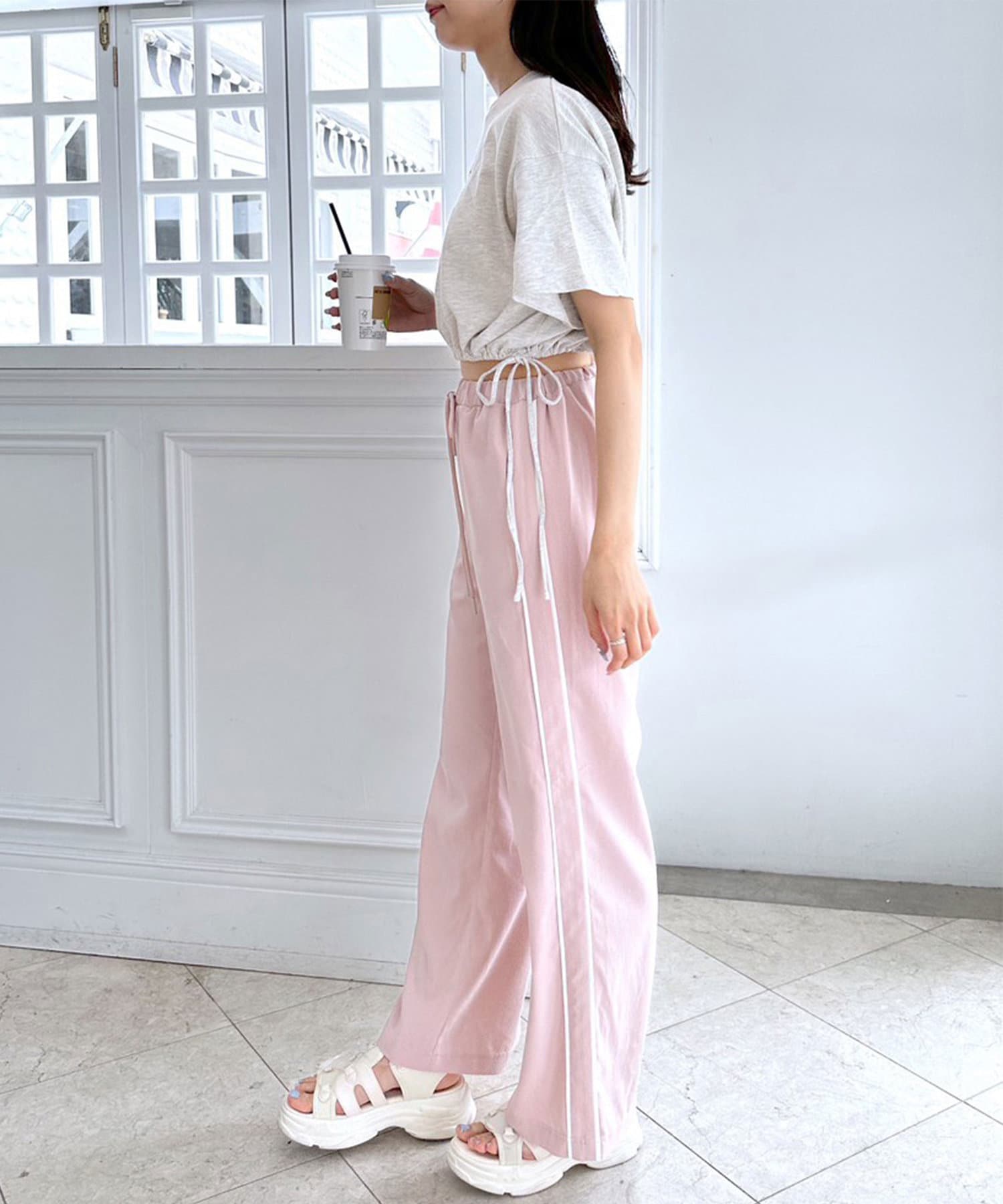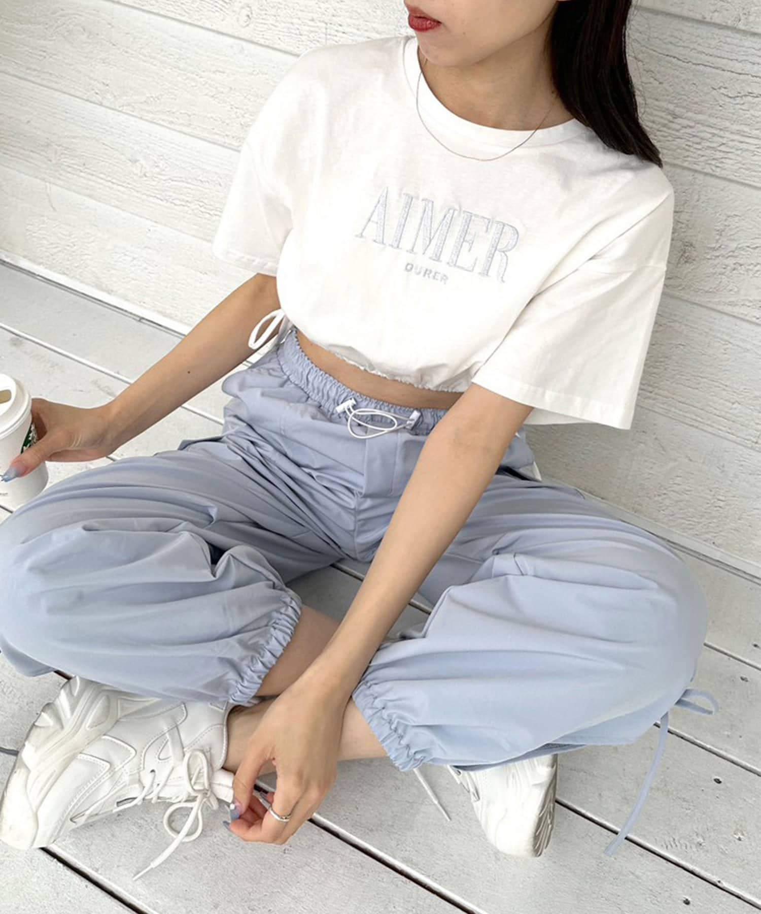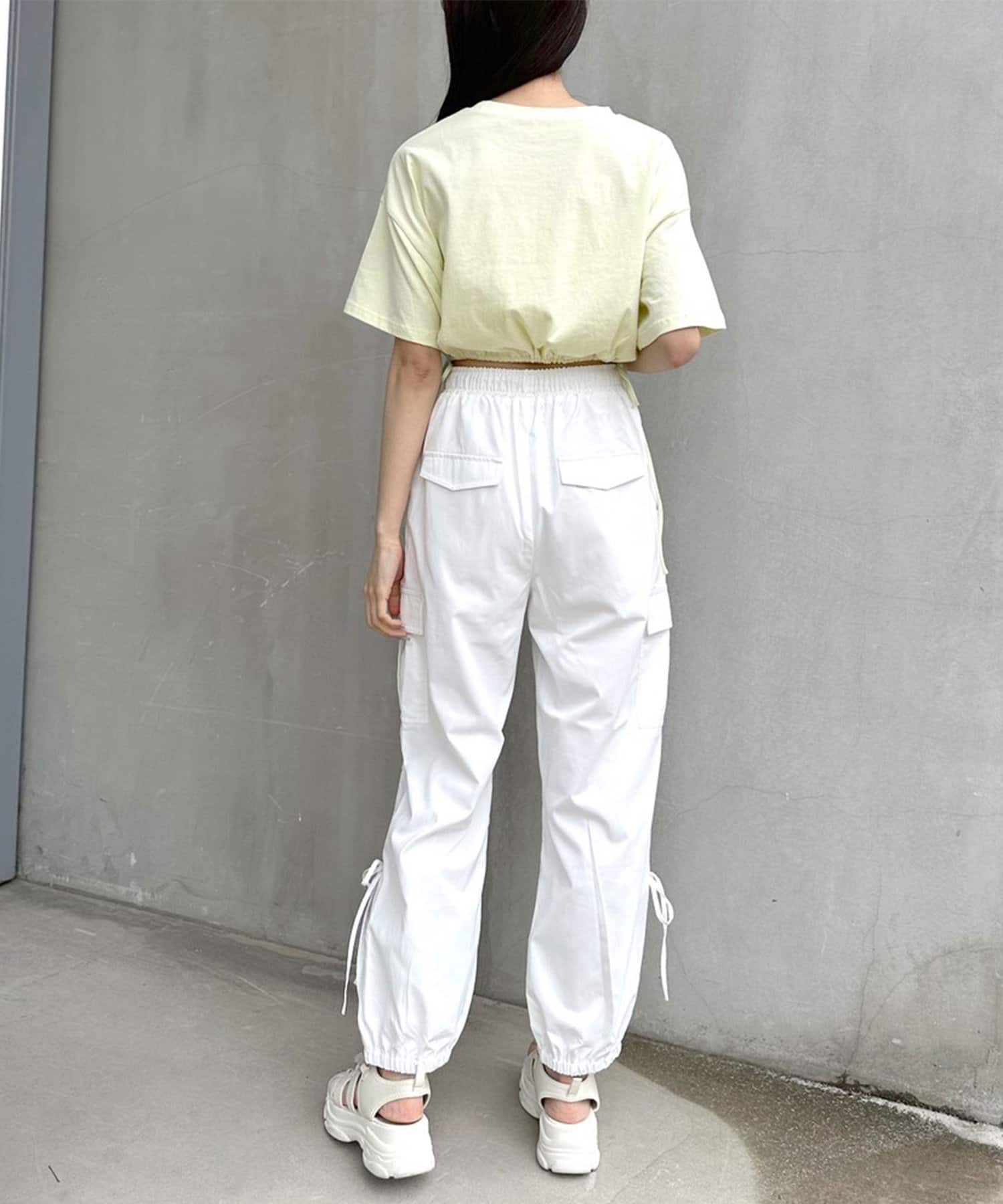 ・リボンで裾が絞れるので、お好みでシルエットを調節できます。
