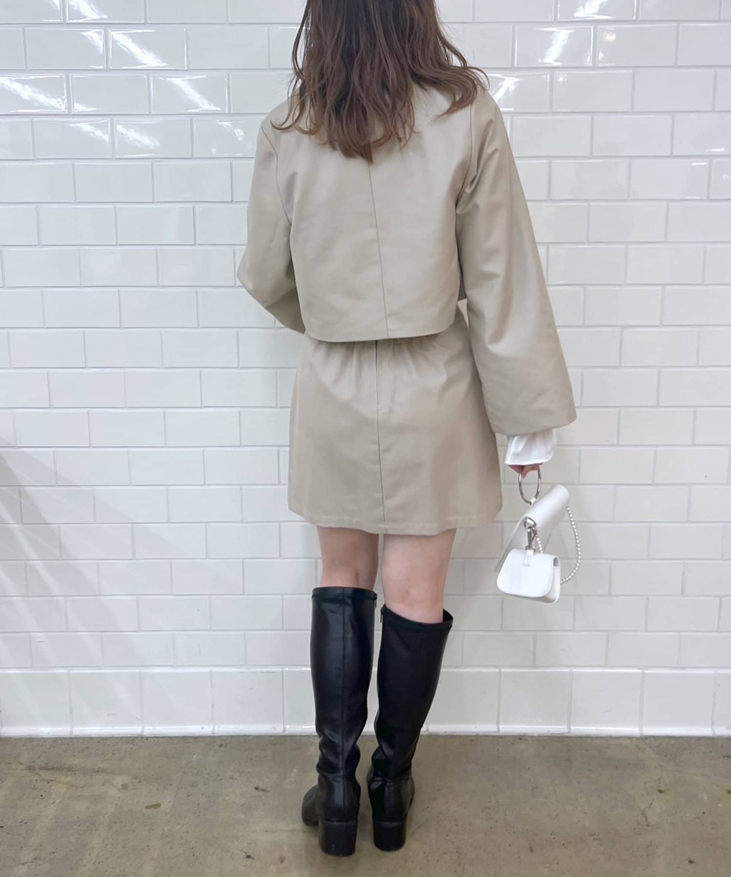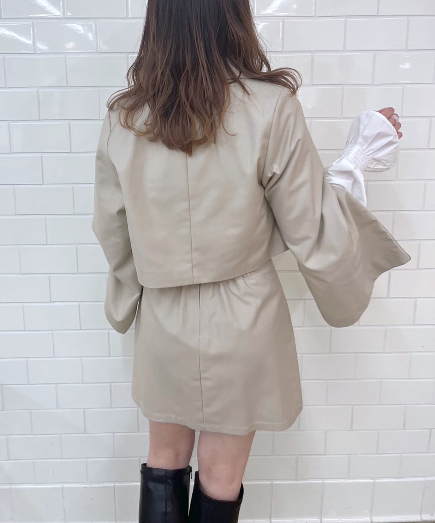 ・同素材のビットベルト付きタイトミニスカートや、サイドベルトミニプリーツスカート、バックベルトタイトスカートとセットアップで着用するのがオススメ!