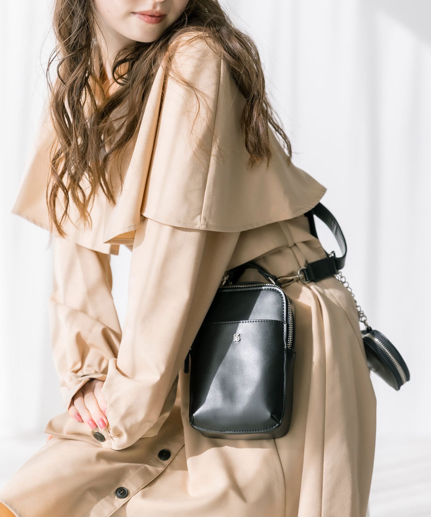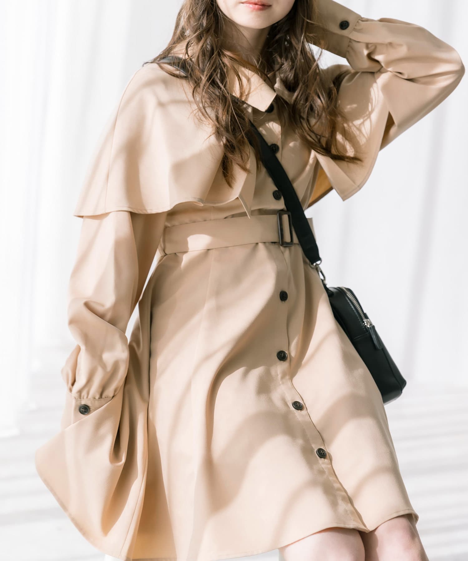 ・ケープはボタンで簡単に取り外し可能。ケープを外すとシンプルなシャツワンピースとしても楽しめます。