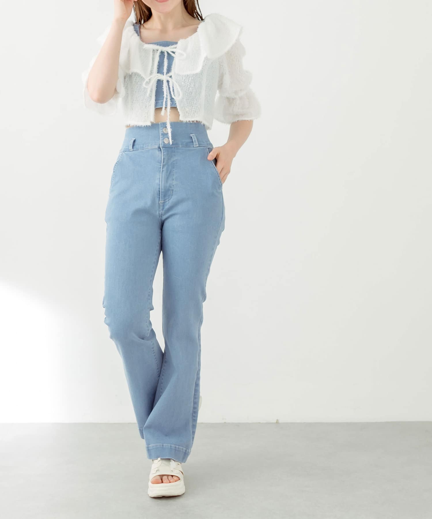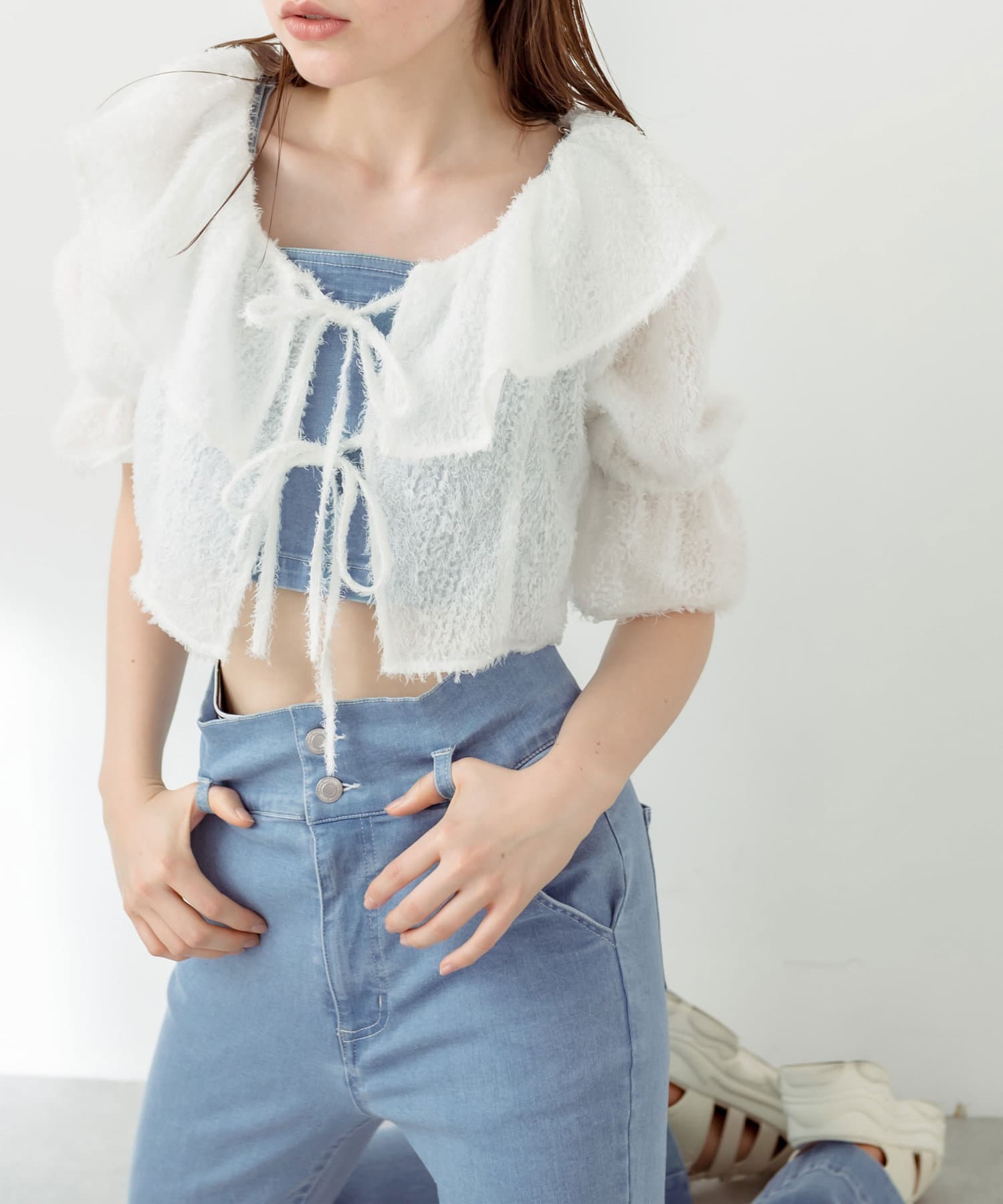 ・上からボレロをレイヤードしたり、シアーシャツを羽織っても◎