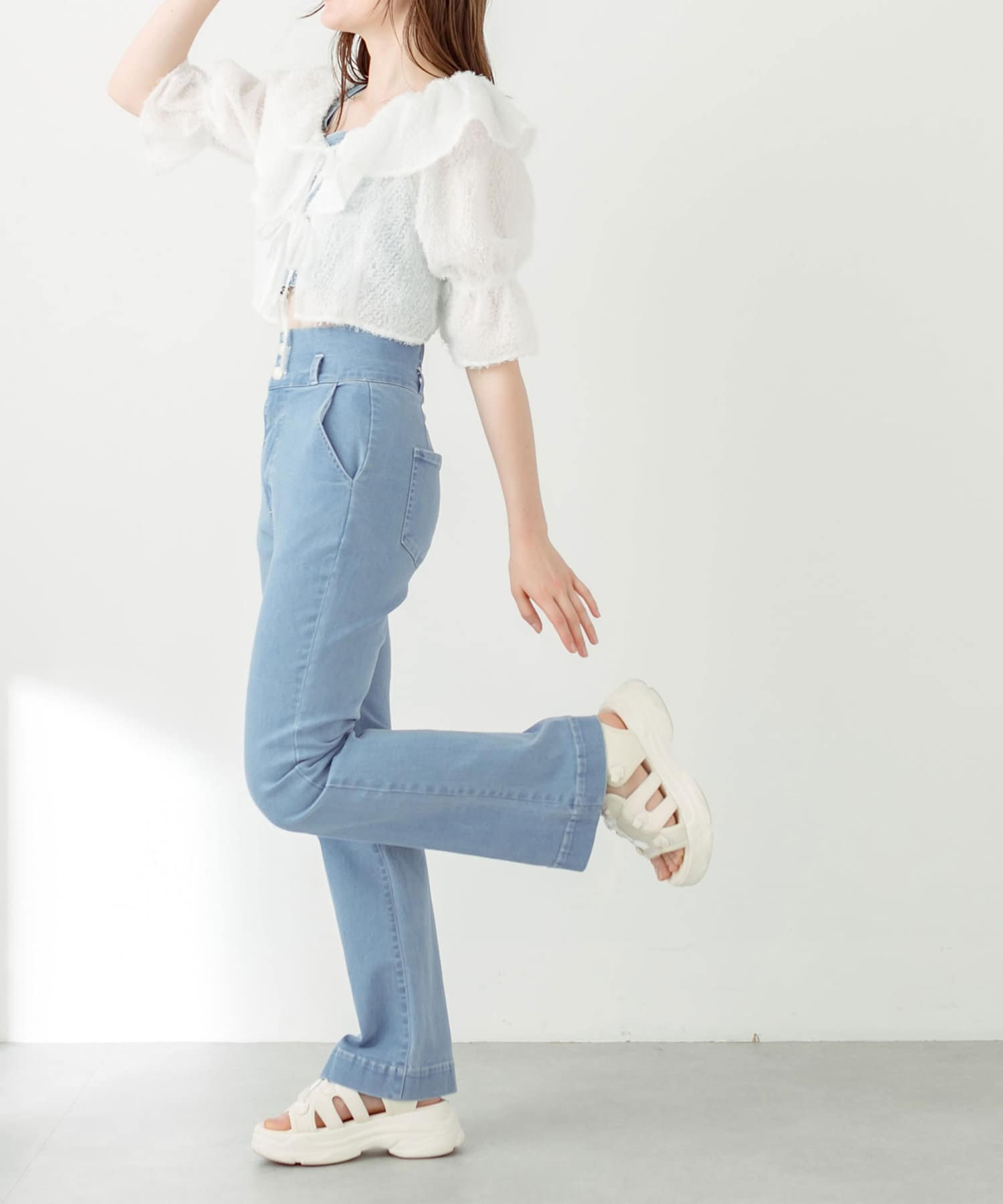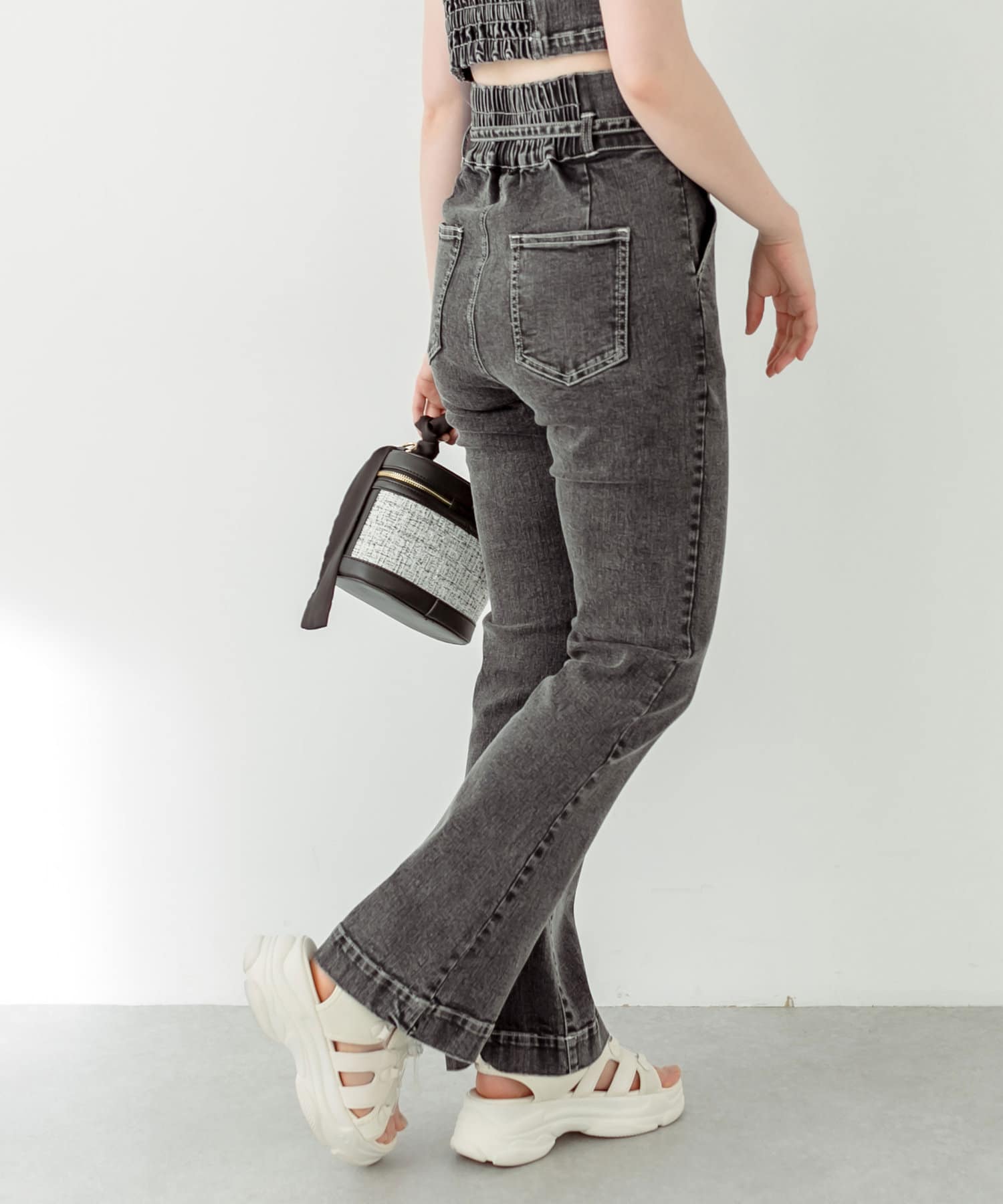 ・パンツはフレアシルエットなので脚を長く見せてくれます。