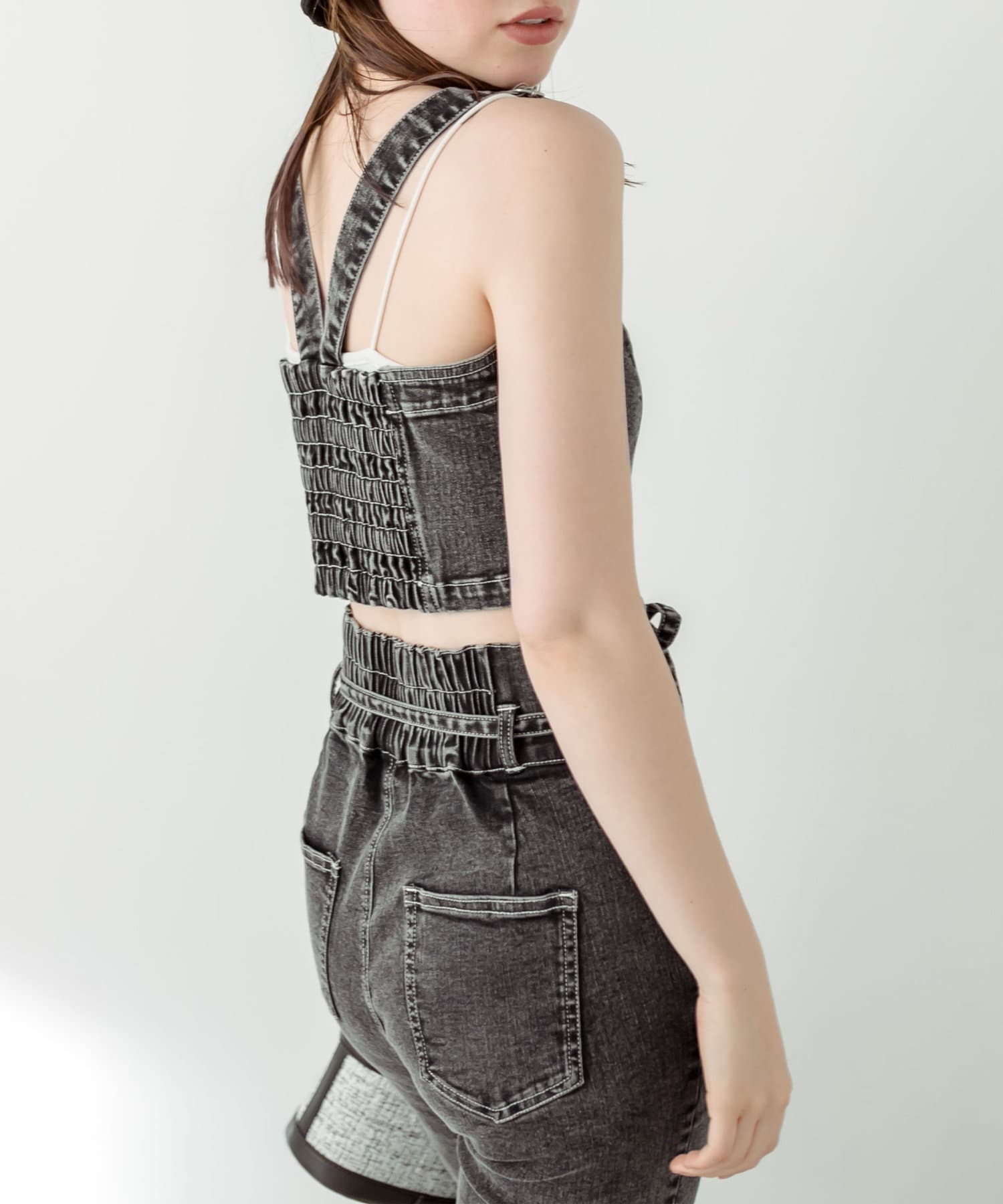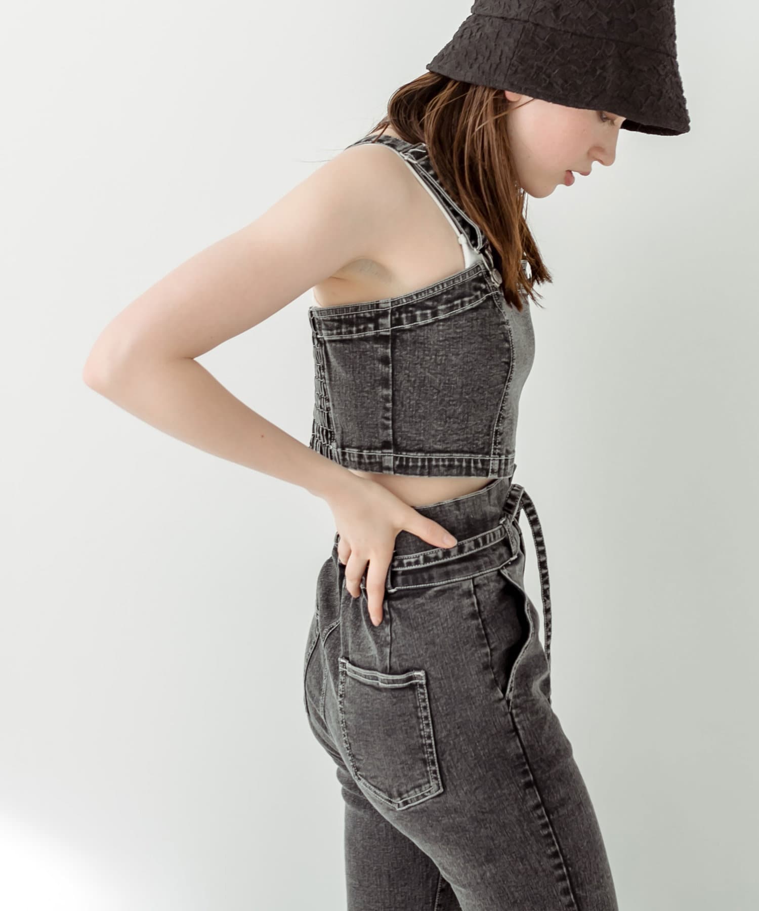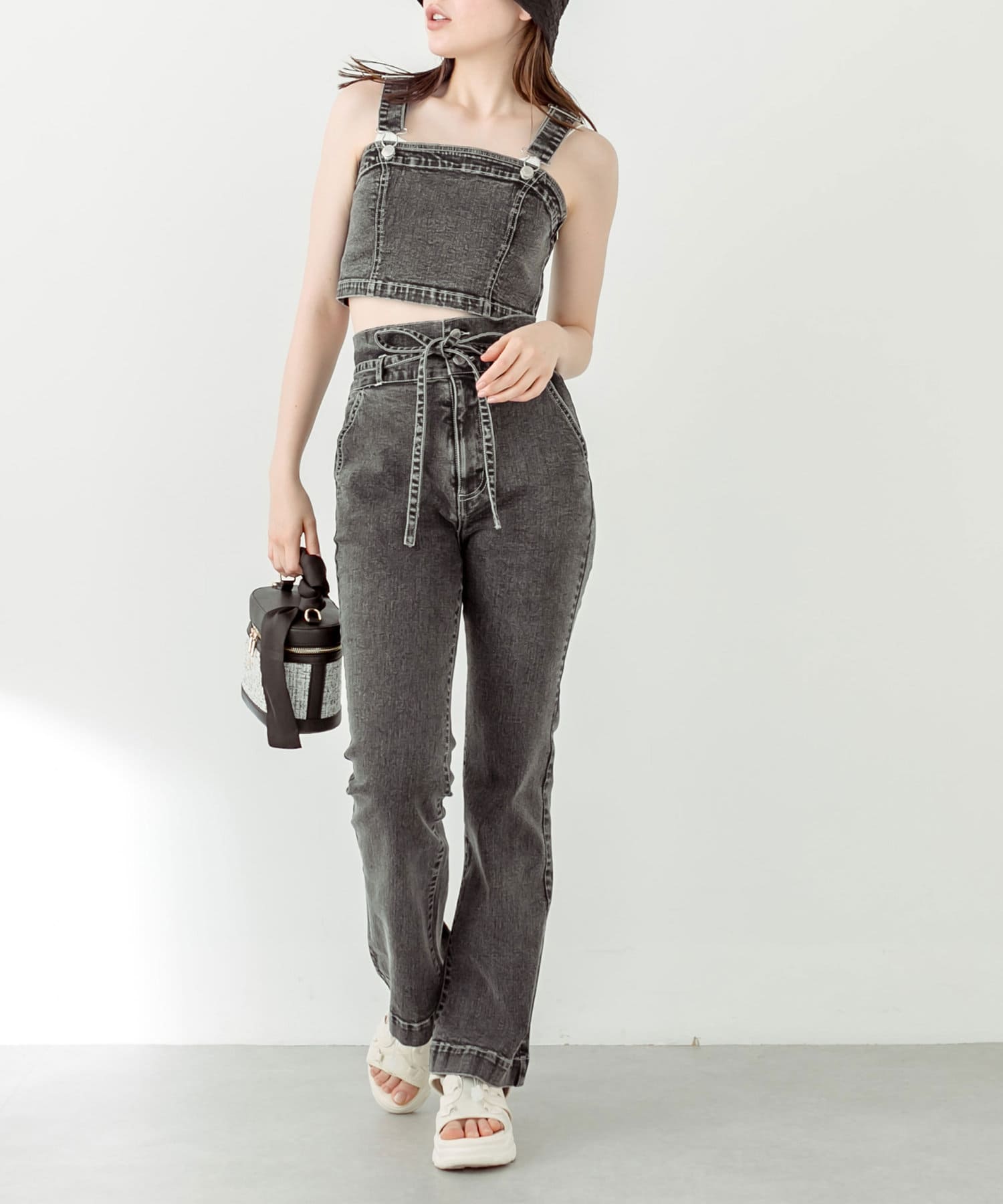 ・サロペットとして着こなせる、ビスチェとパンツのセットアイテム。