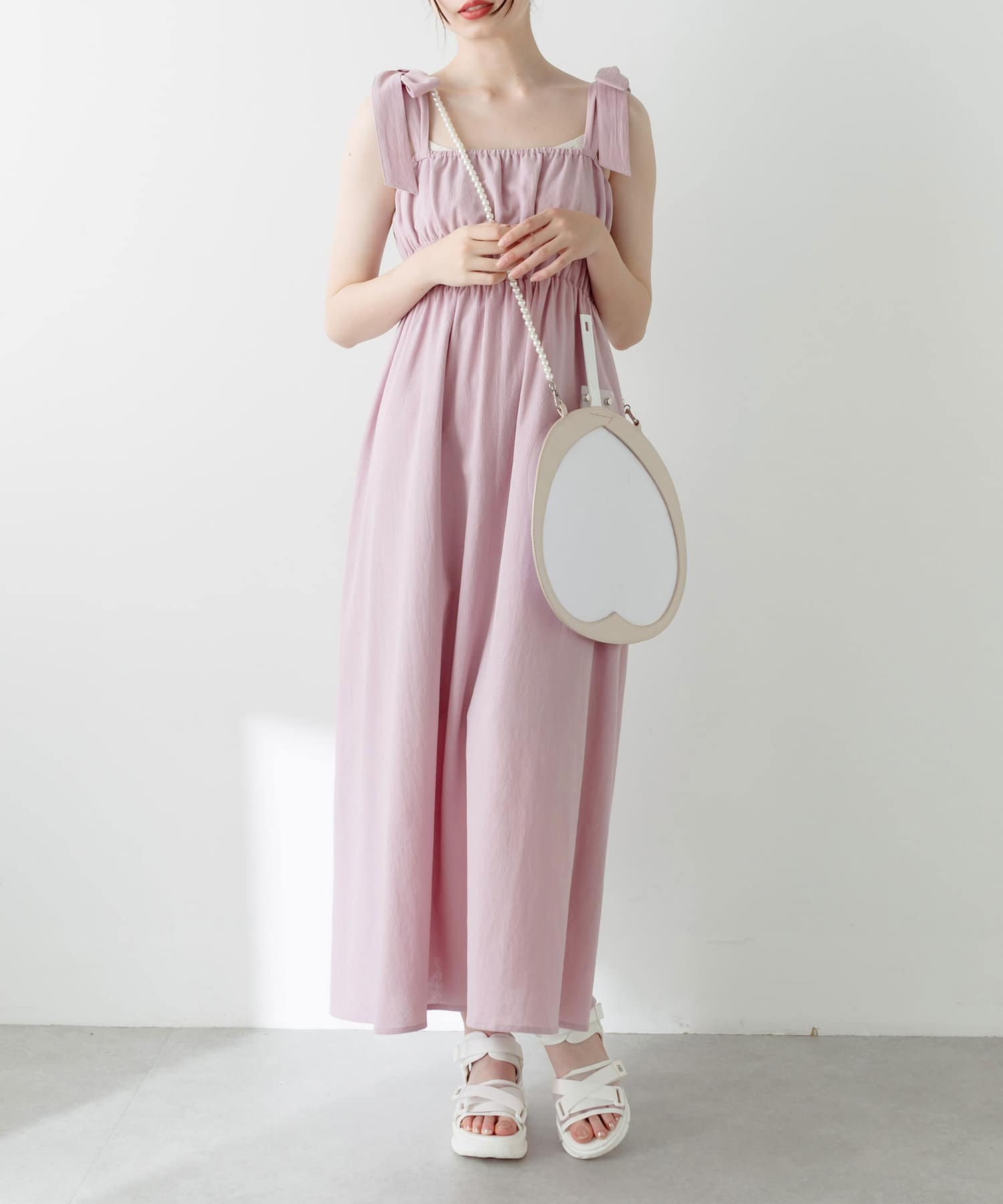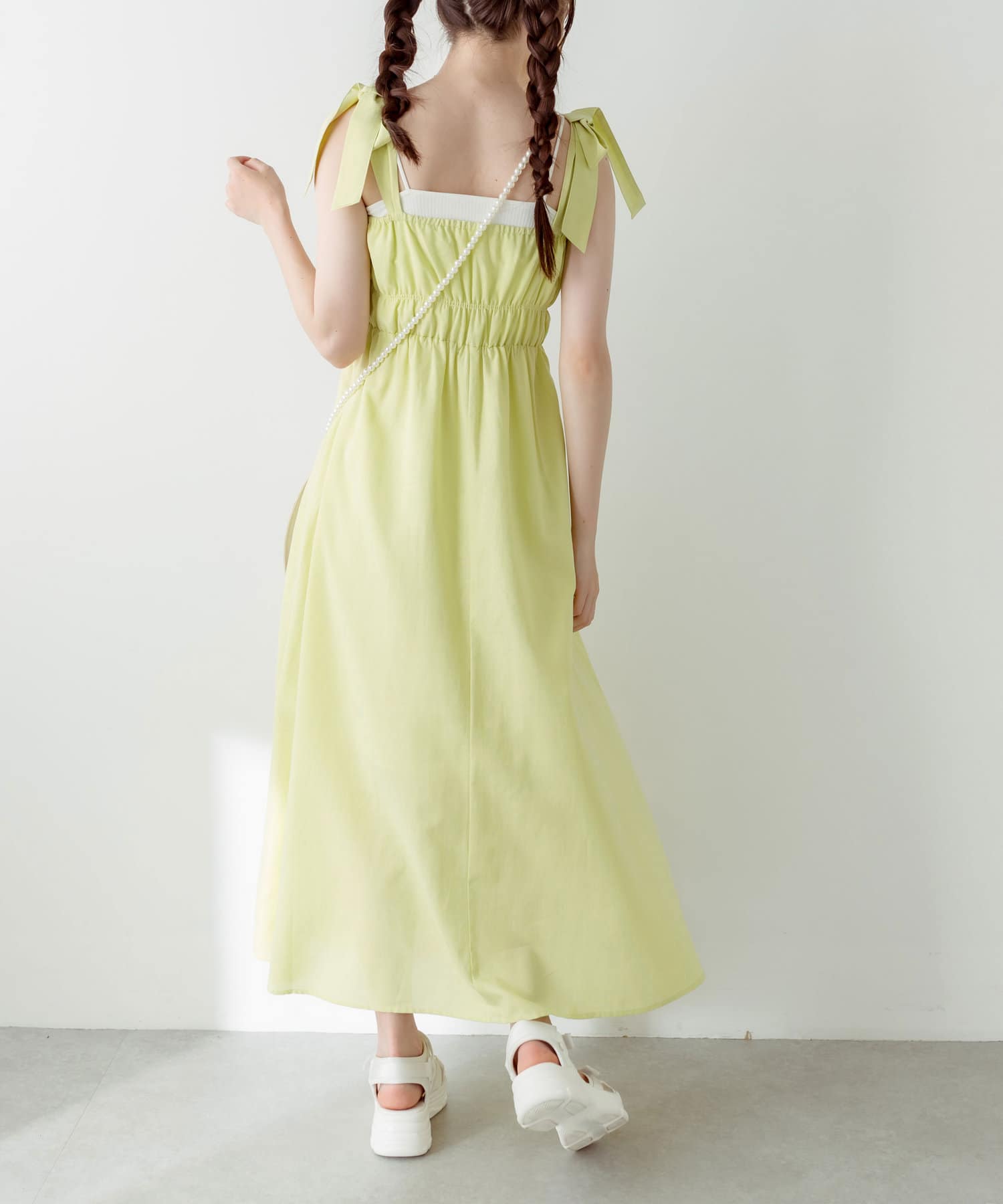 肩リボンが取り外し可能で雰囲気を変えて着れるワンピース。