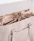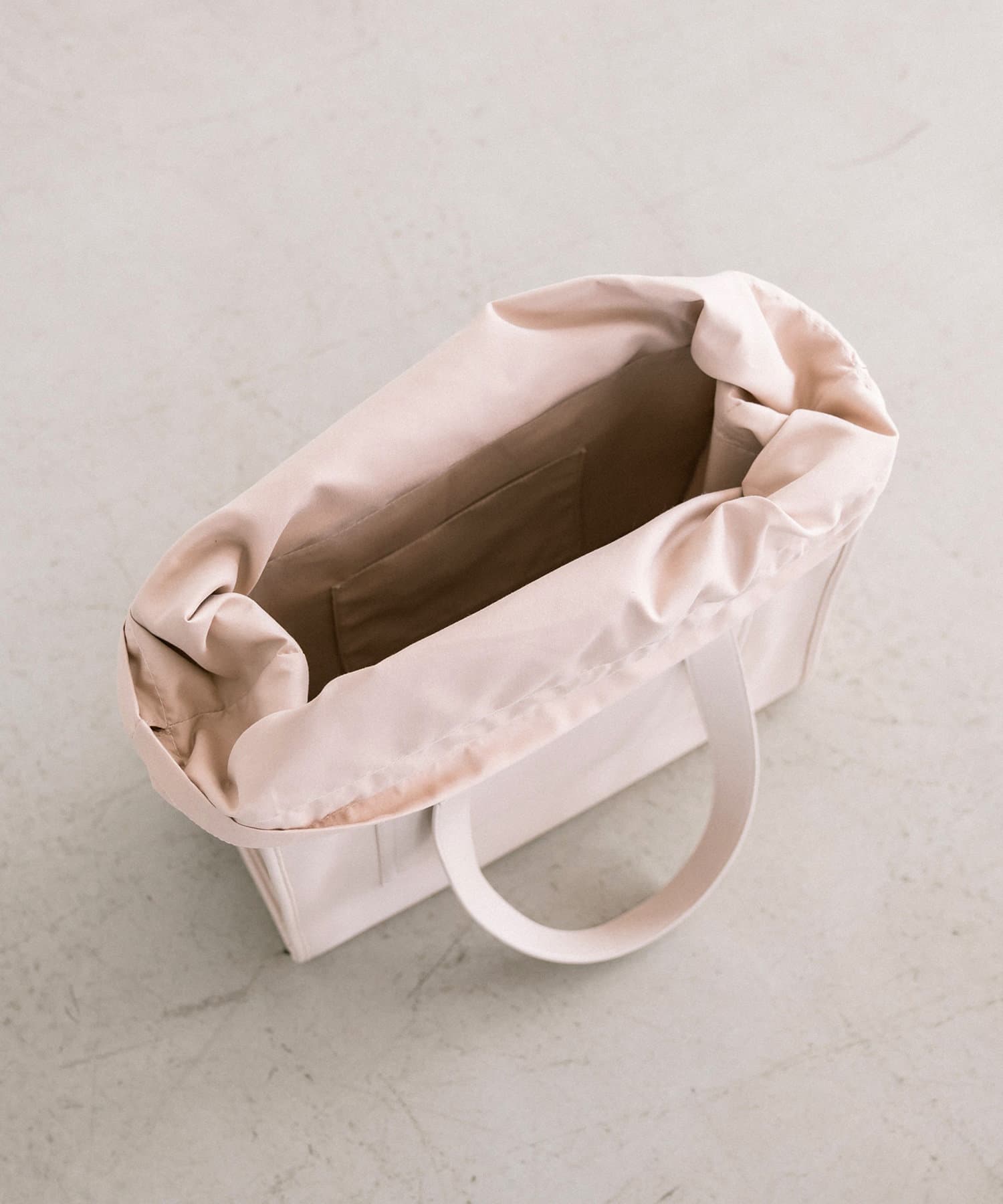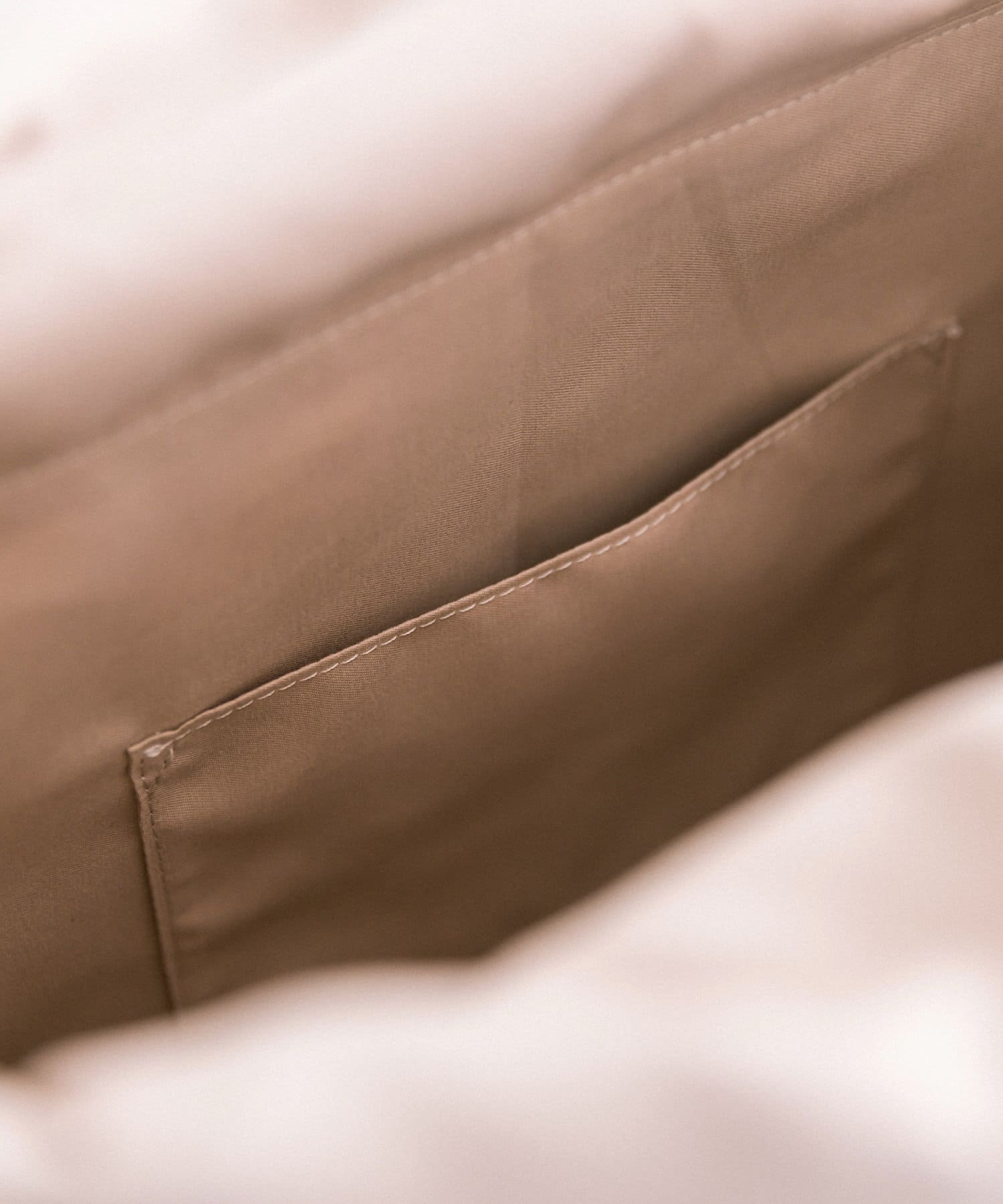 ・間口は巾着仕様で中身が見えにくく、収納に便利な内ポケット付き。