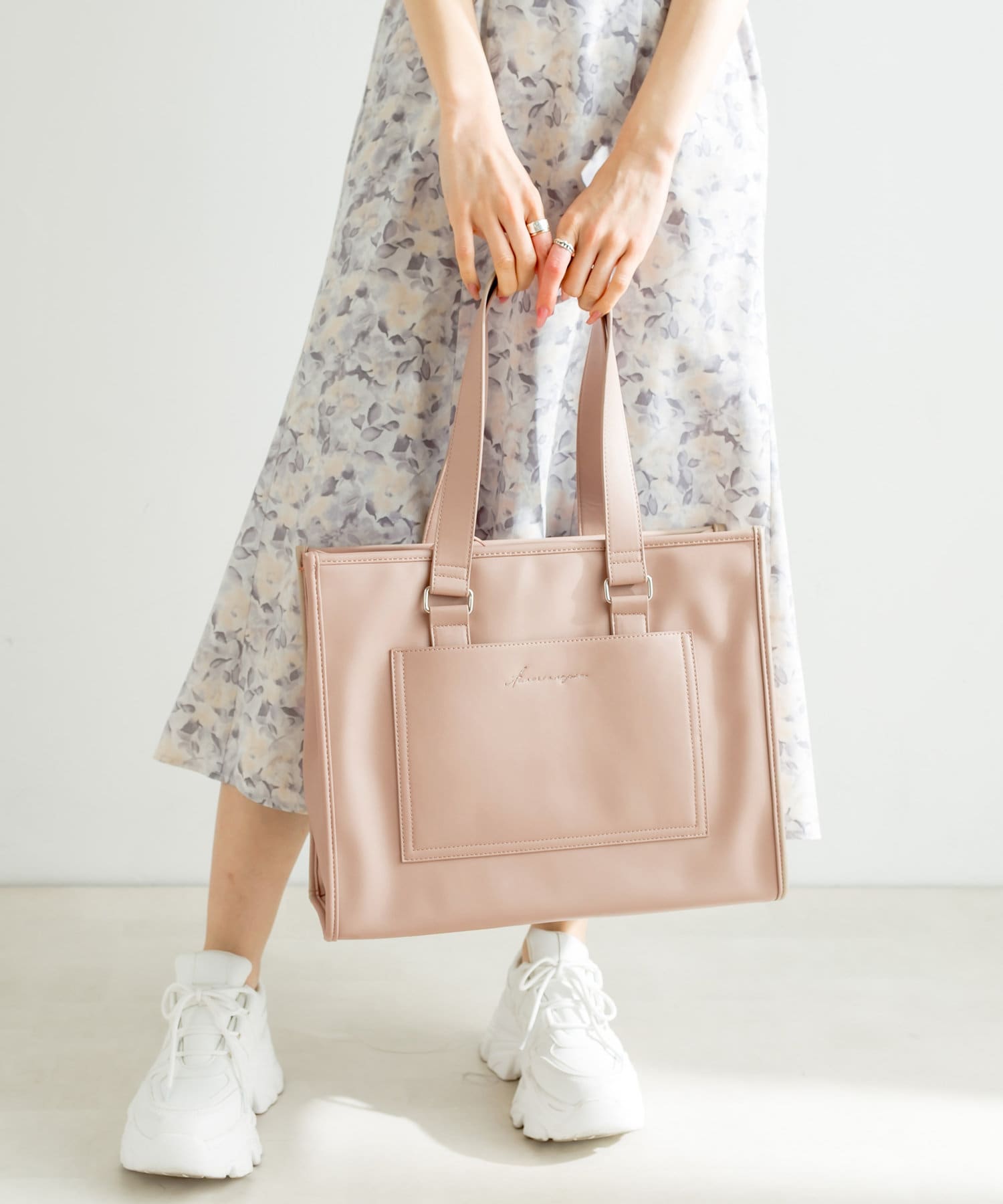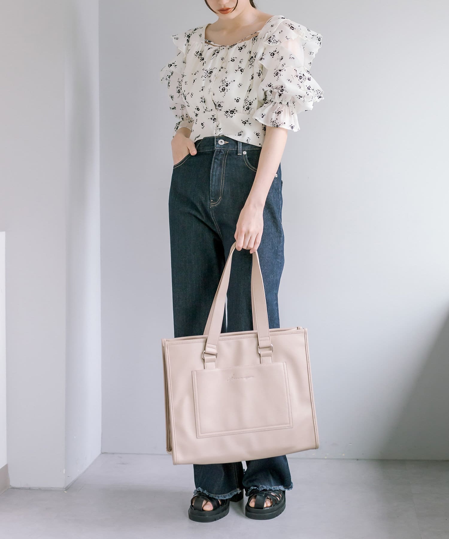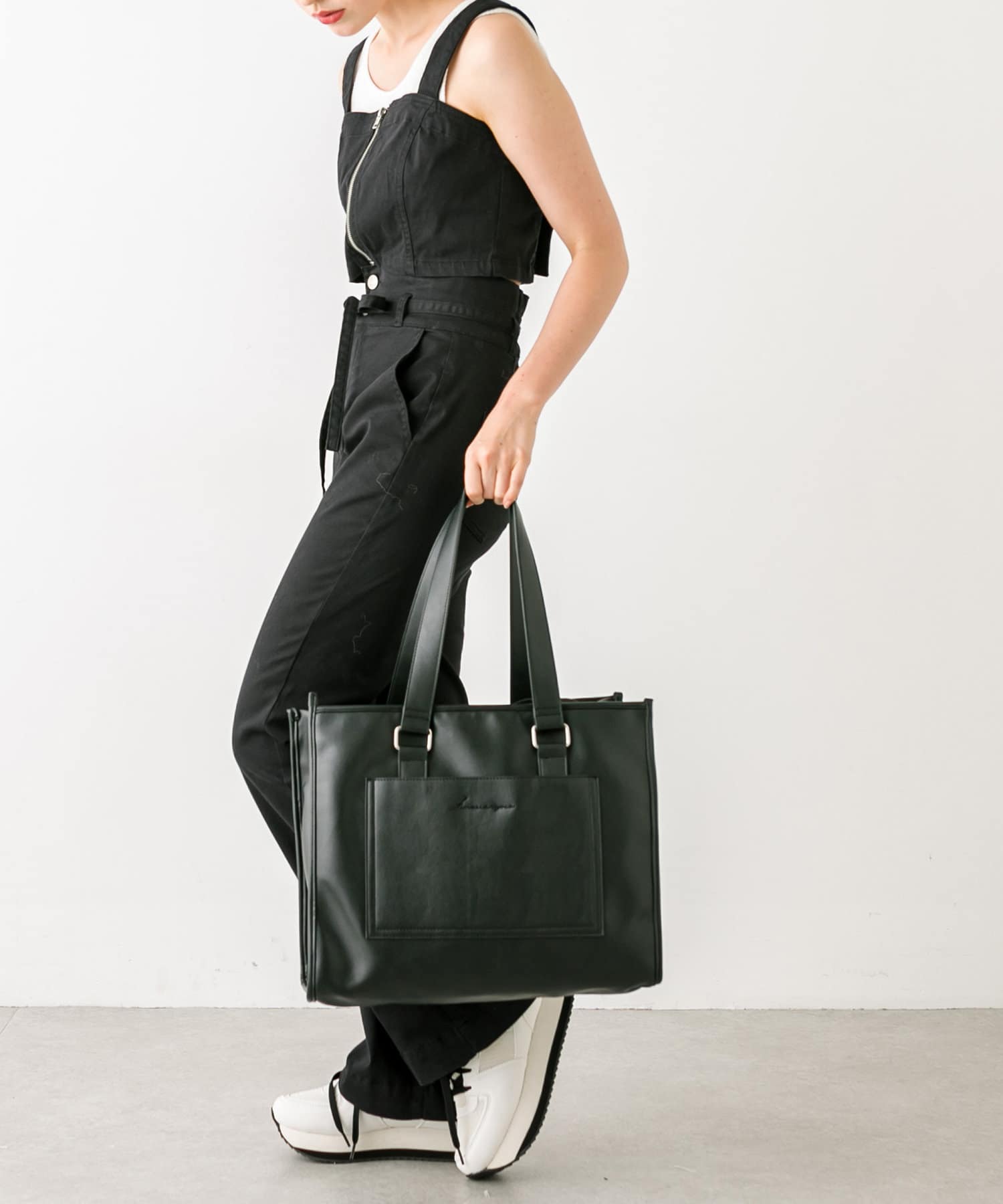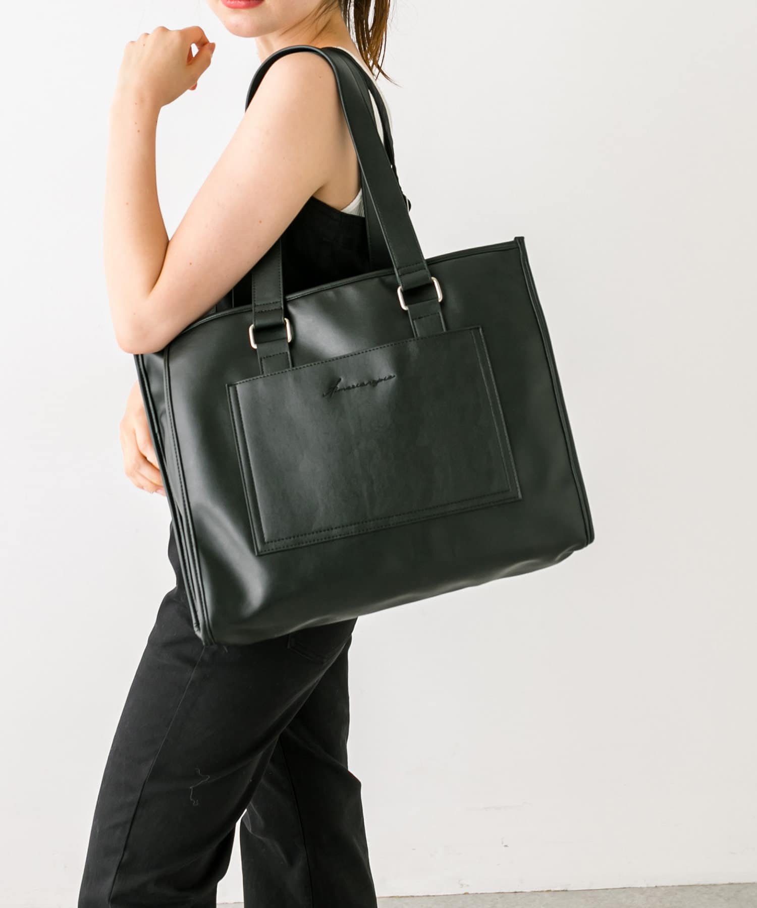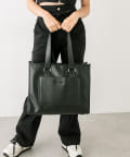 ・高見えするフェイクレザー素材を使用した、大容量サイズのトート。