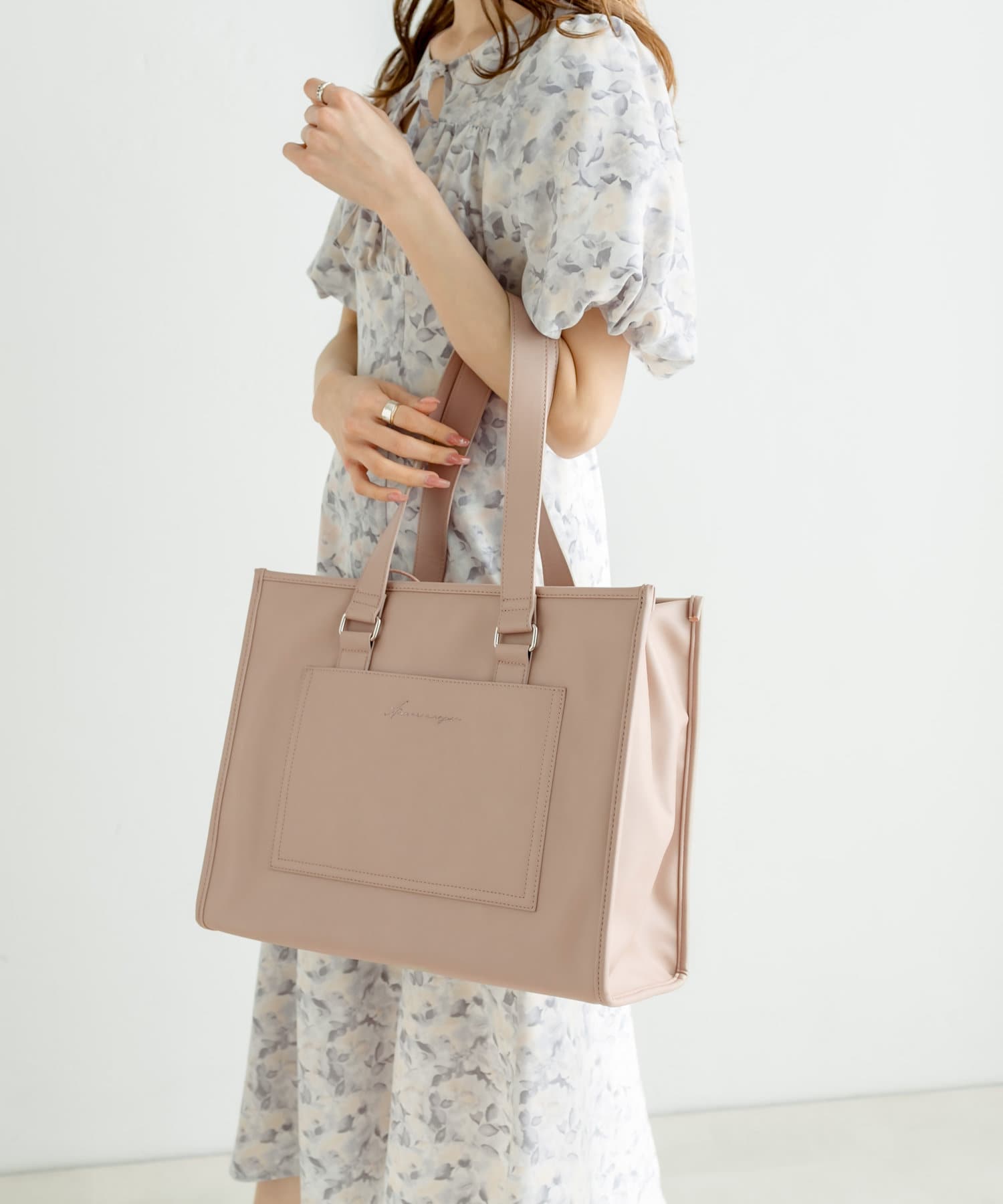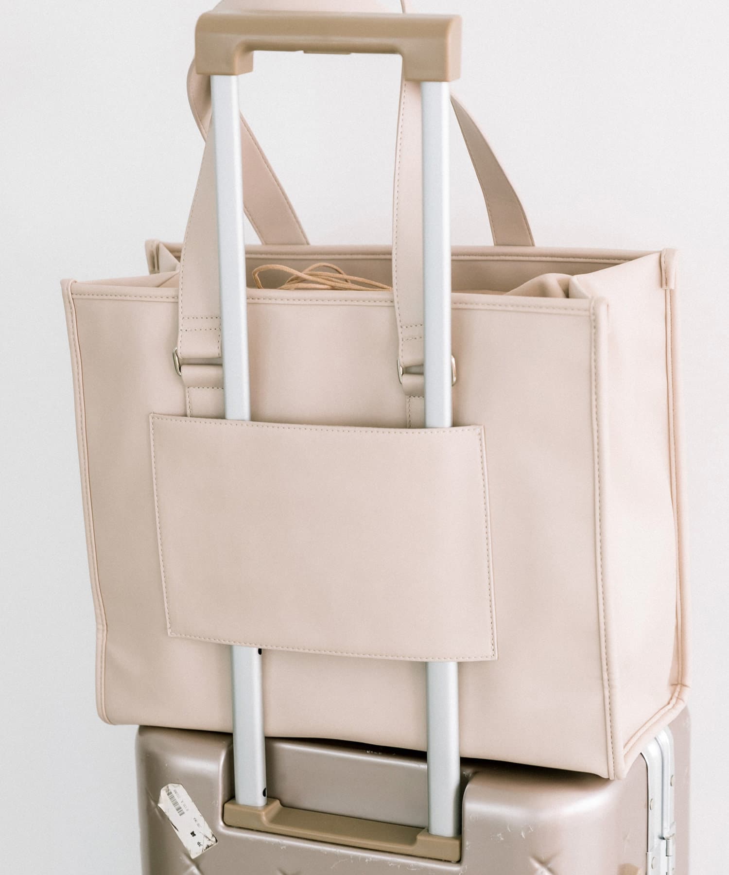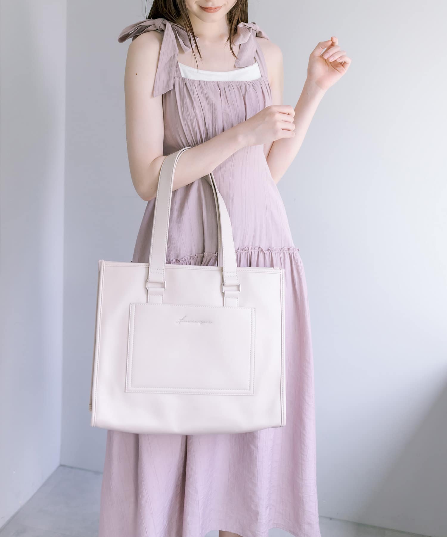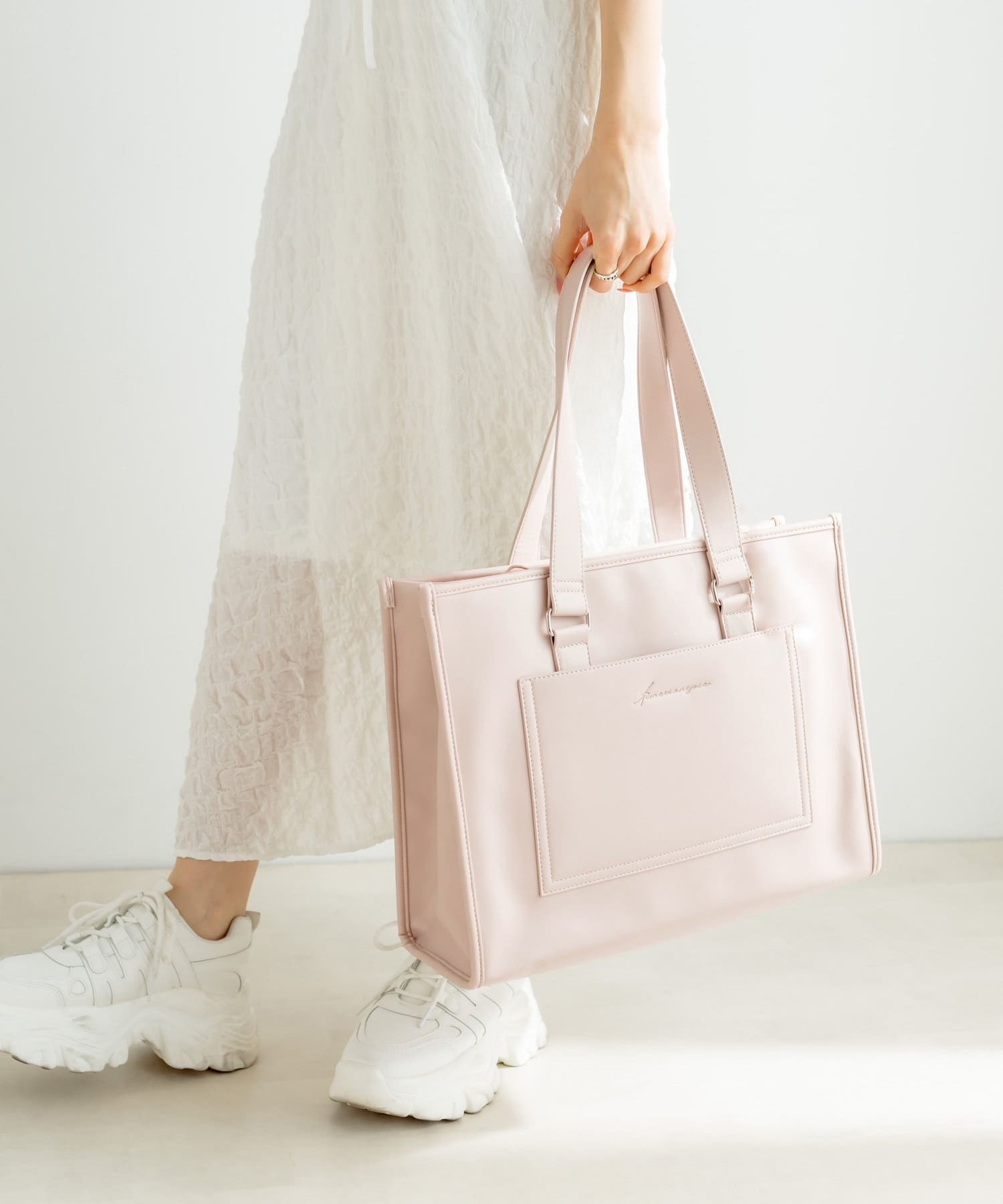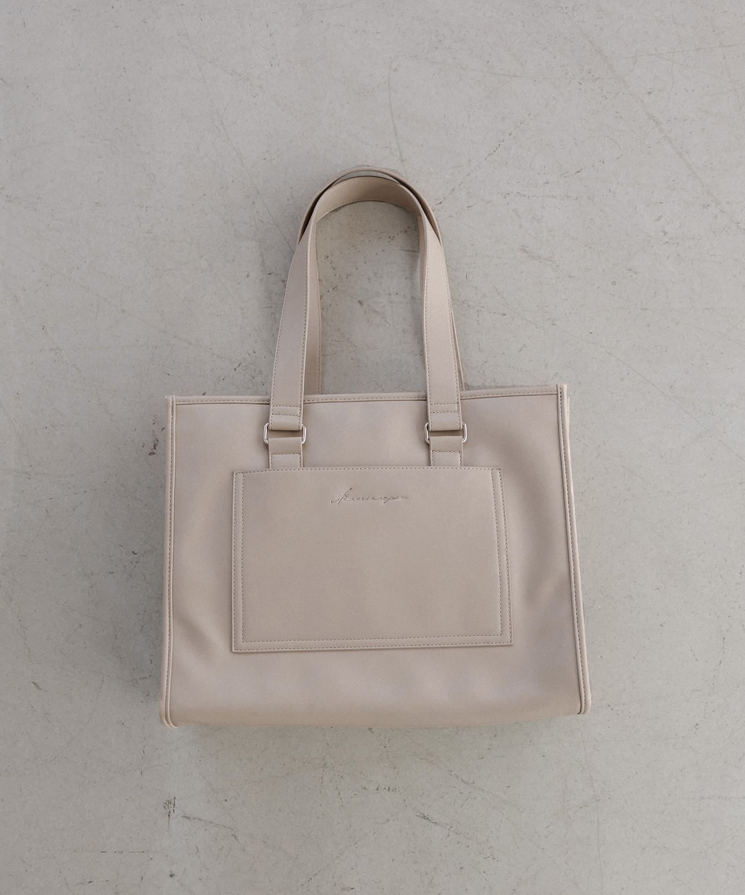 ・高見えするフェイクレザー素材を使用した、大容量サイズのトート。