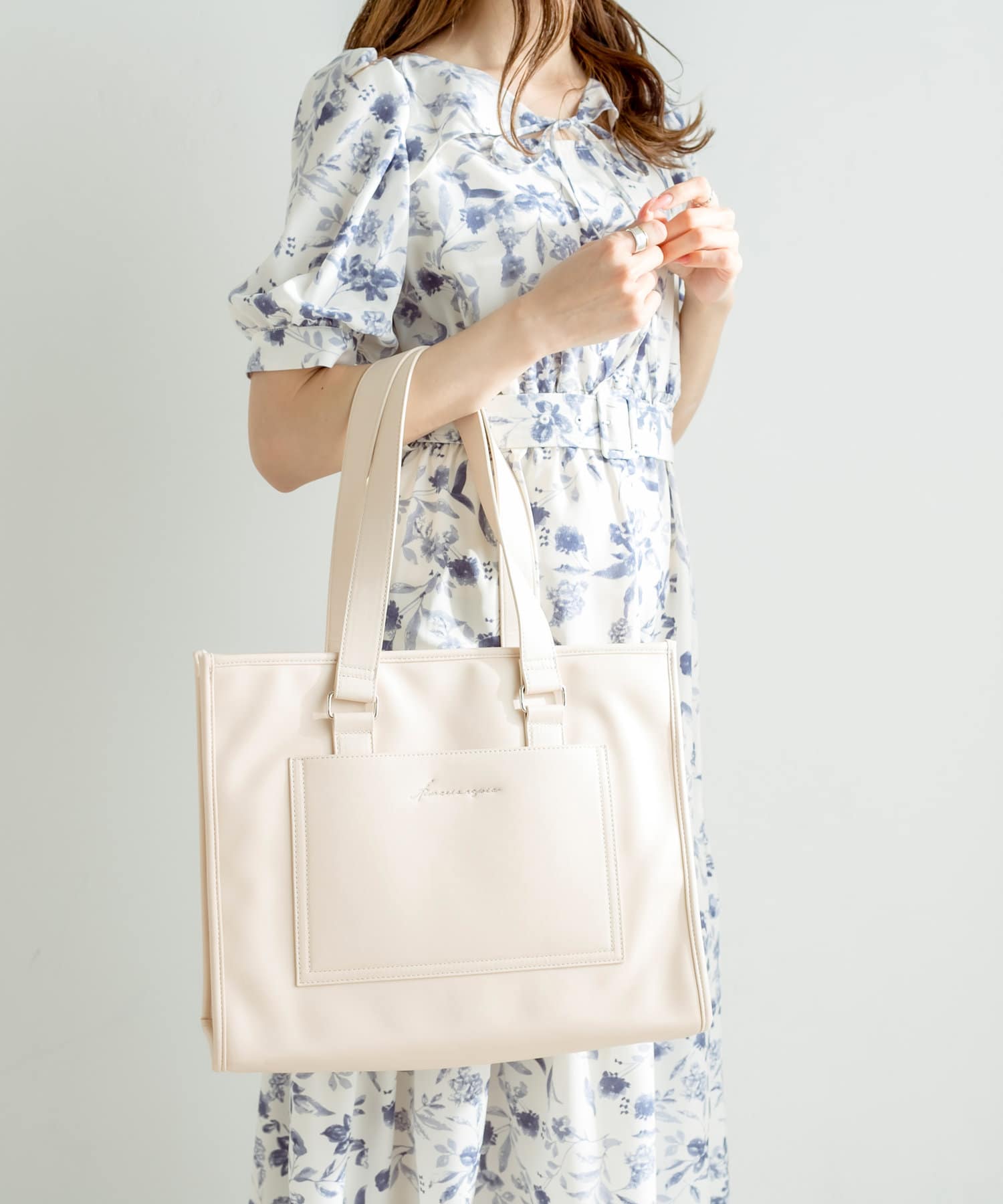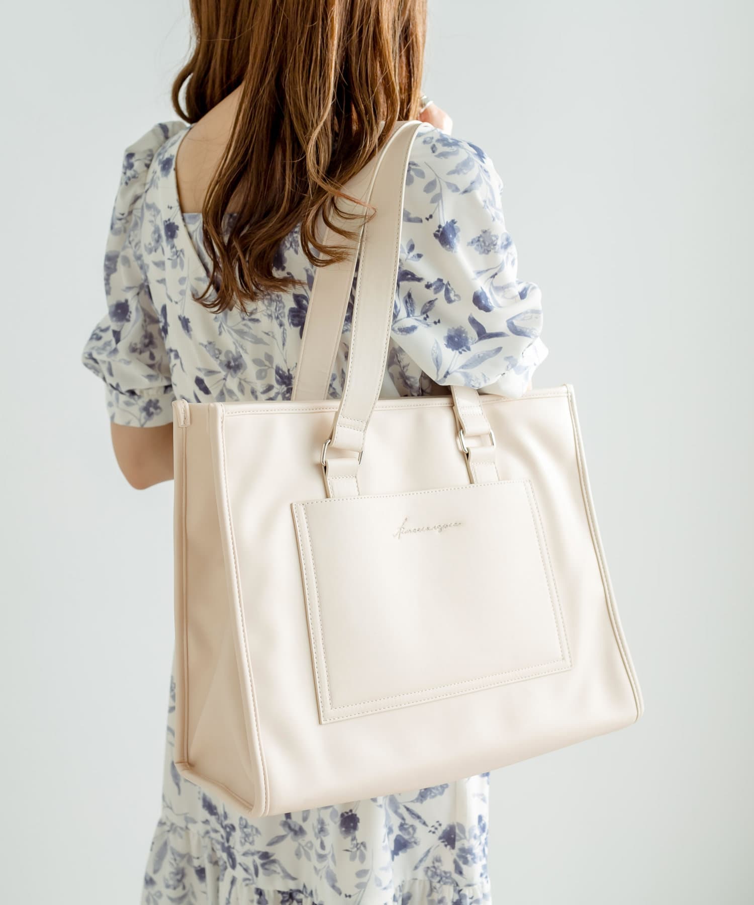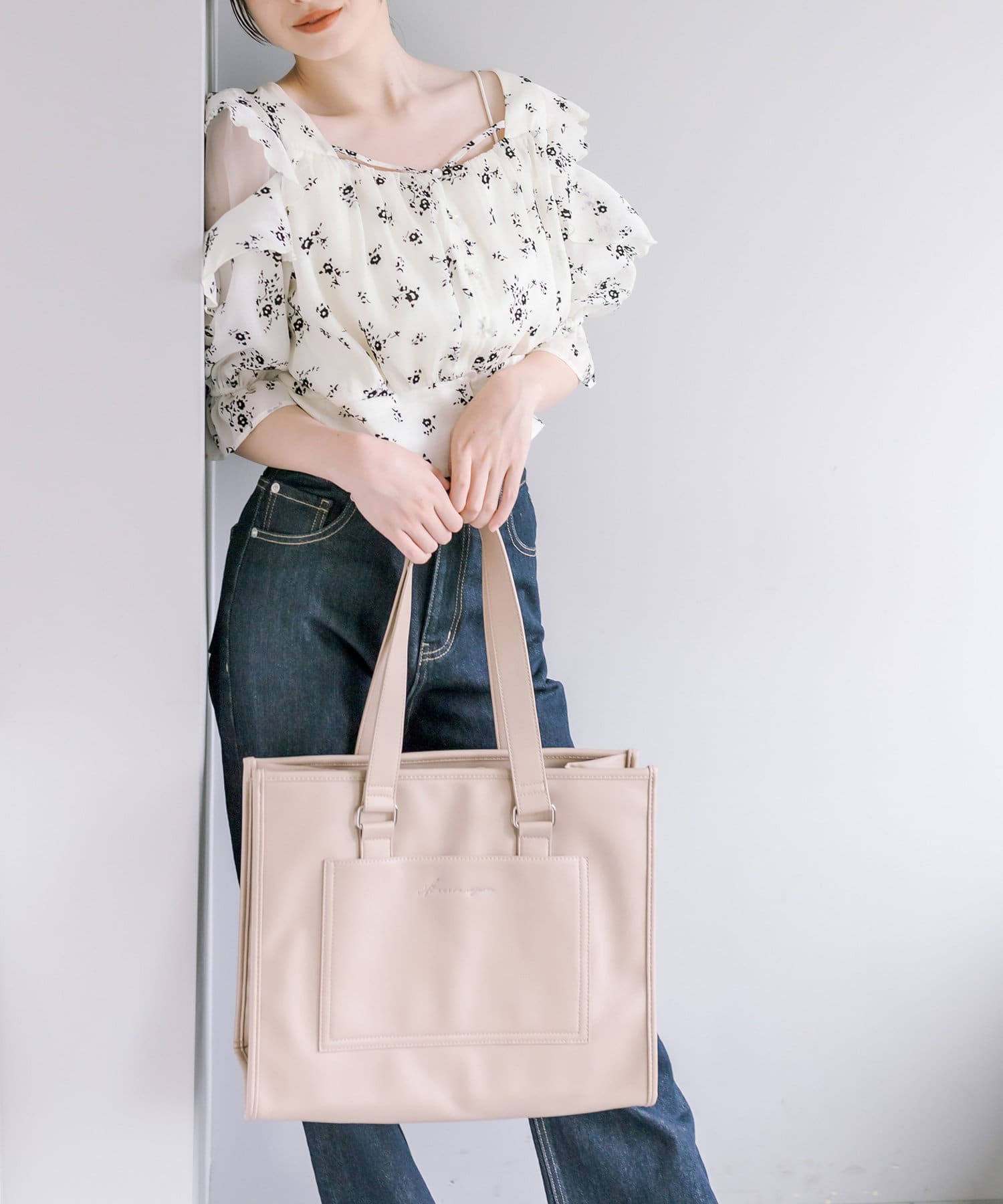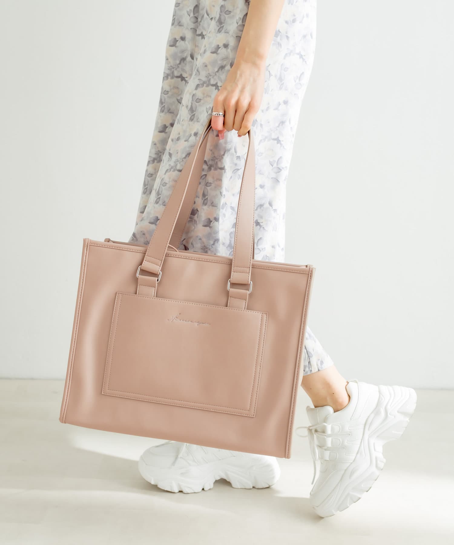 ・高見えするフェイクレザー素材を使用した、大容量サイズのトート。