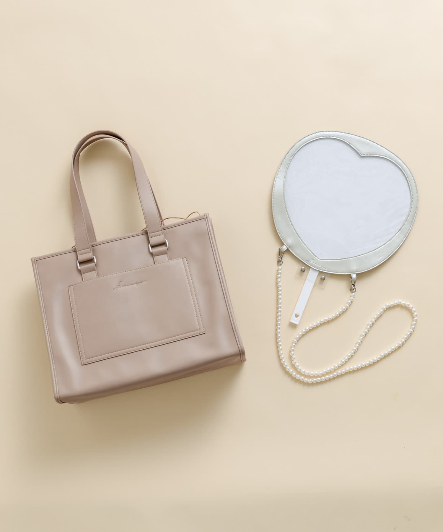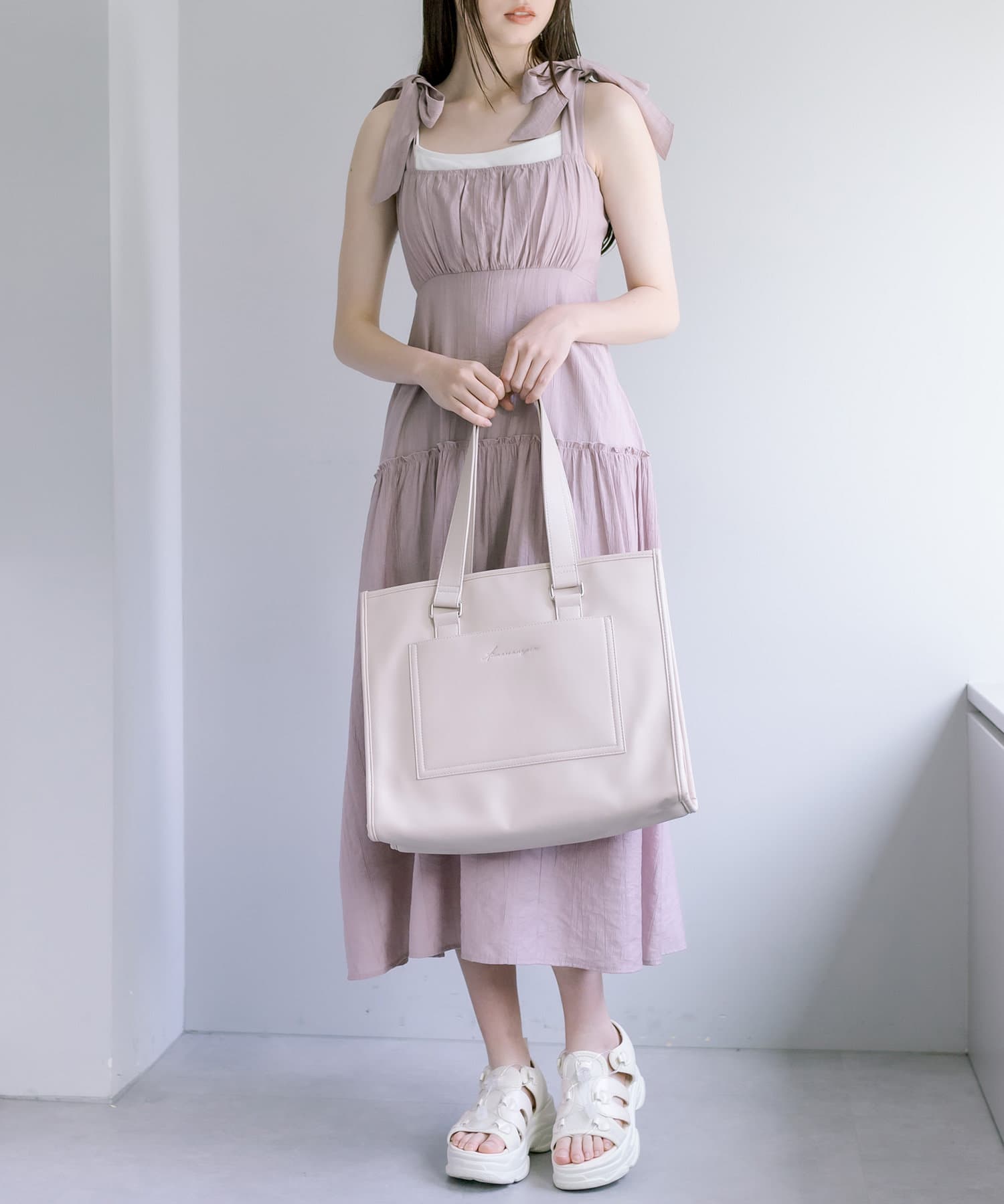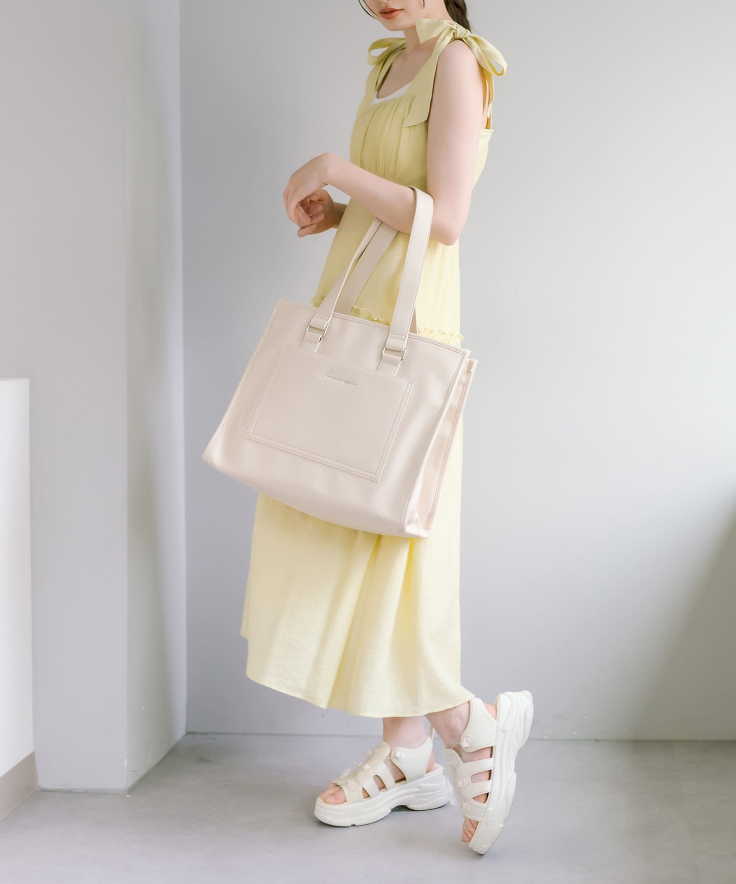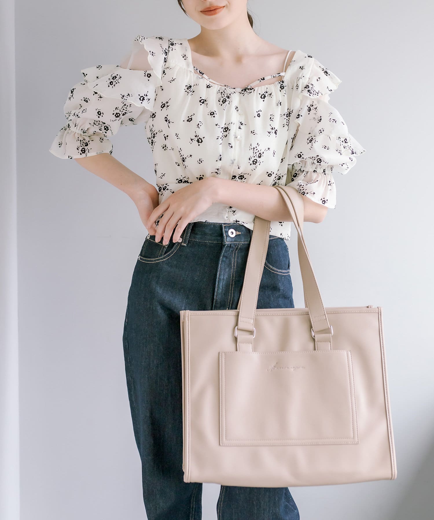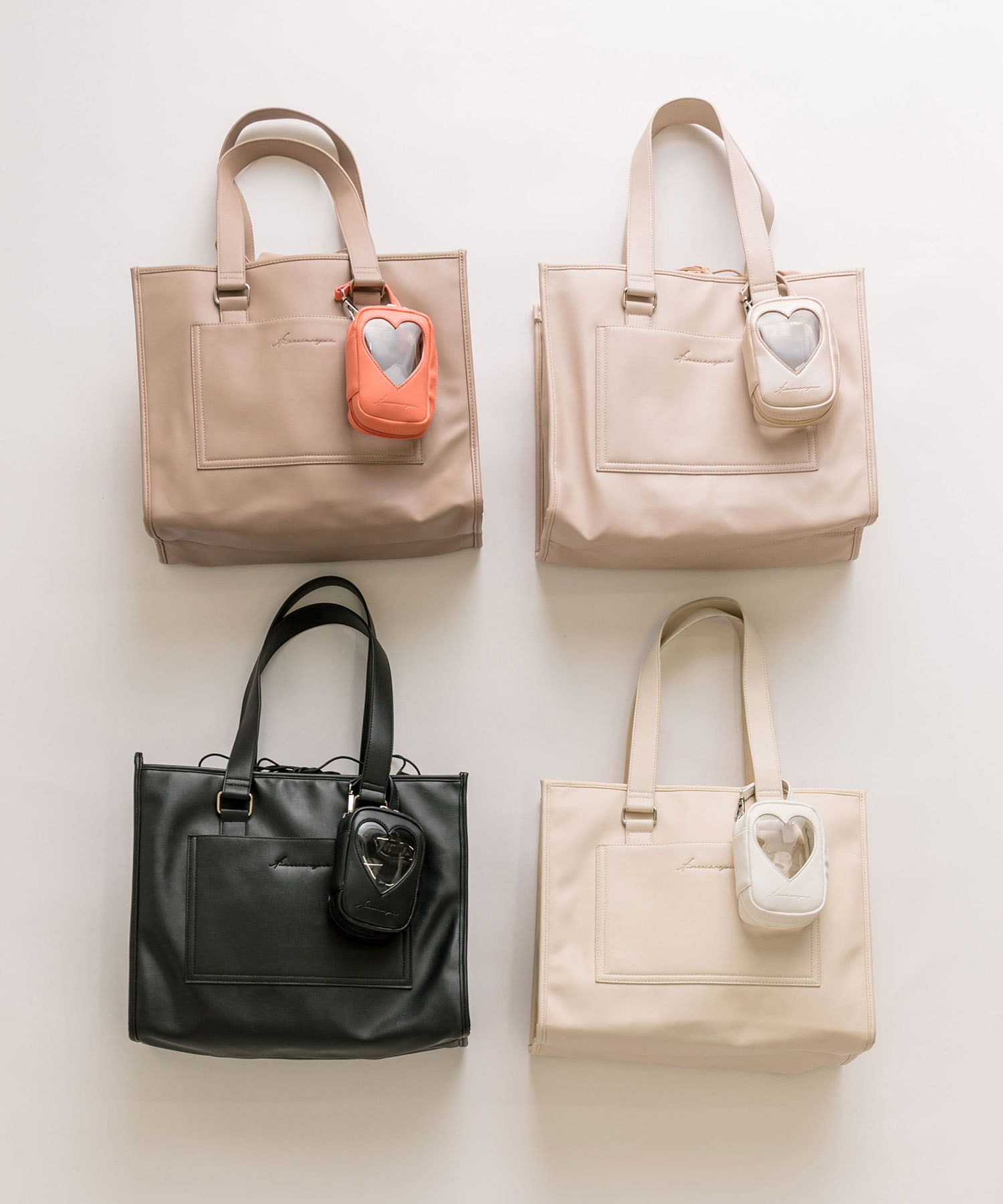 ・高見えするフェイクレザー素材を使用した、大容量サイズのトート。