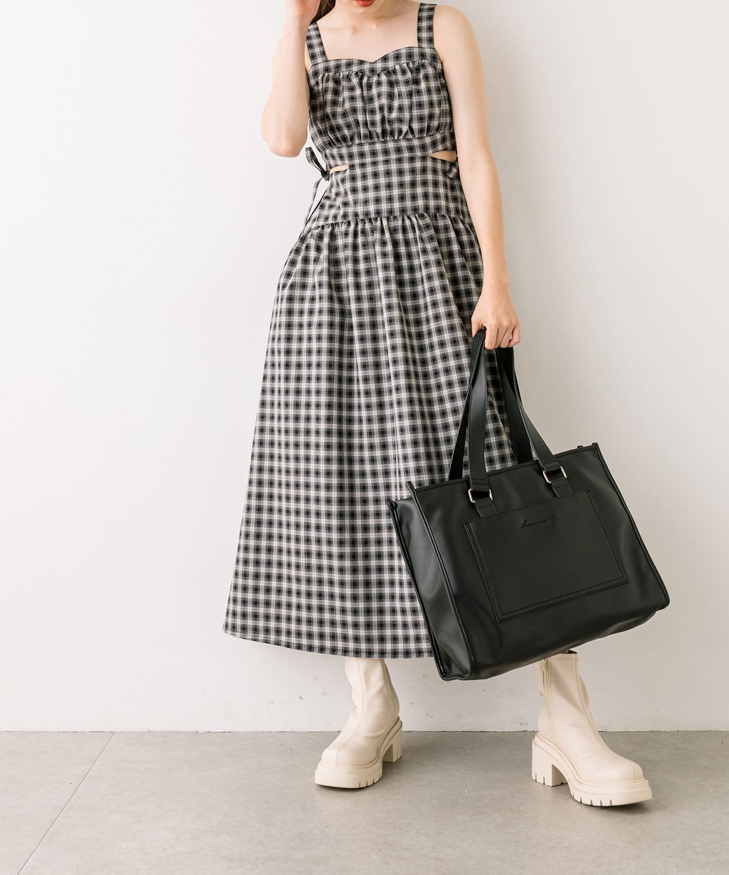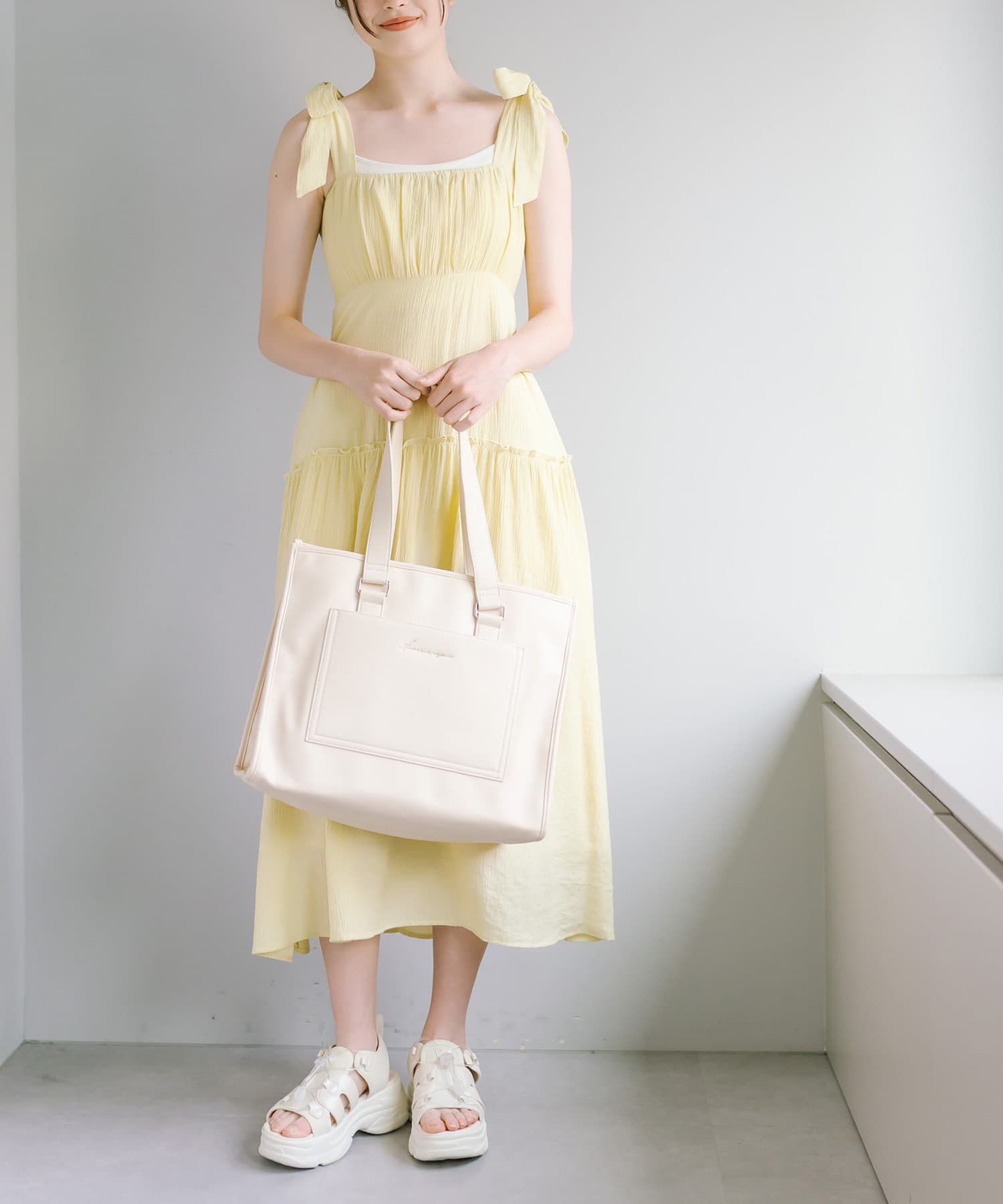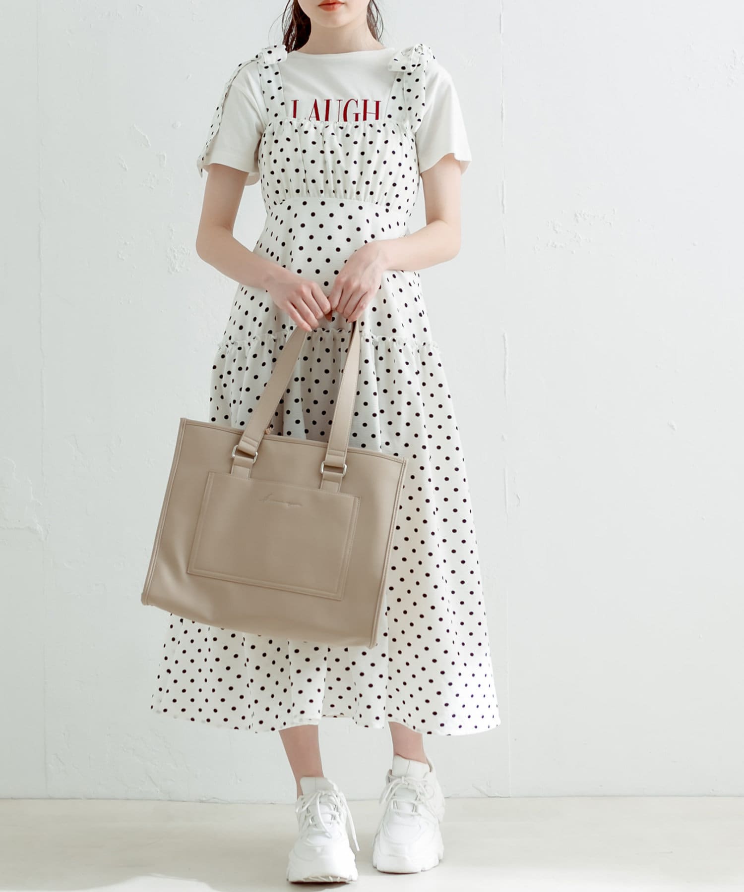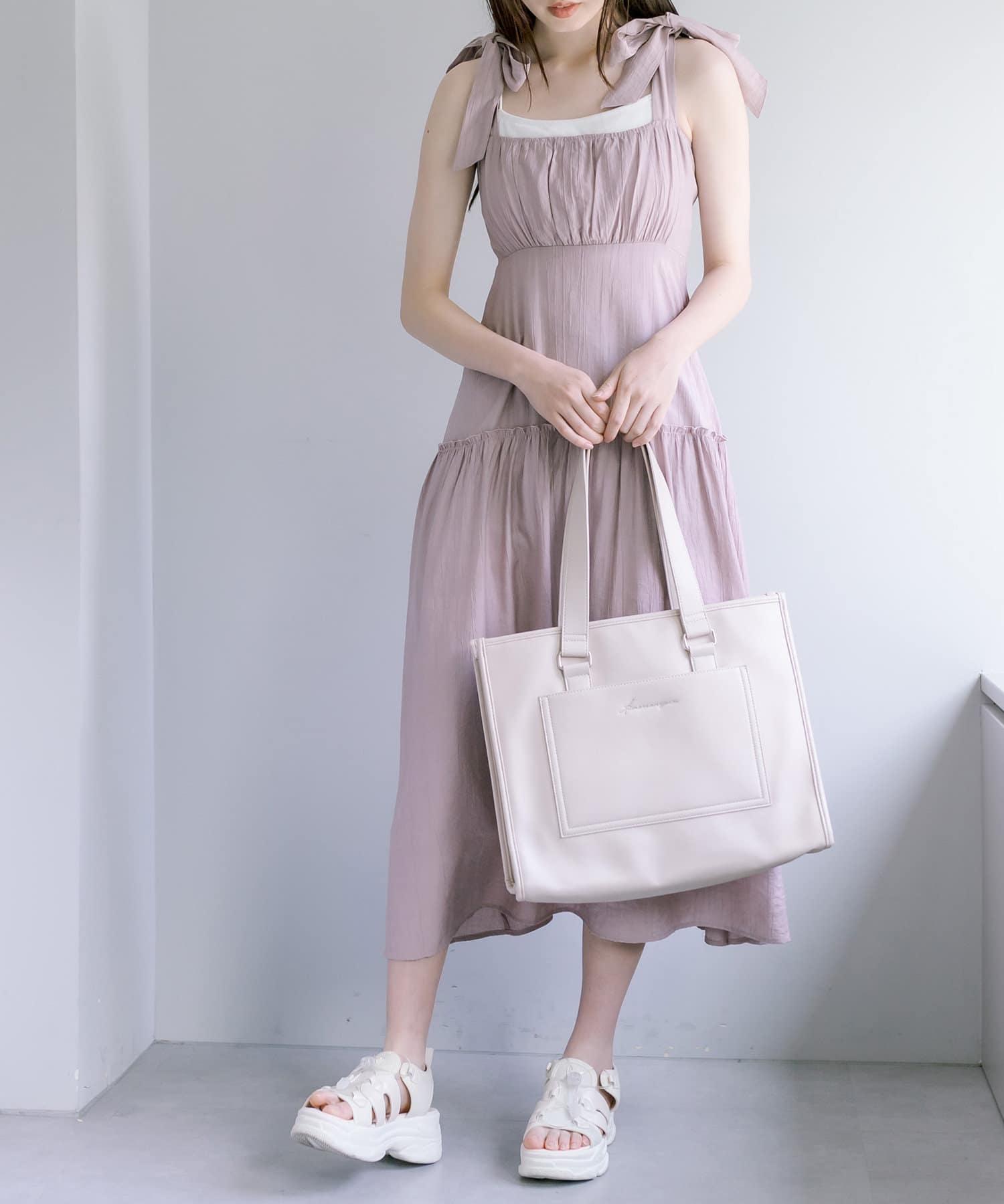 ・高見えするフェイクレザー素材を使用した、大容量サイズのトート。
