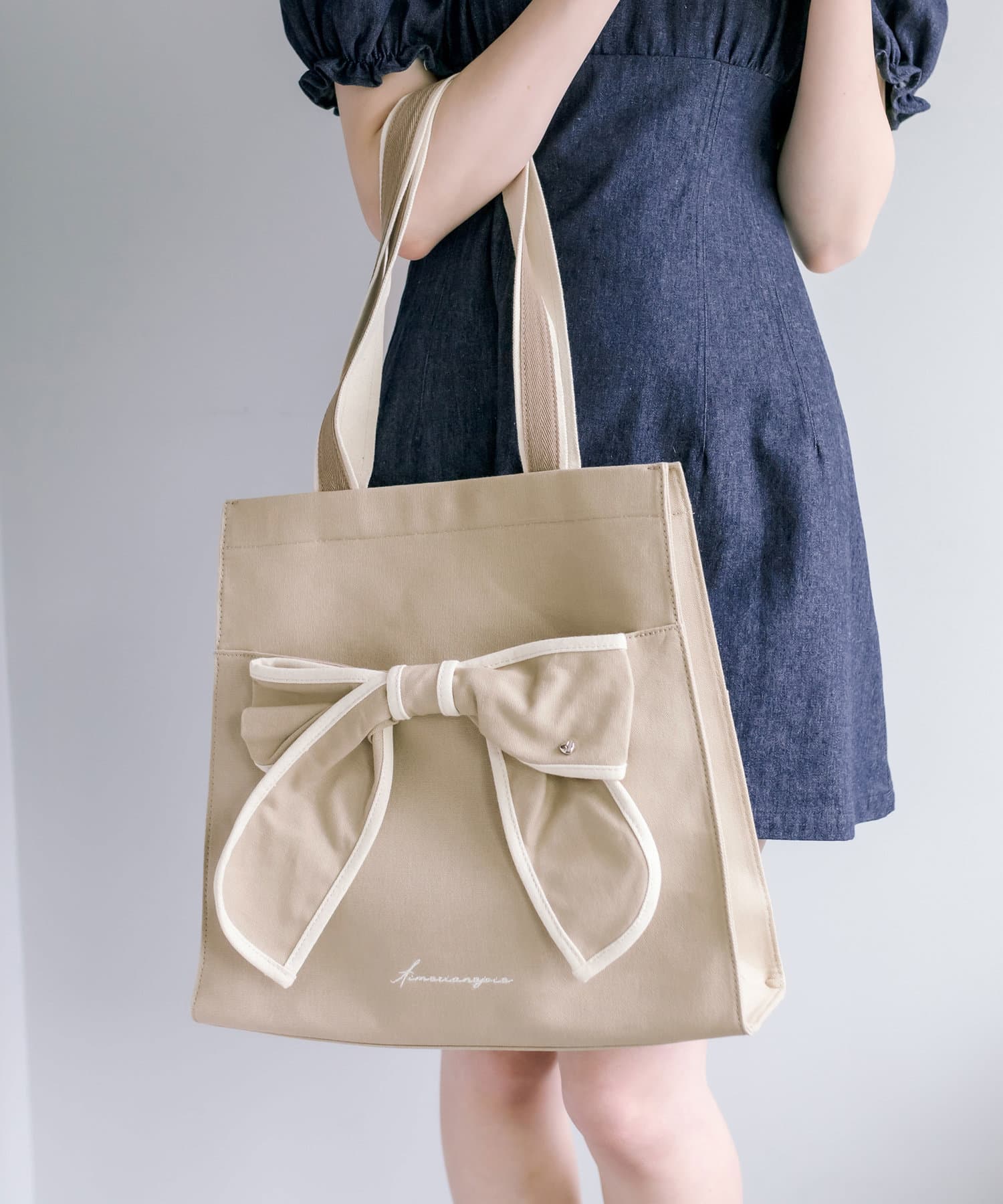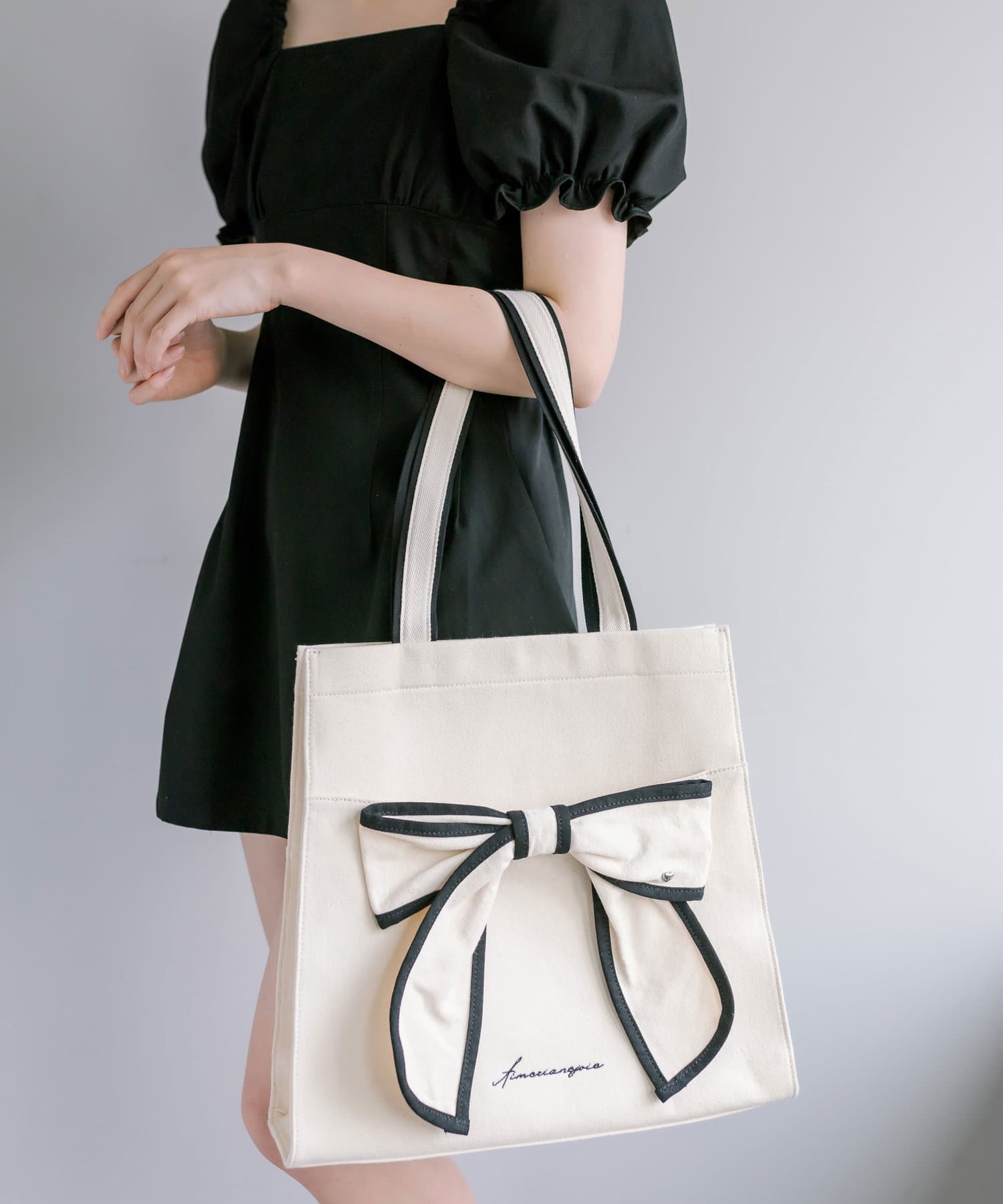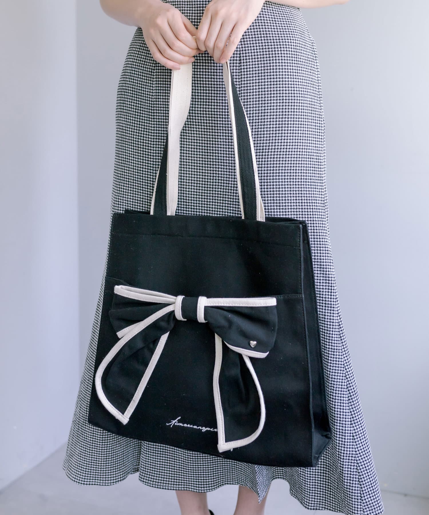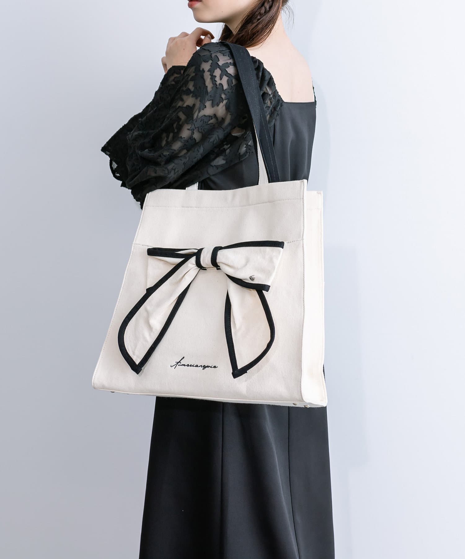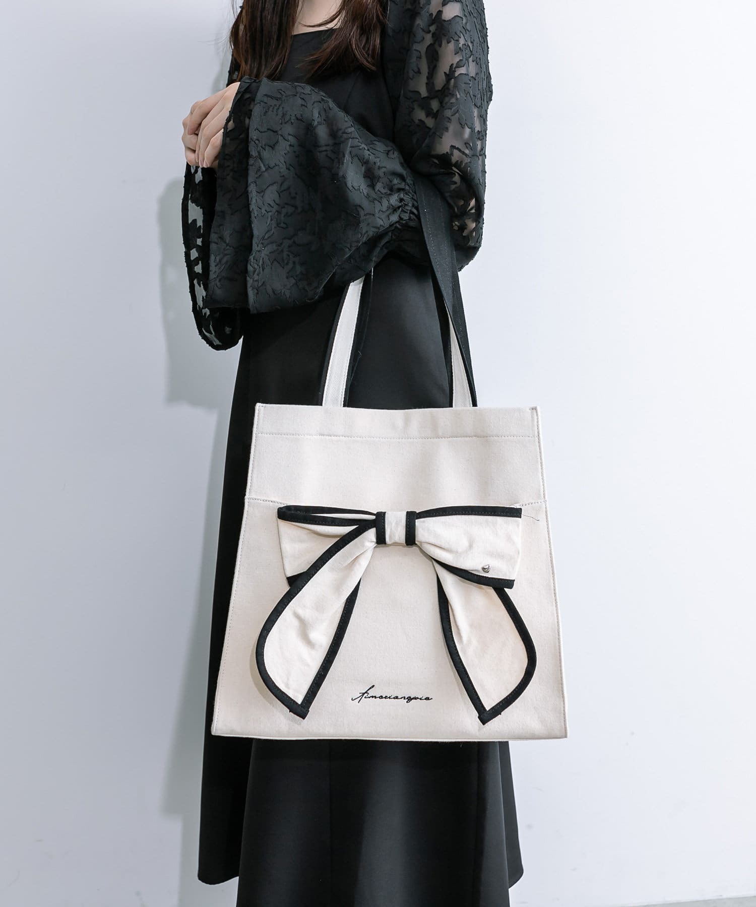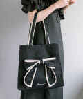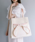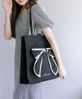 ・ビッグサイズのリボンが目を惹くトートバッグ。
