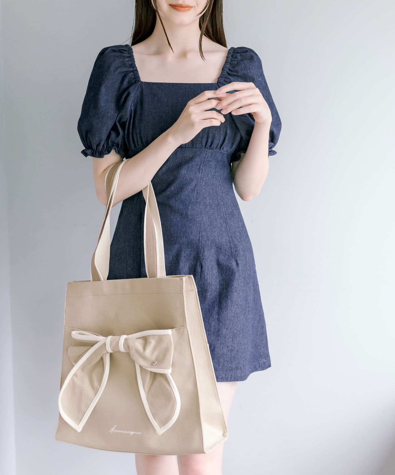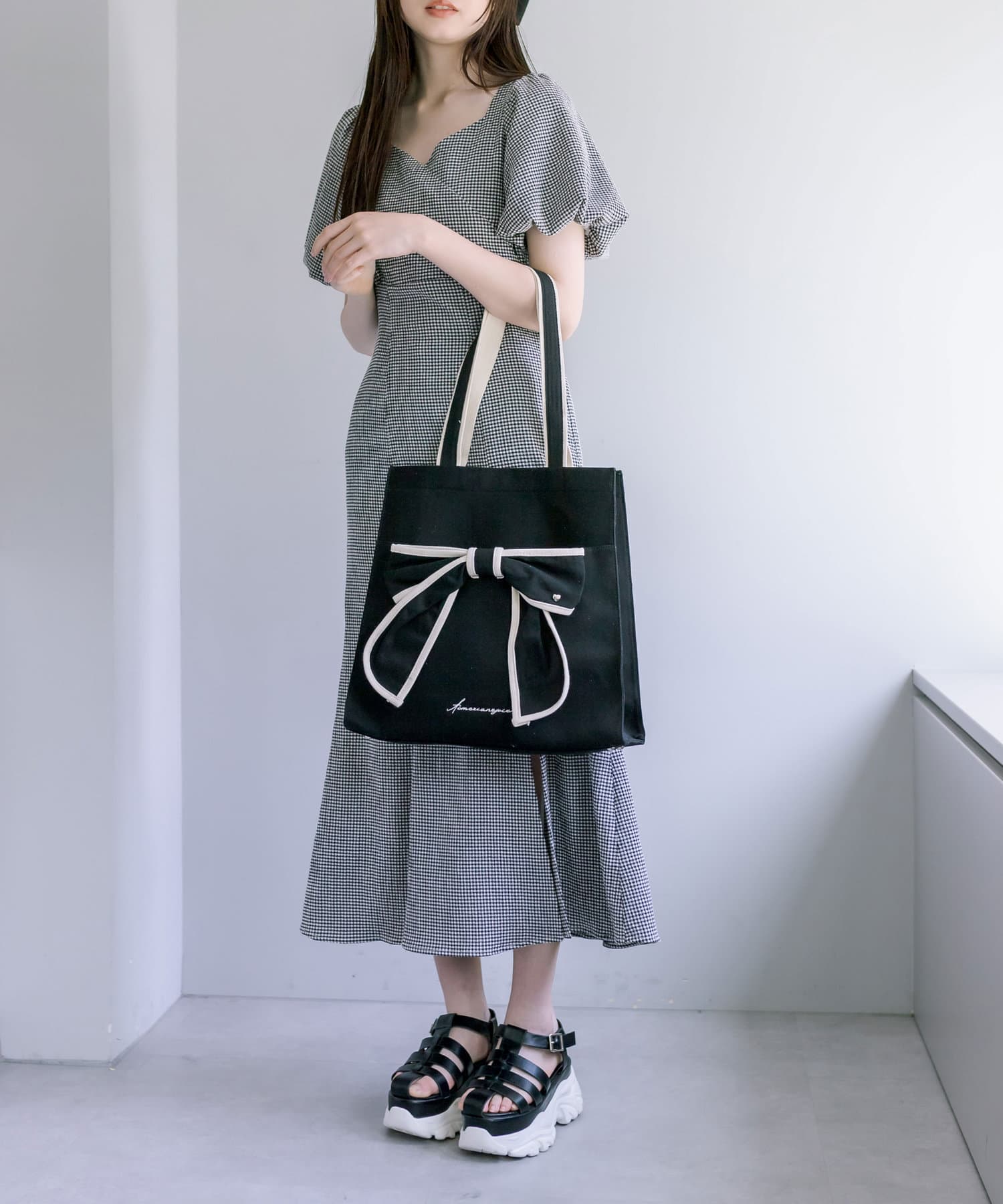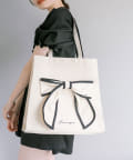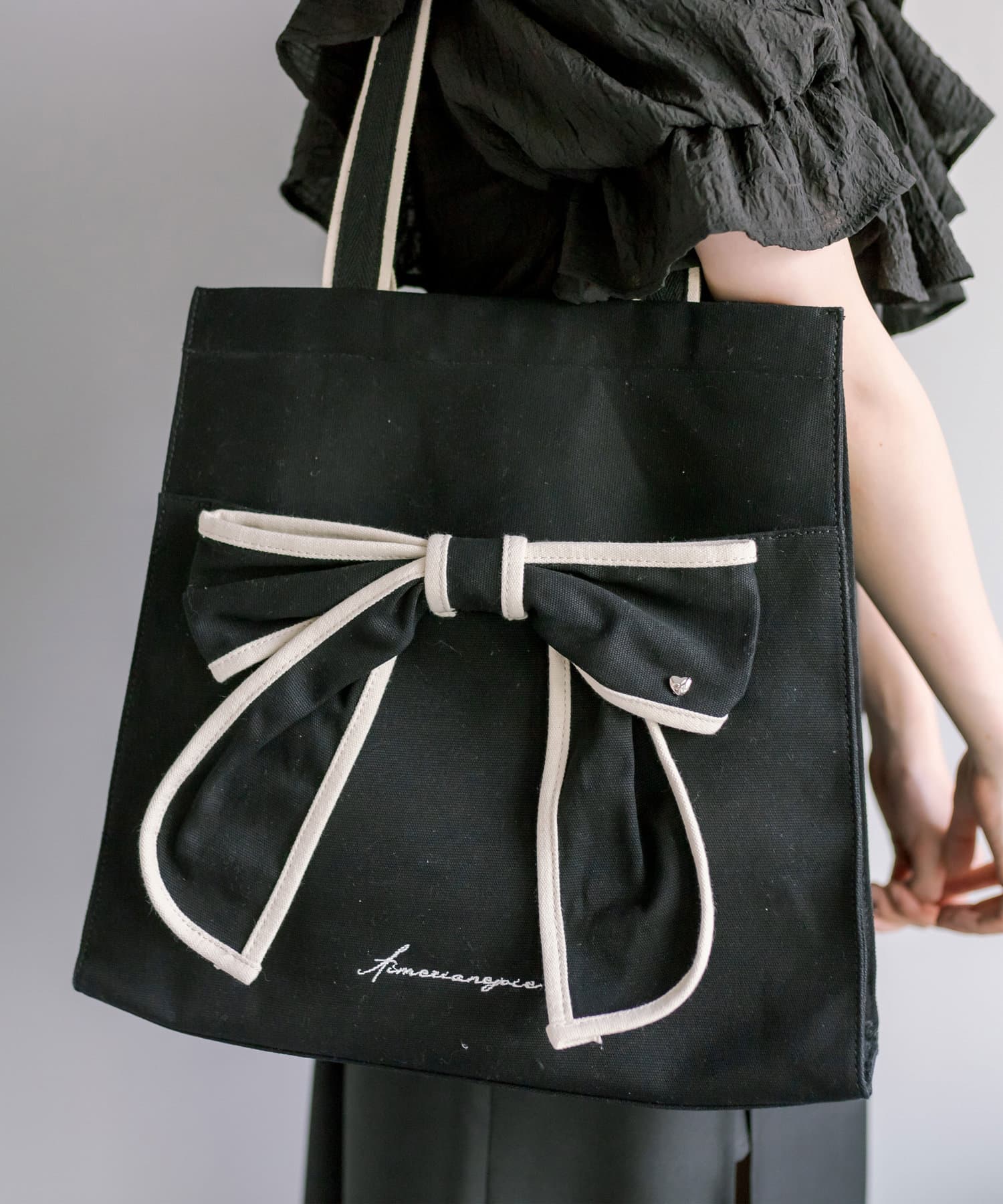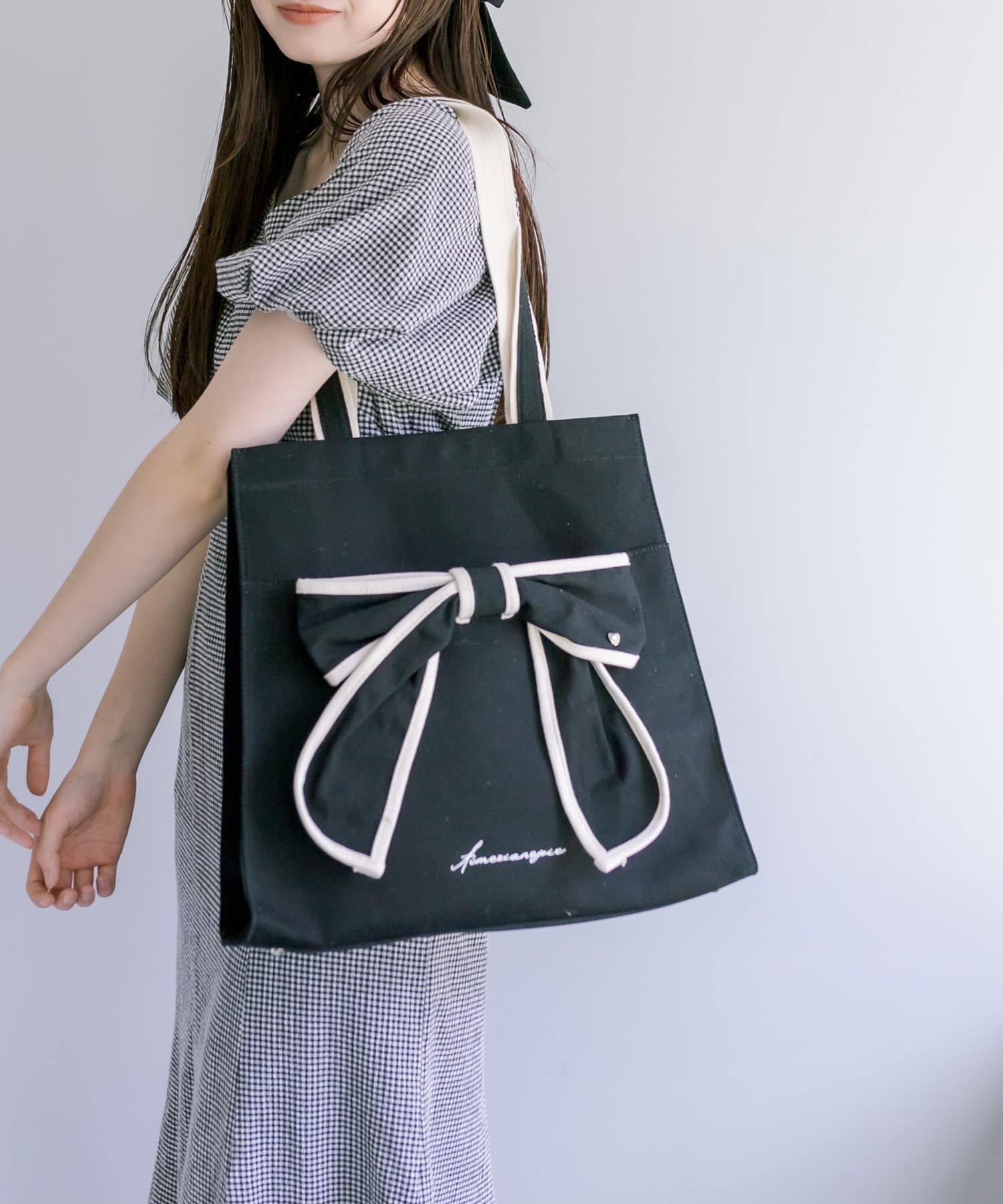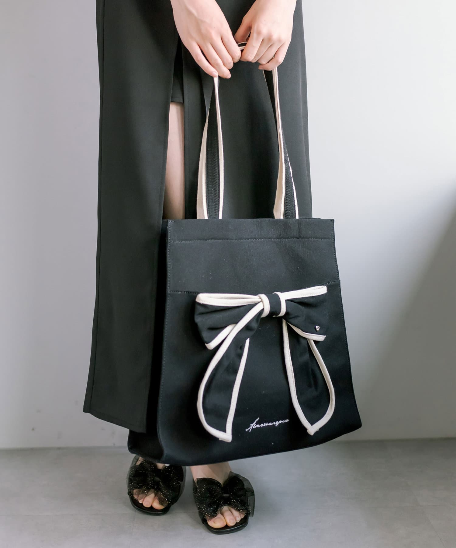 ・ビッグサイズのリボンが目を惹くトートバッグ。