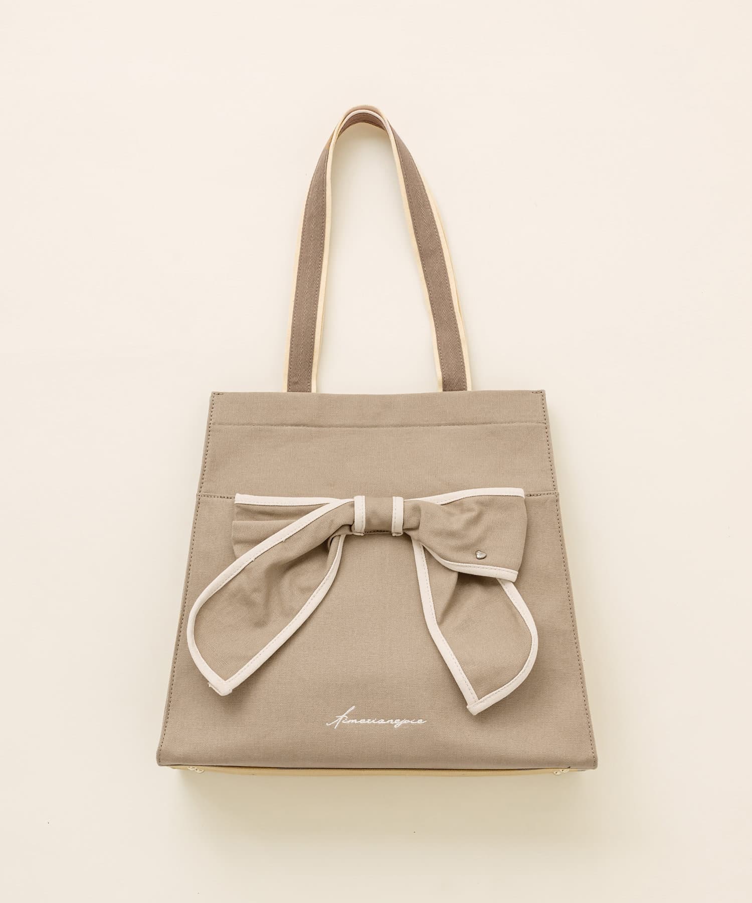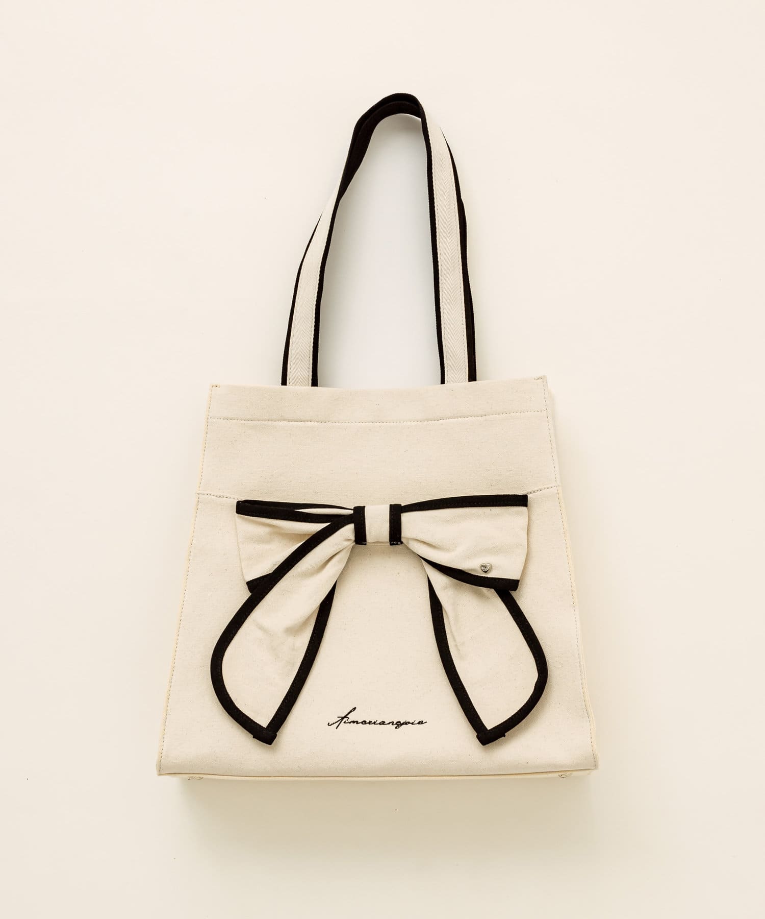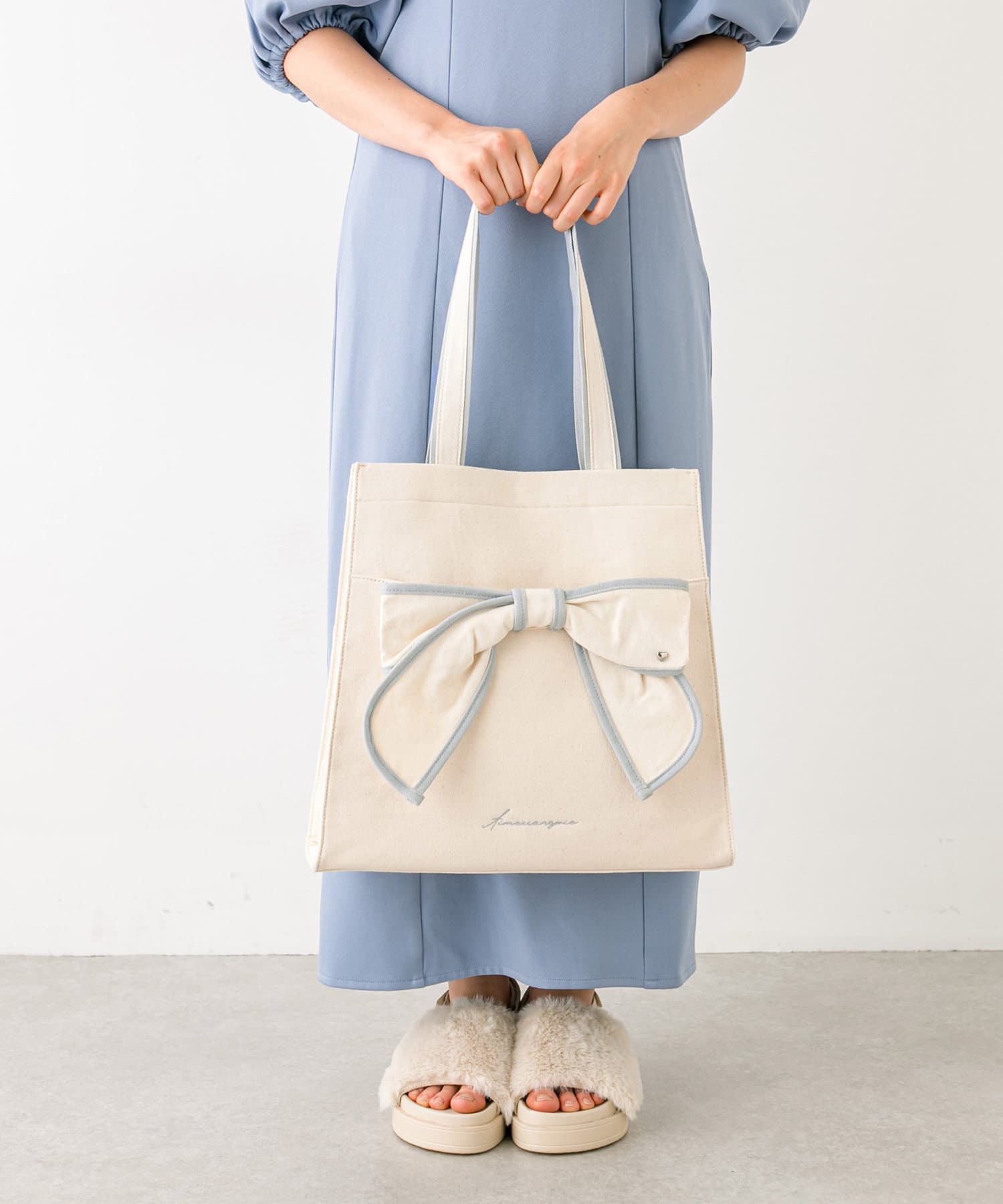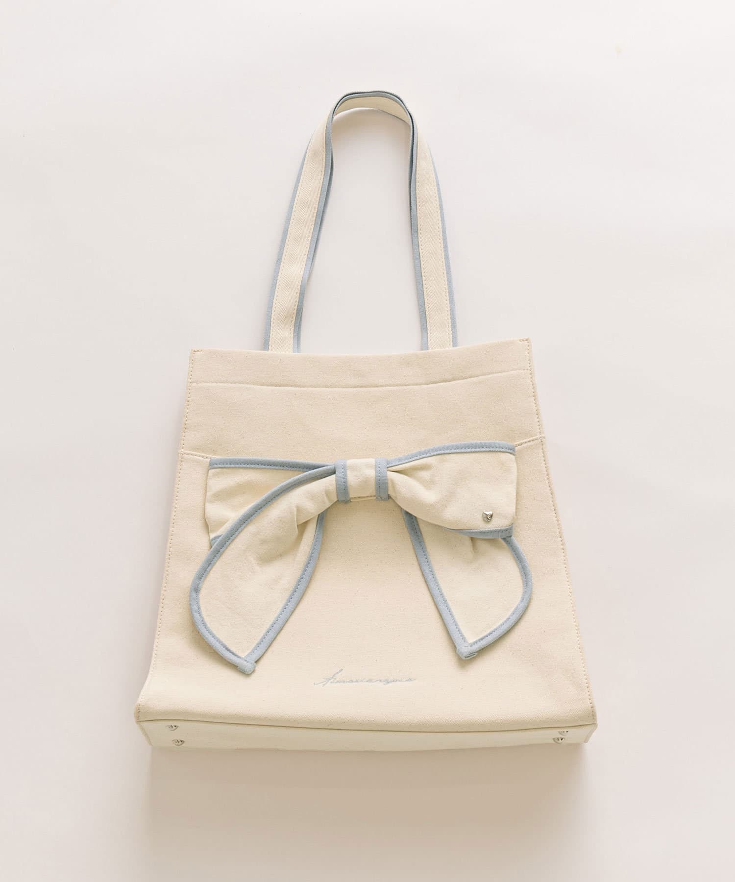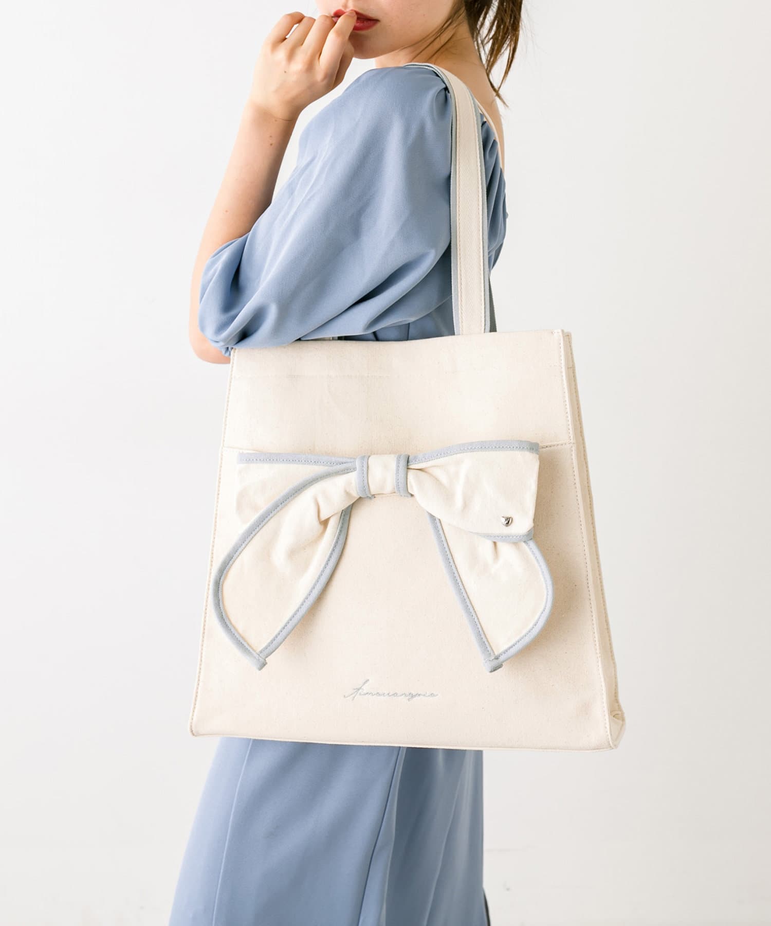 ・ビッグサイズのリボンが目を惹くトートバッグ。