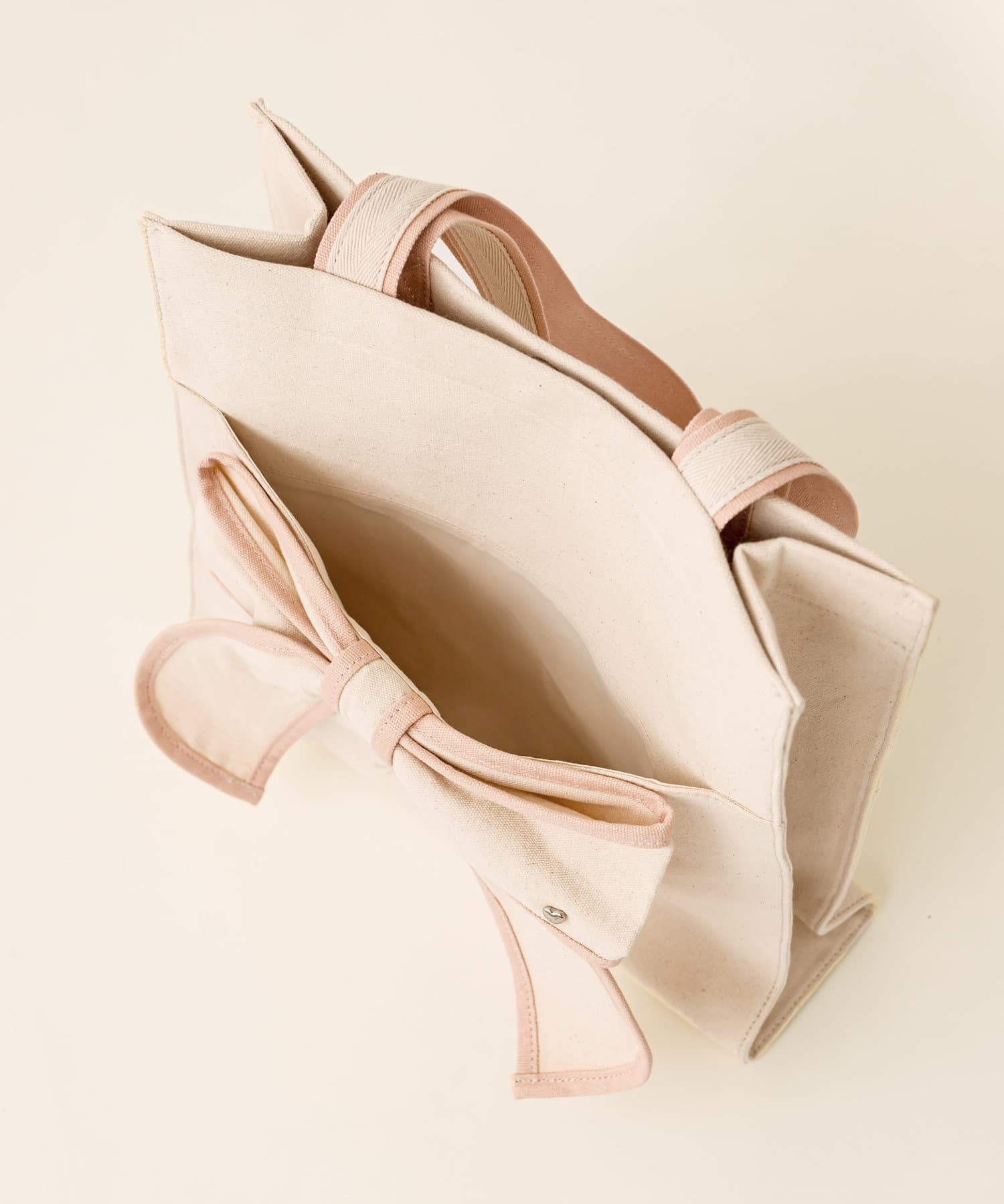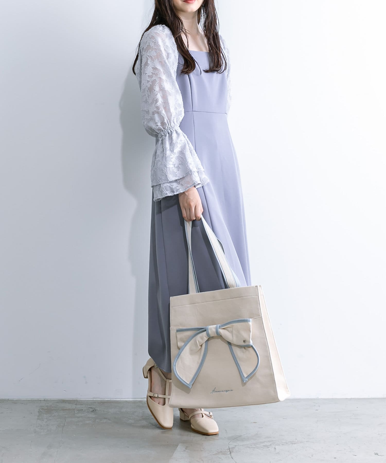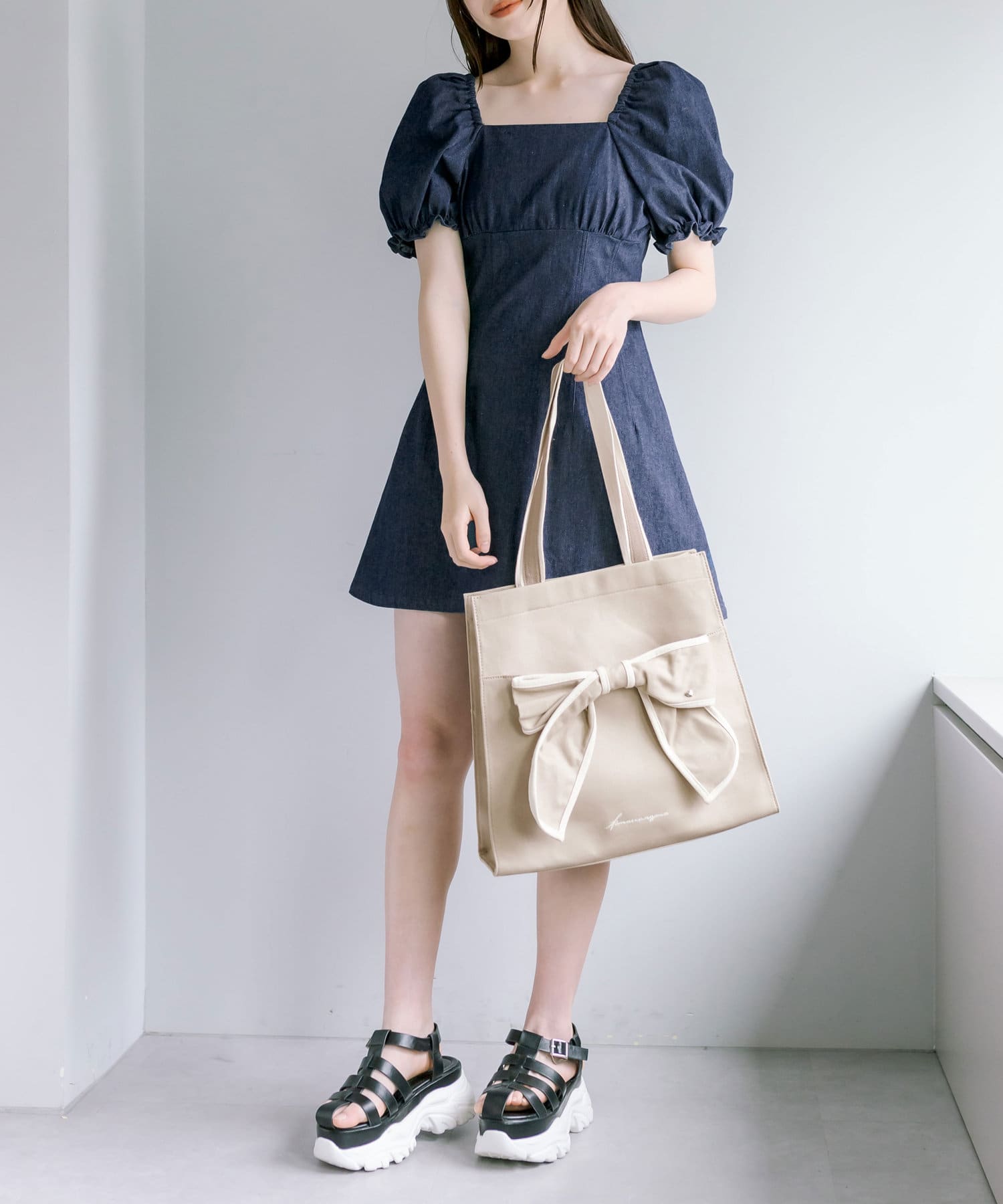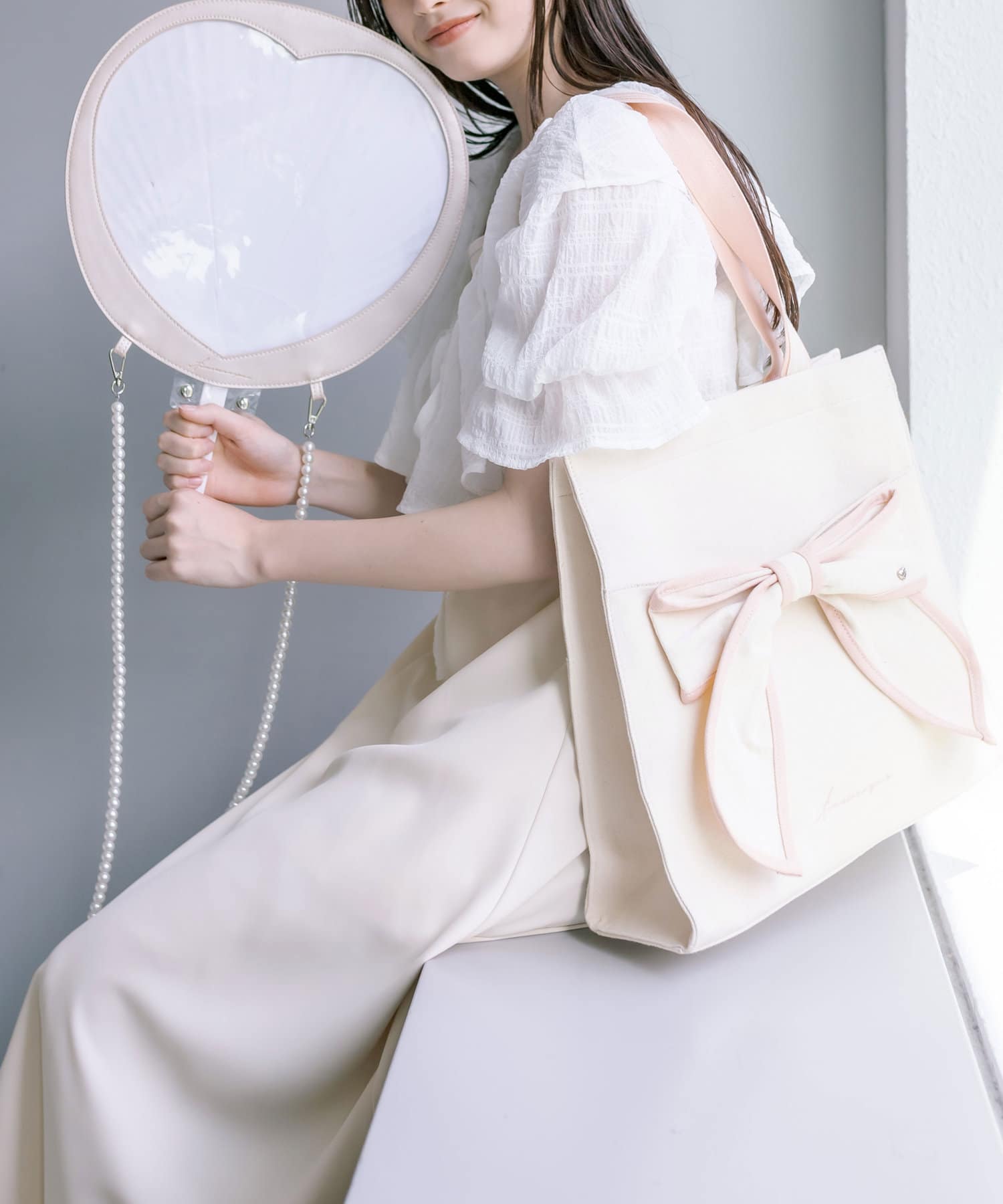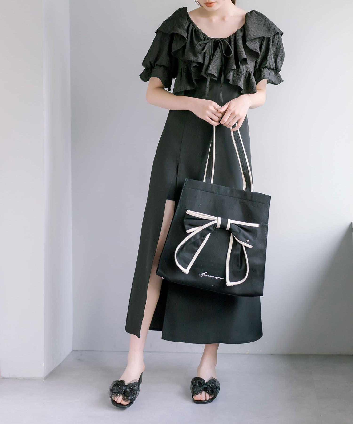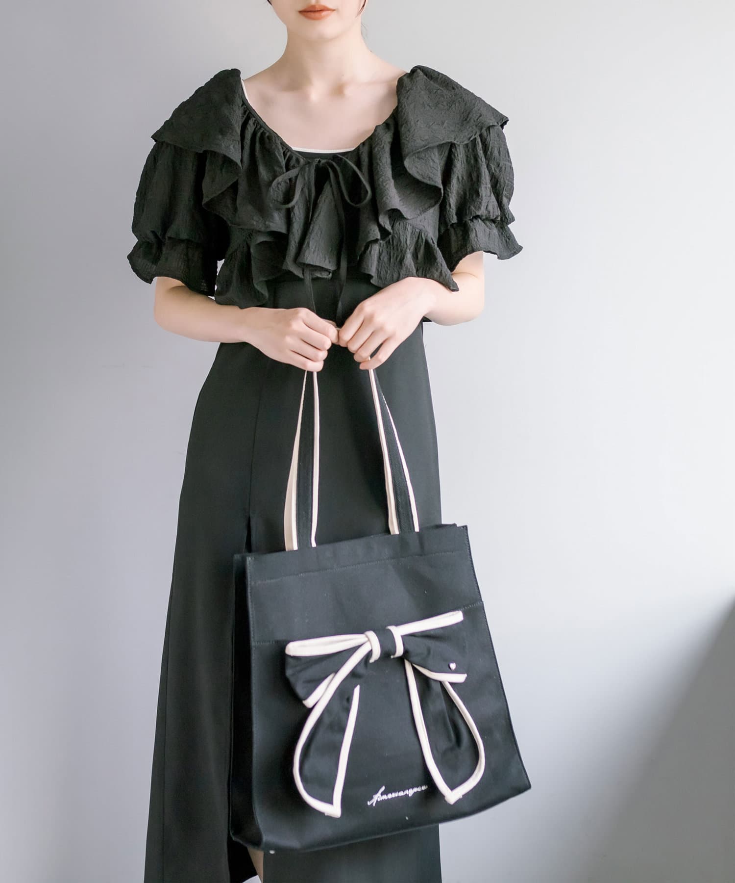 ・ビッグサイズのリボンが目を惹くトートバッグ。