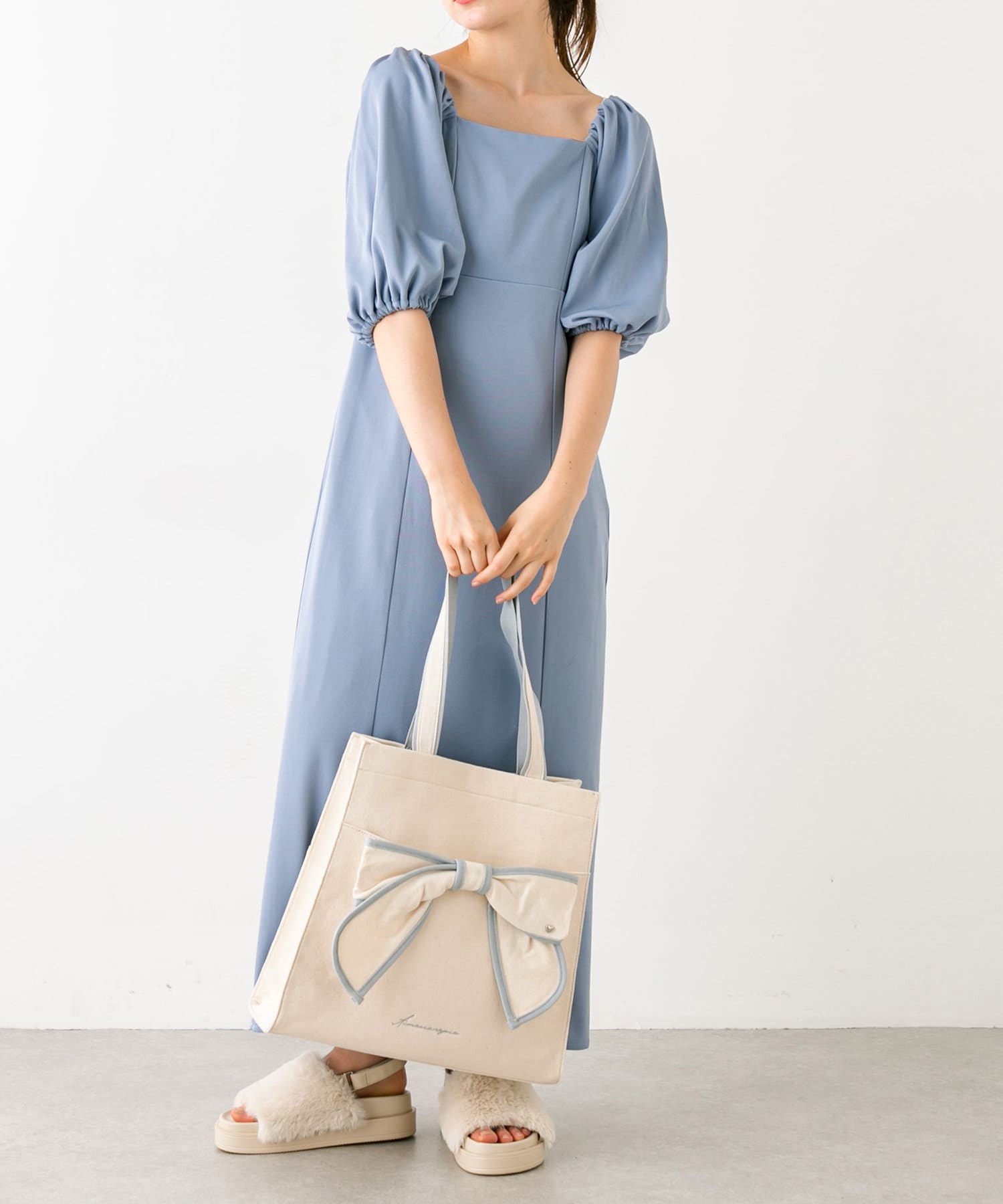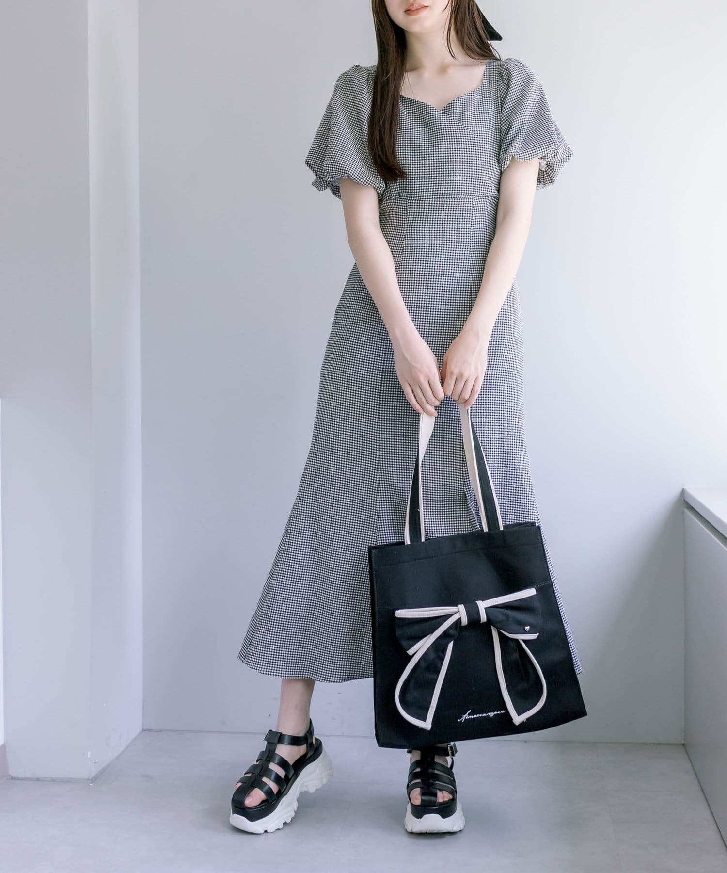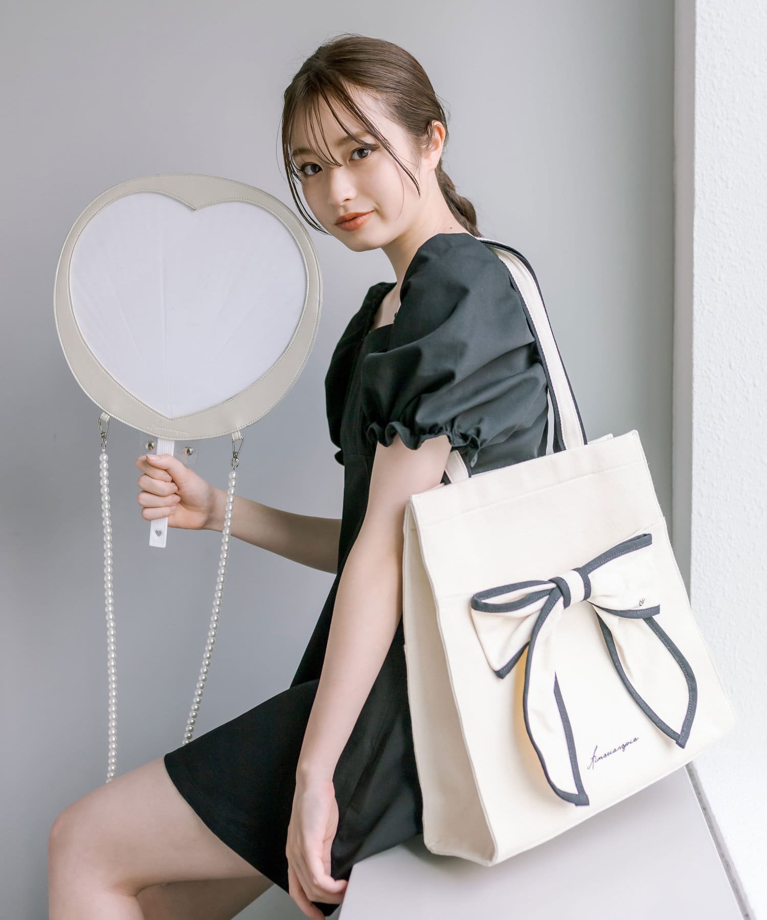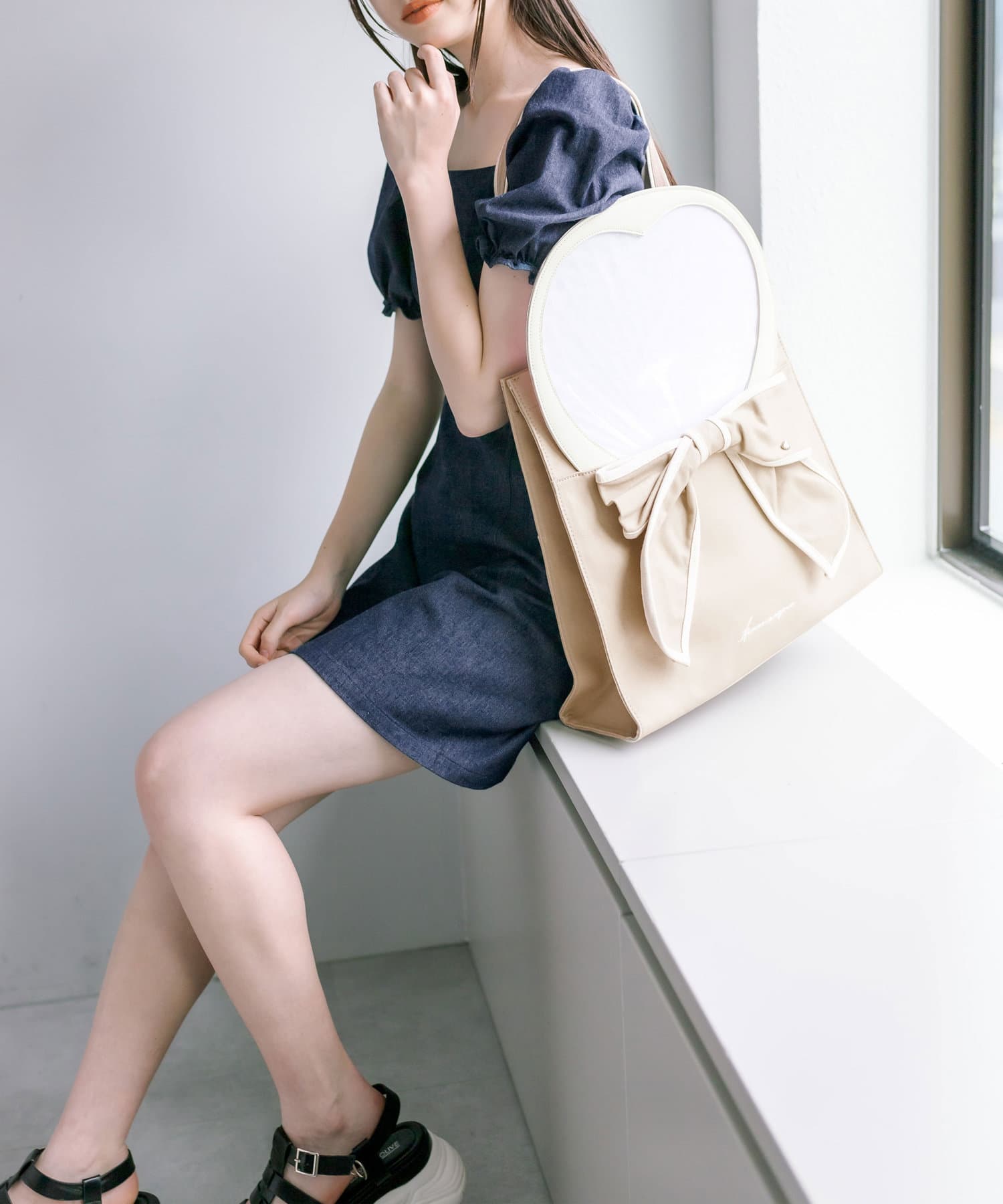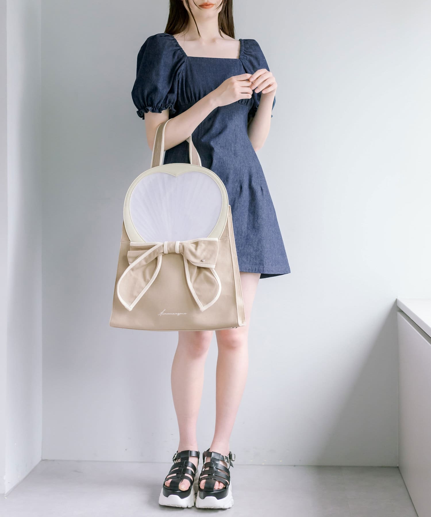 ・ビッグサイズのリボンが目を惹くトートバッグ。