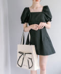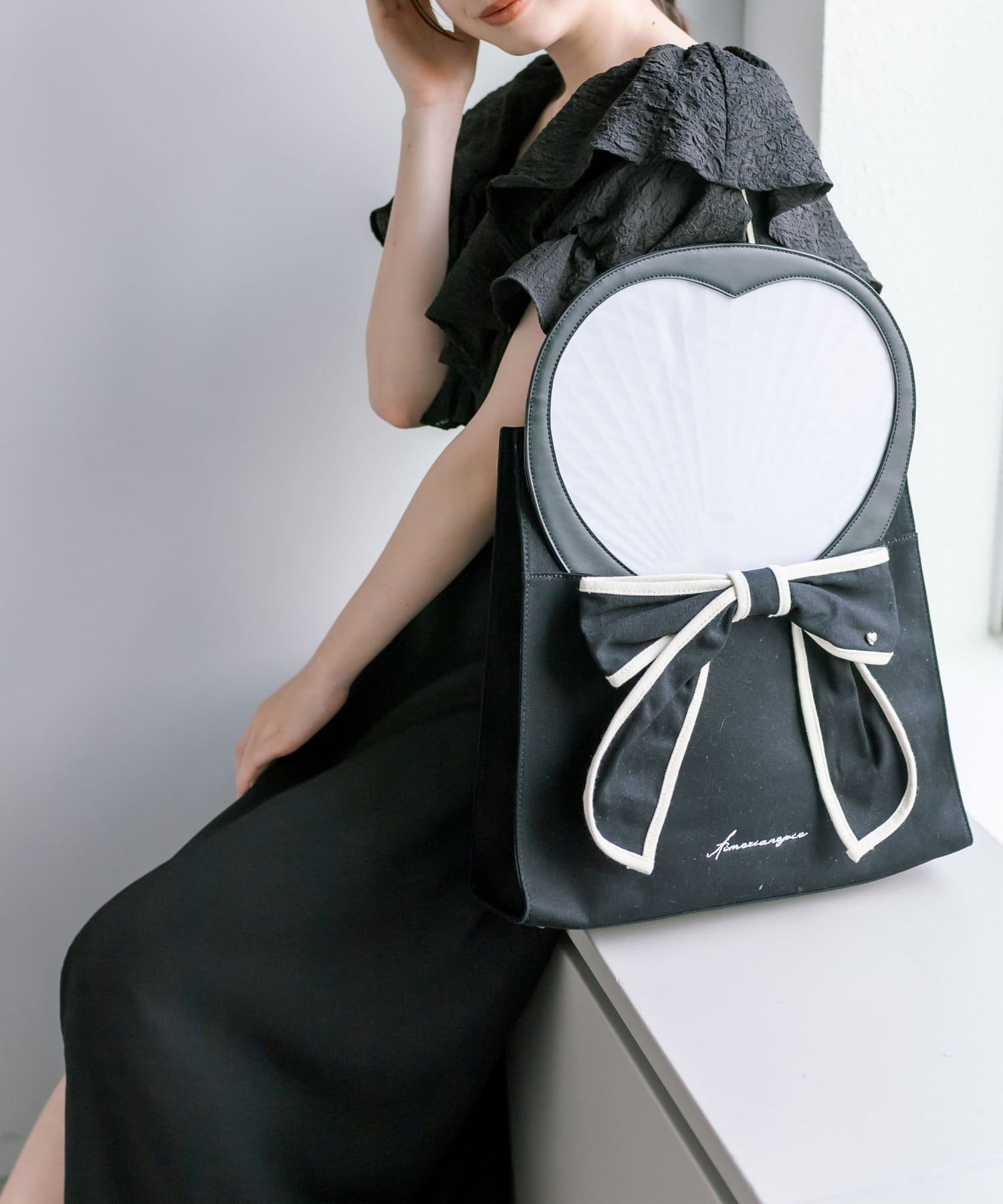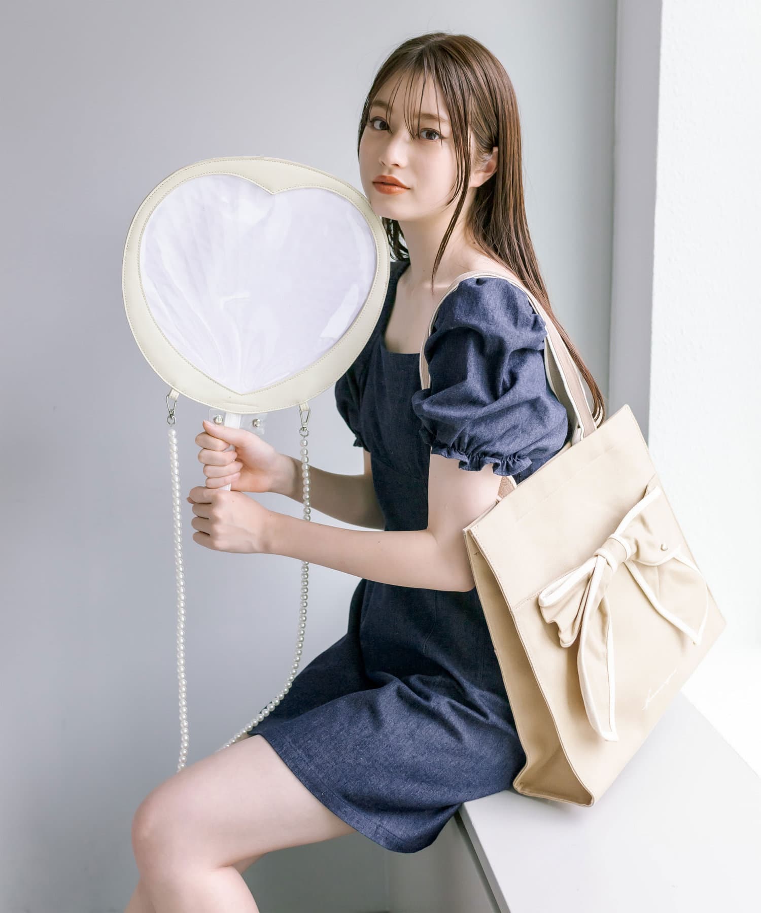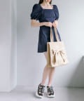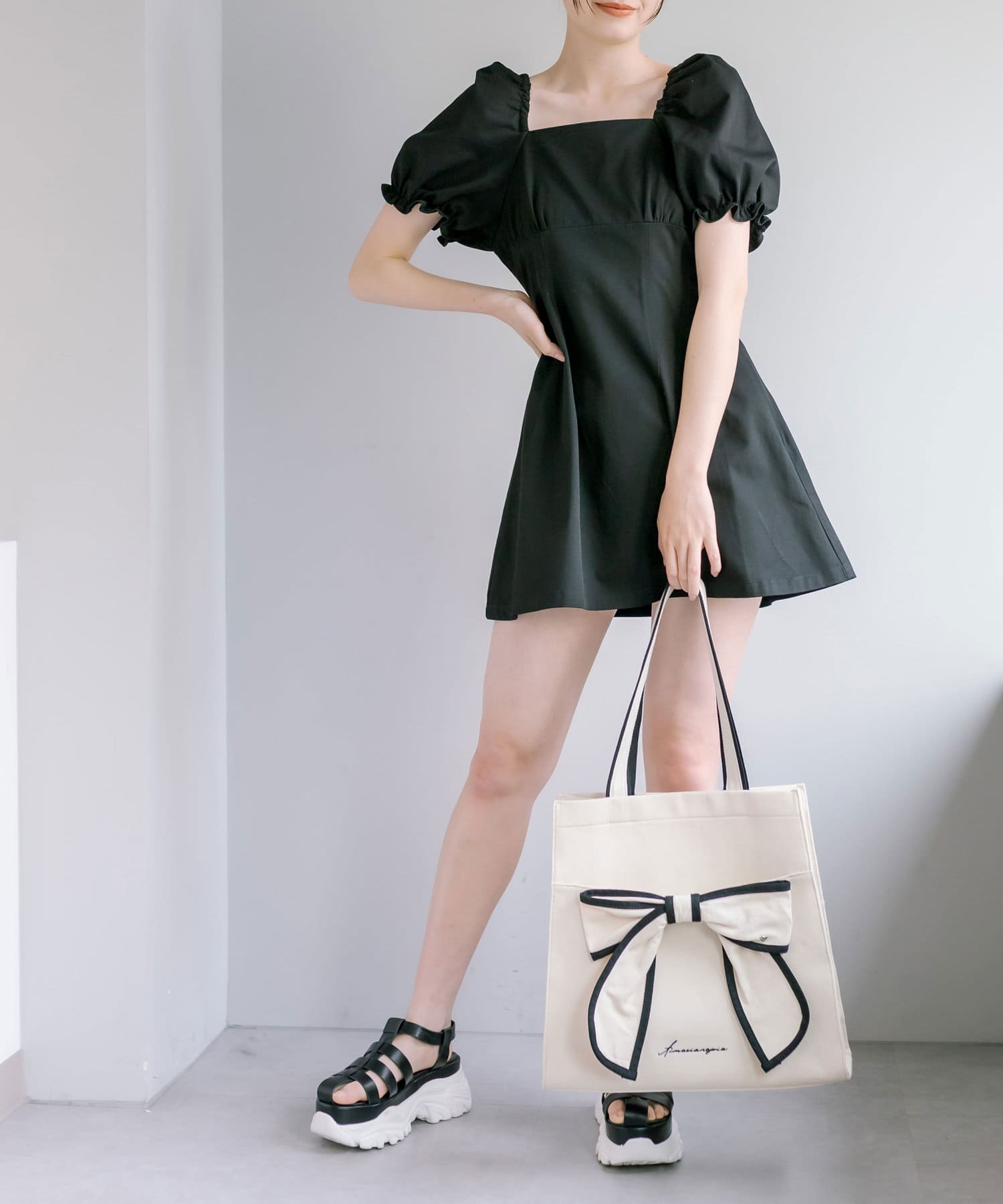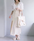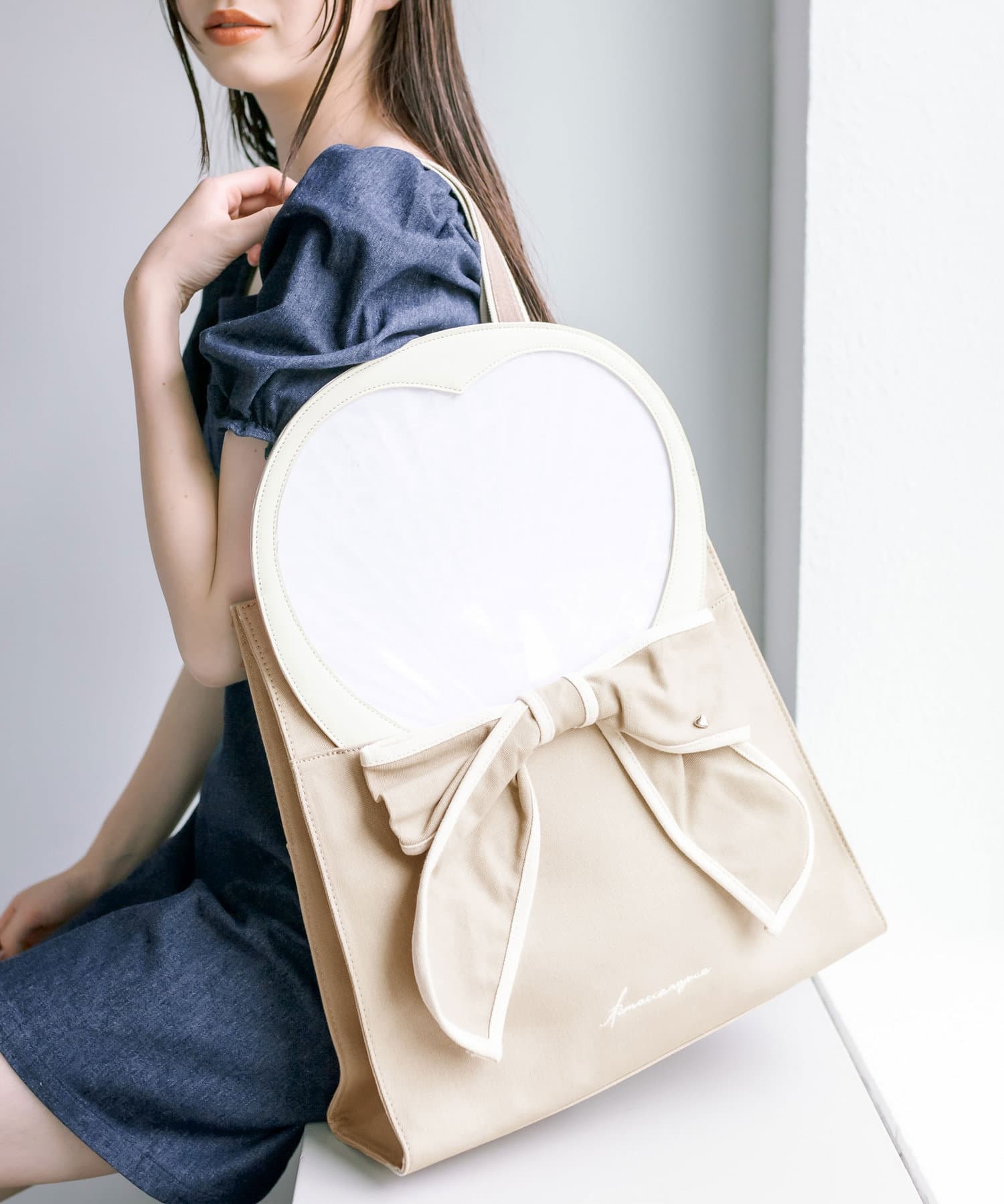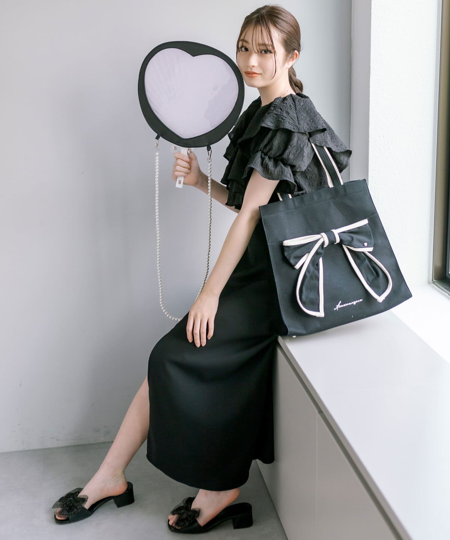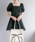 ・ビッグサイズのリボンが目を惹くトートバッグ。