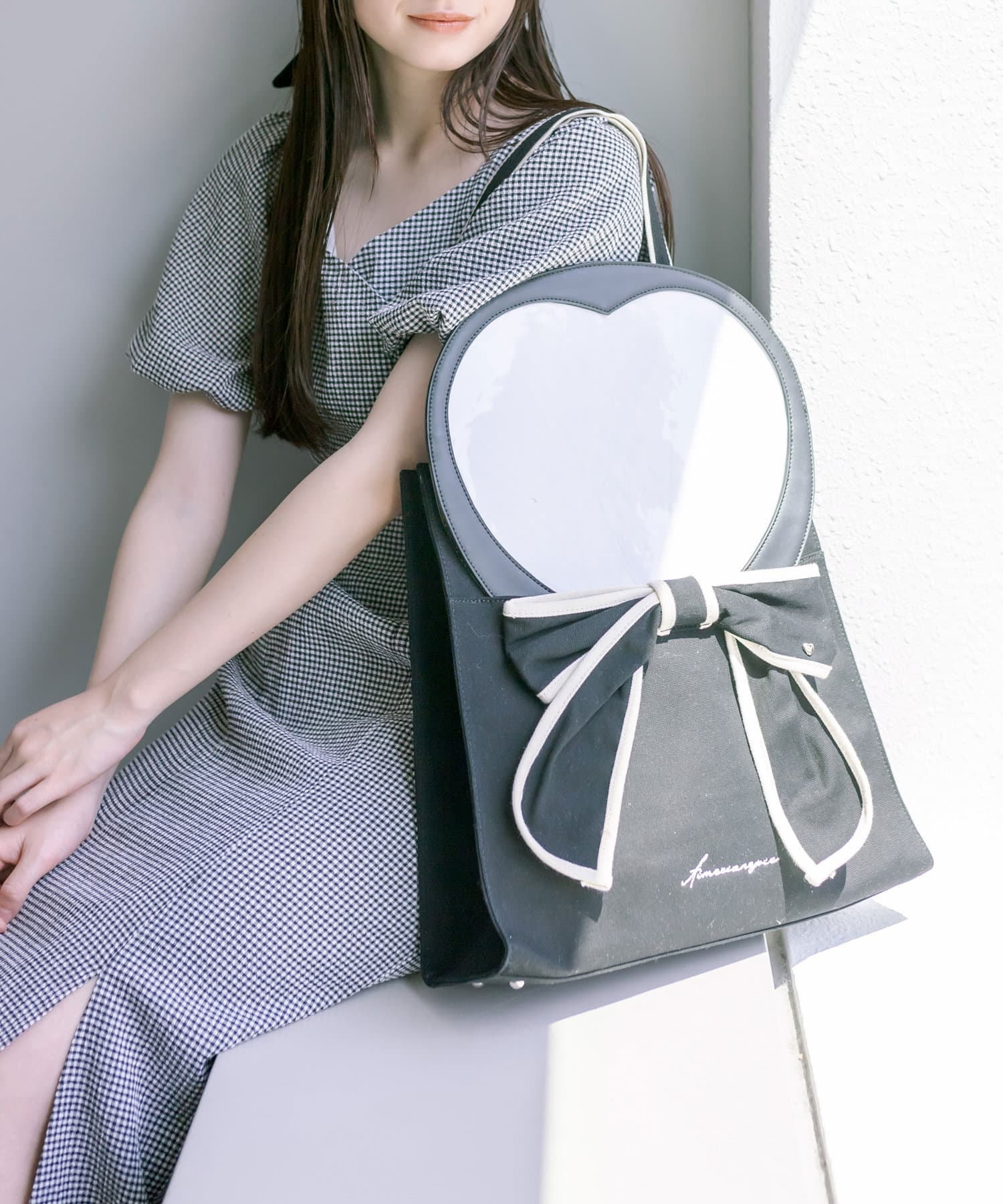 ・“Aimeriane joie”の刺繍ロゴと、リボンに付いたハートチャームもワンポイントに。