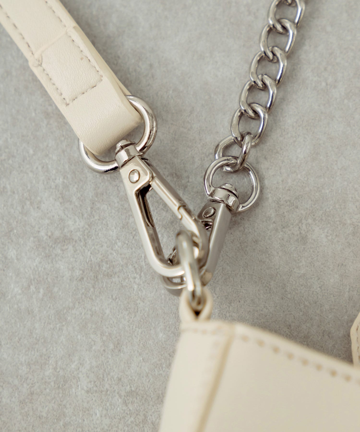 ・チェーンハンドルと肩掛けできるショルダー紐付き。付け替えて楽しめる2WAY仕様です。