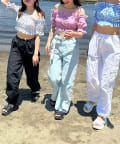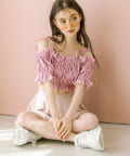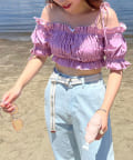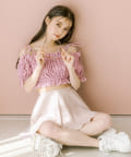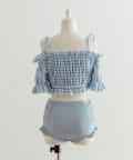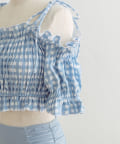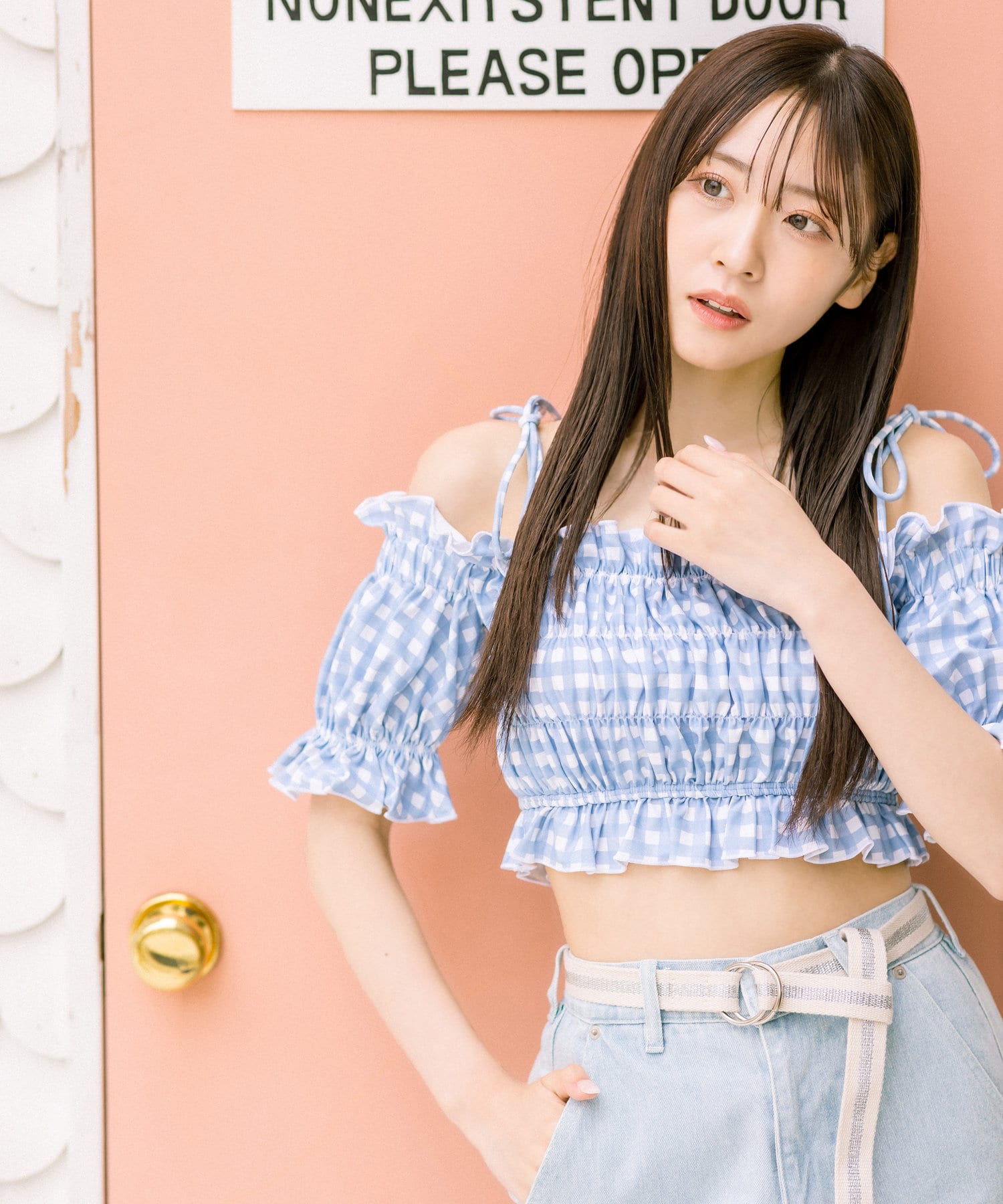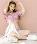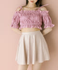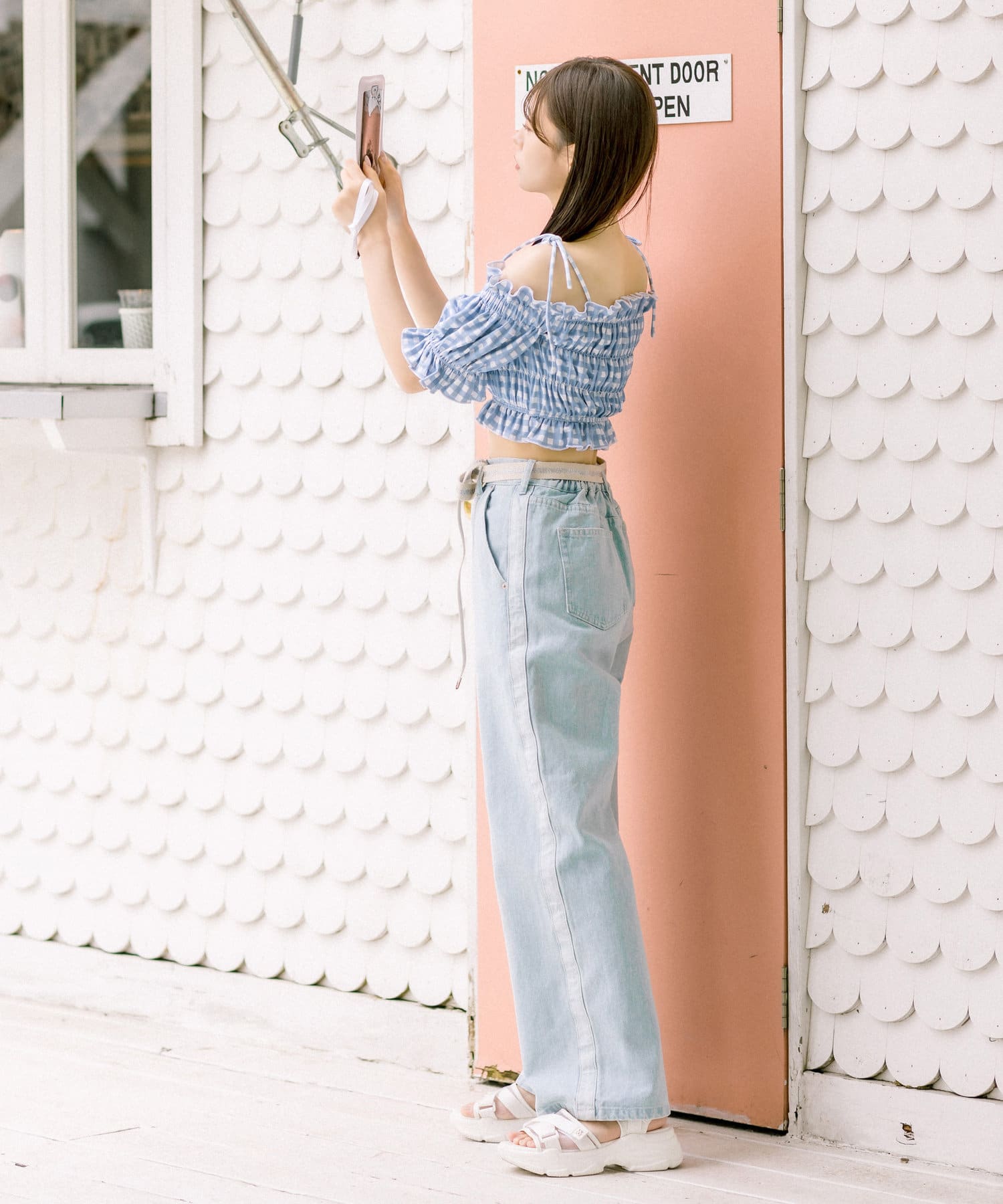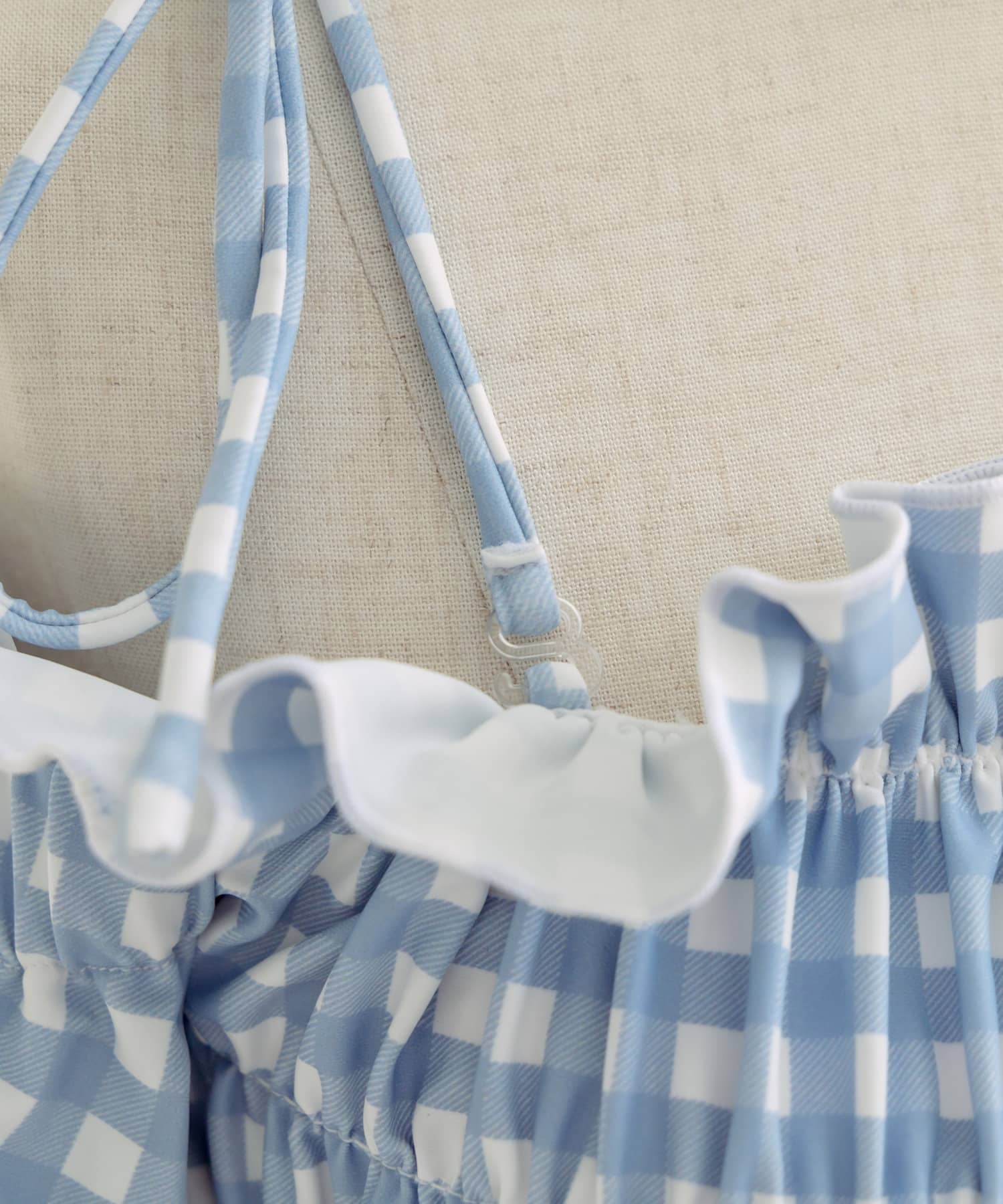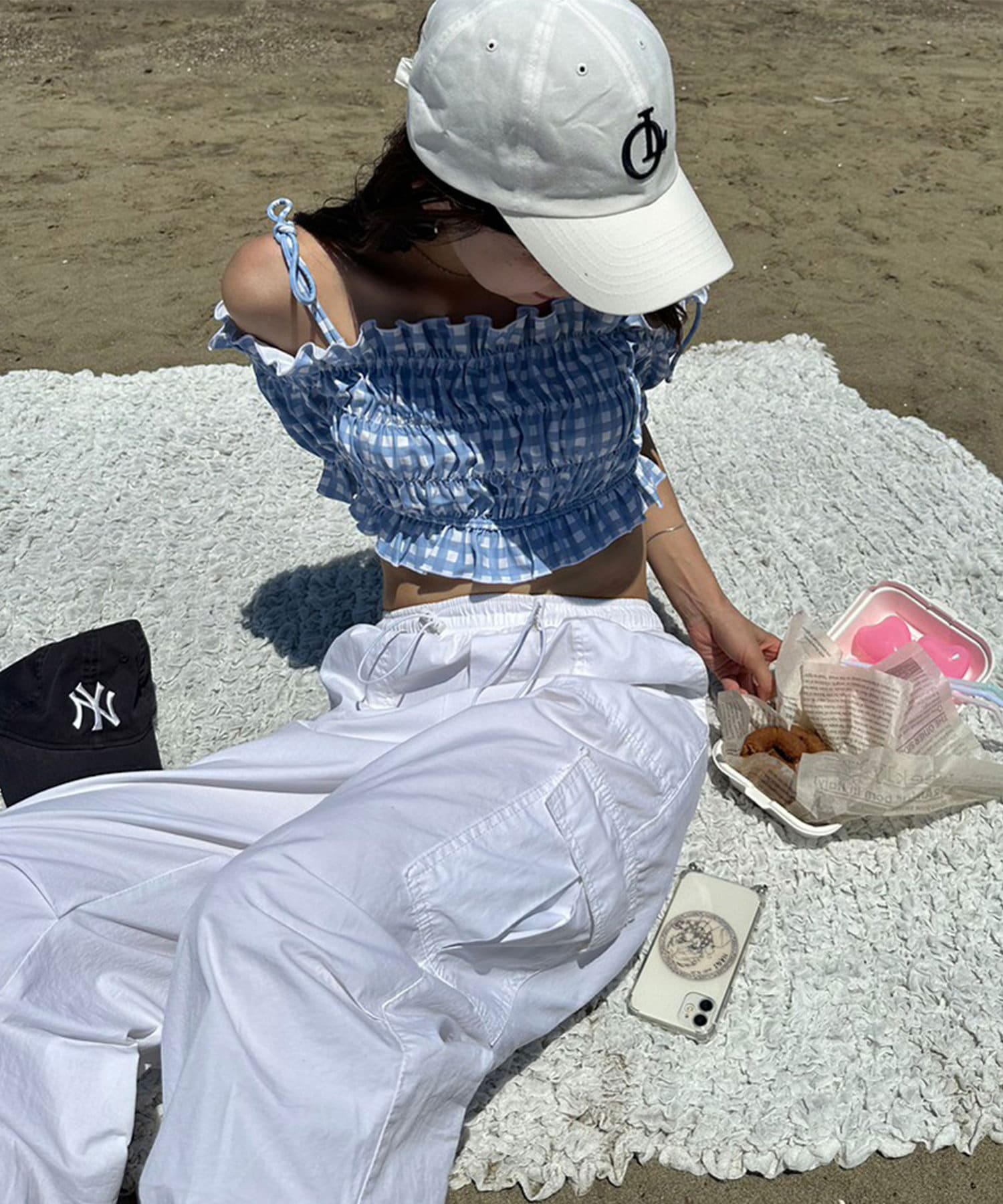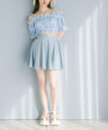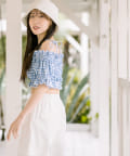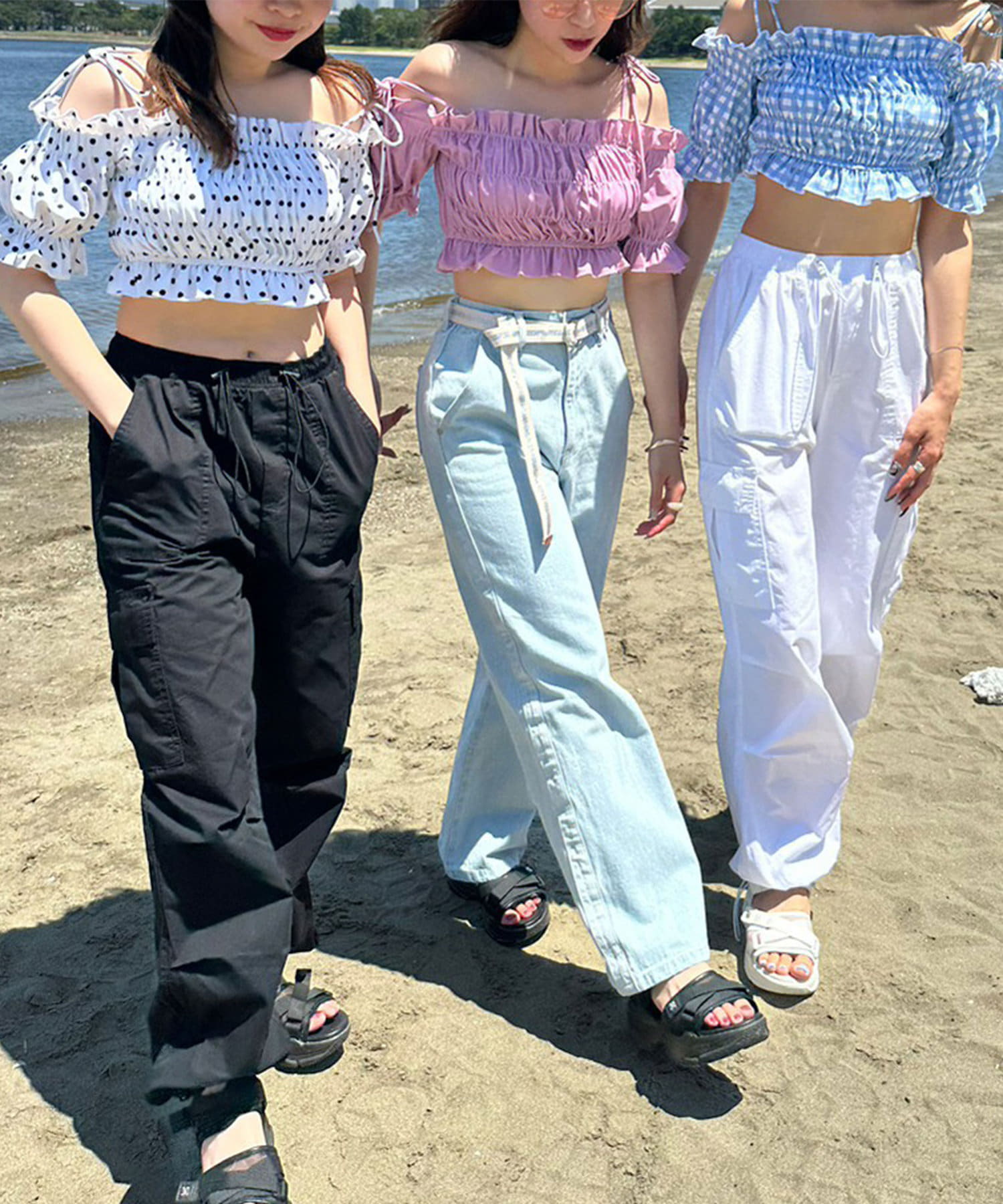 ・オフホワイト(トップス: ドット)/サックス(トップス: ギンガムチェック)/ピンク(無地)/ブラック(スカート: ギンガムチェック)/ミント(無地)の5色展開。
