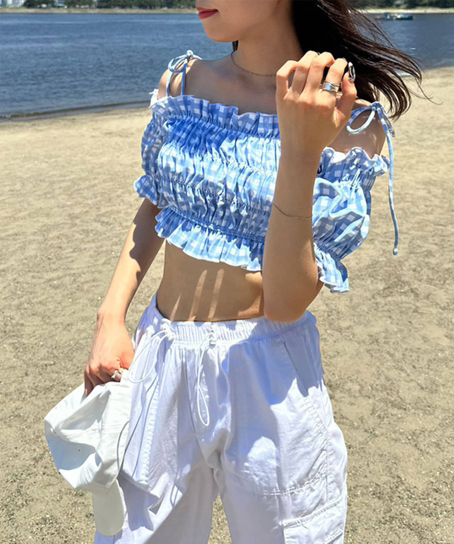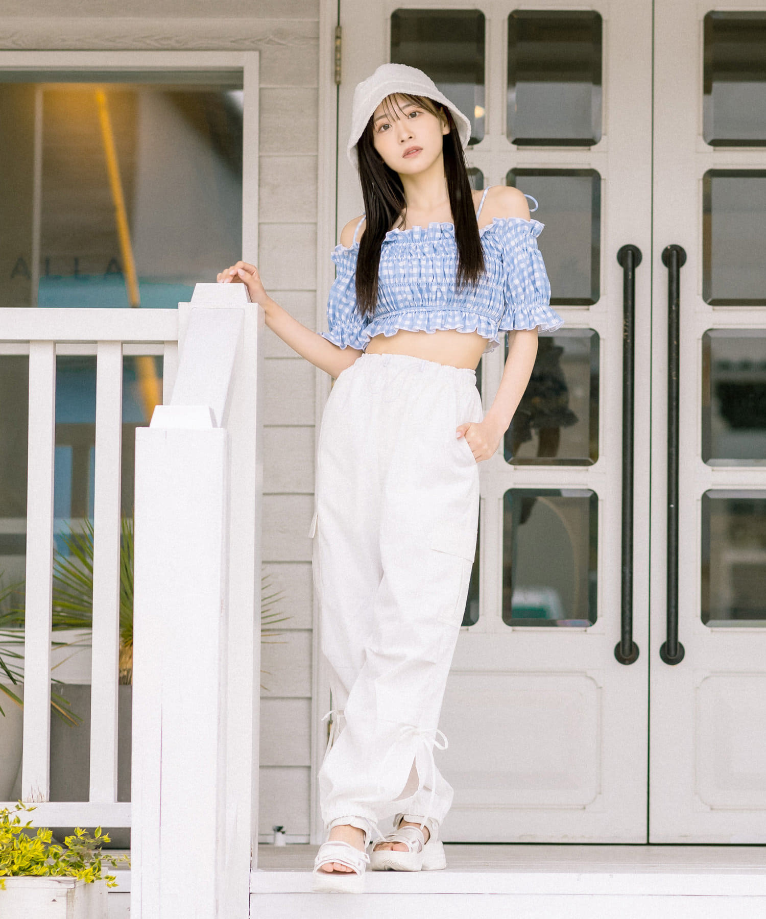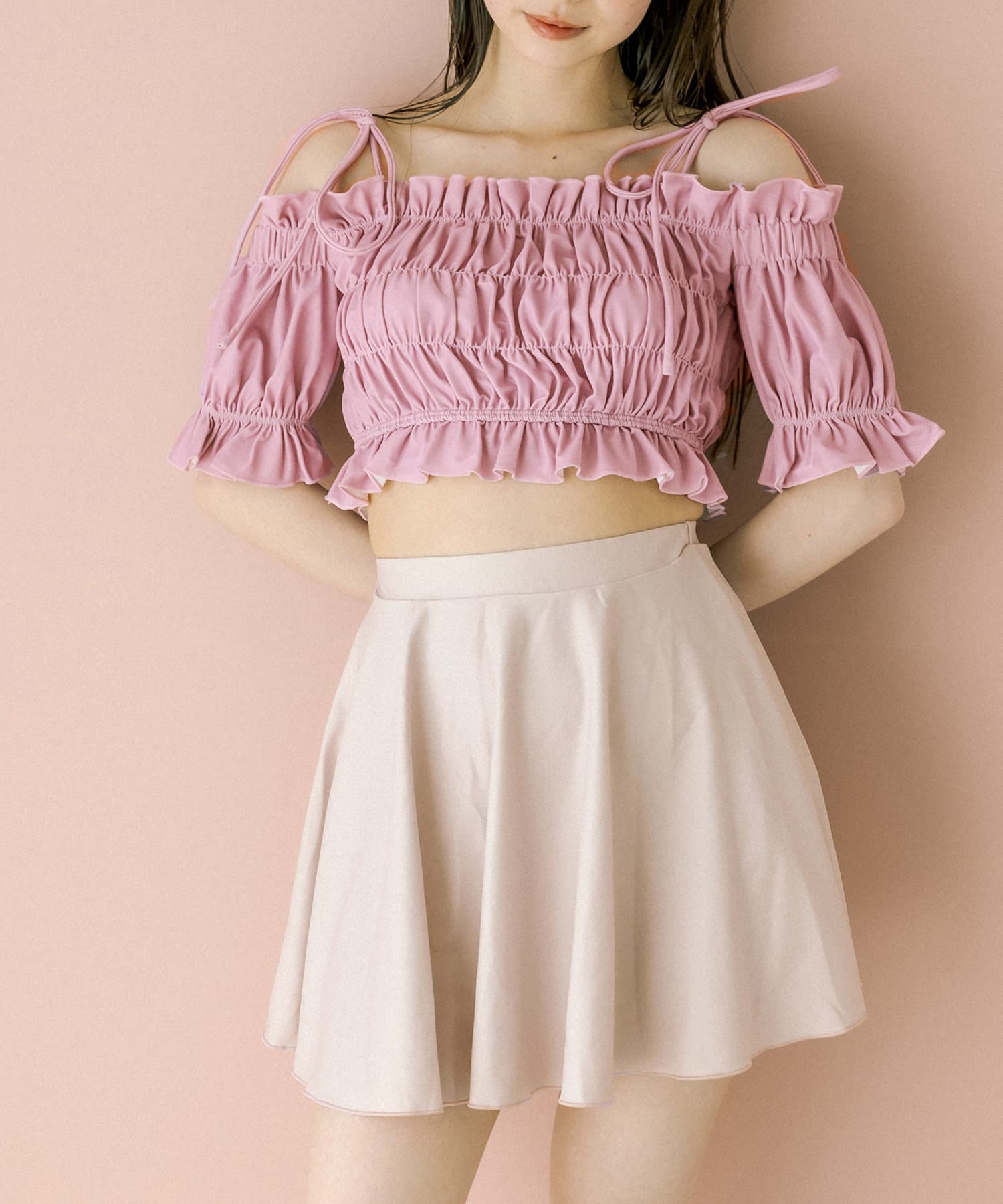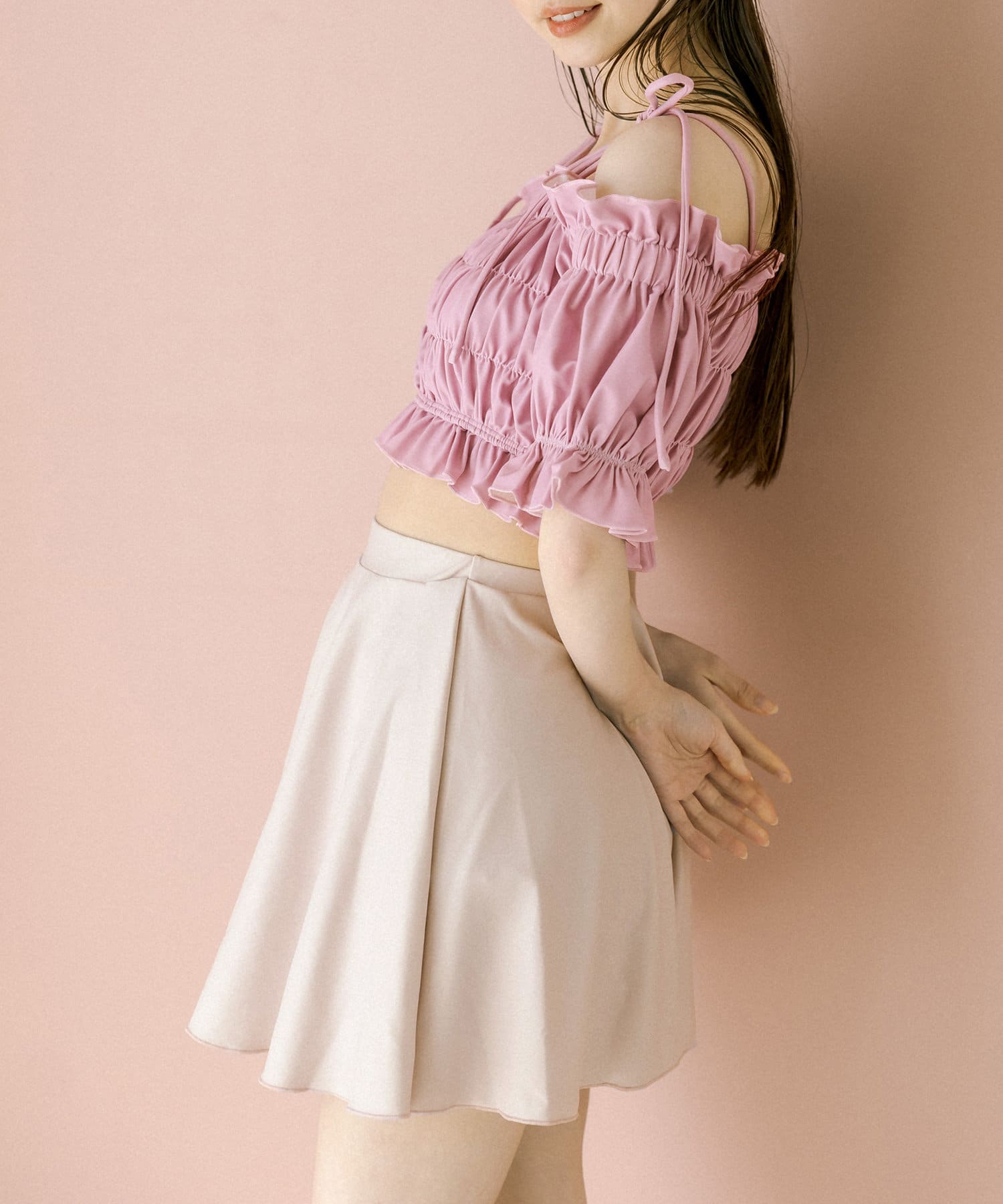 トップスは胸元が開きすぎず、肩紐付きなので安心の着用感です◎