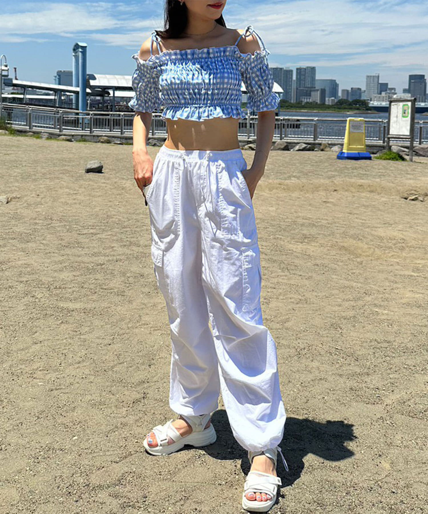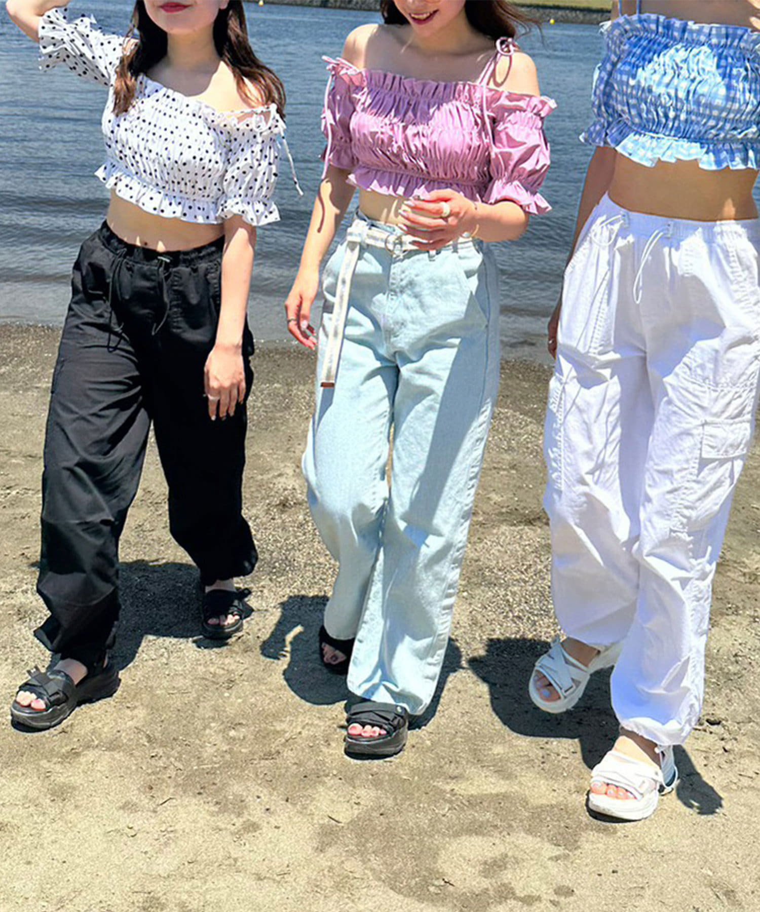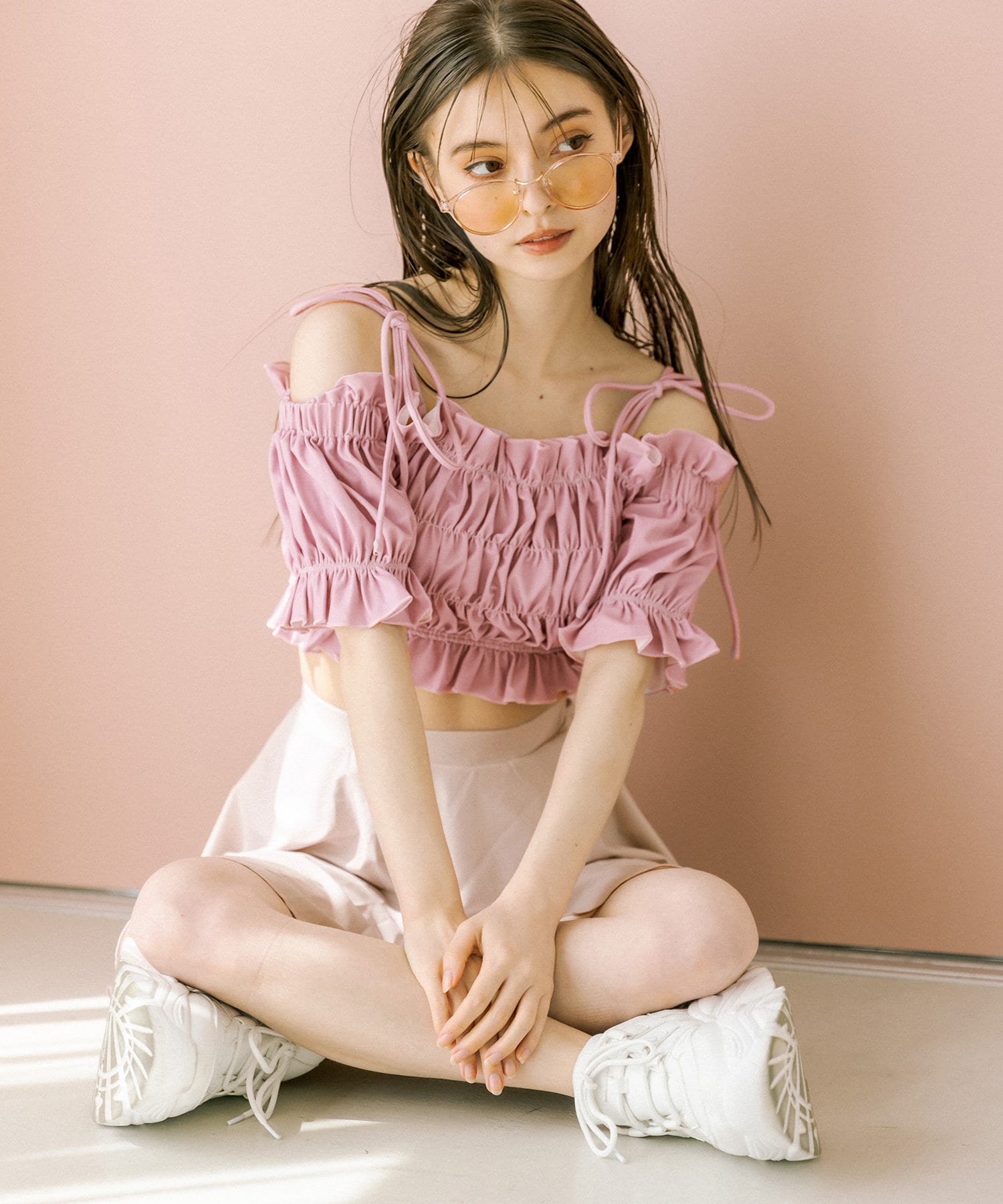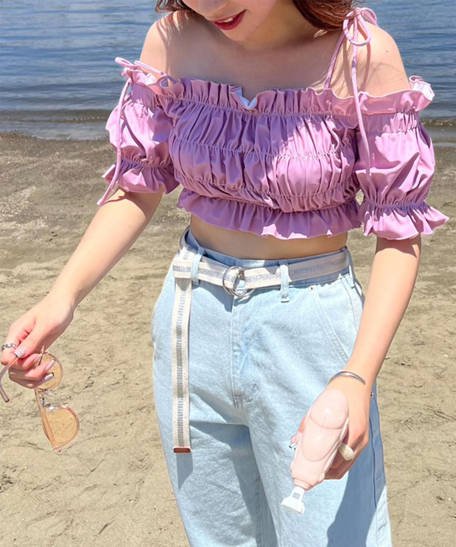 トップスは胸元が開きすぎず、肩紐付きなので安心の着用感です◎