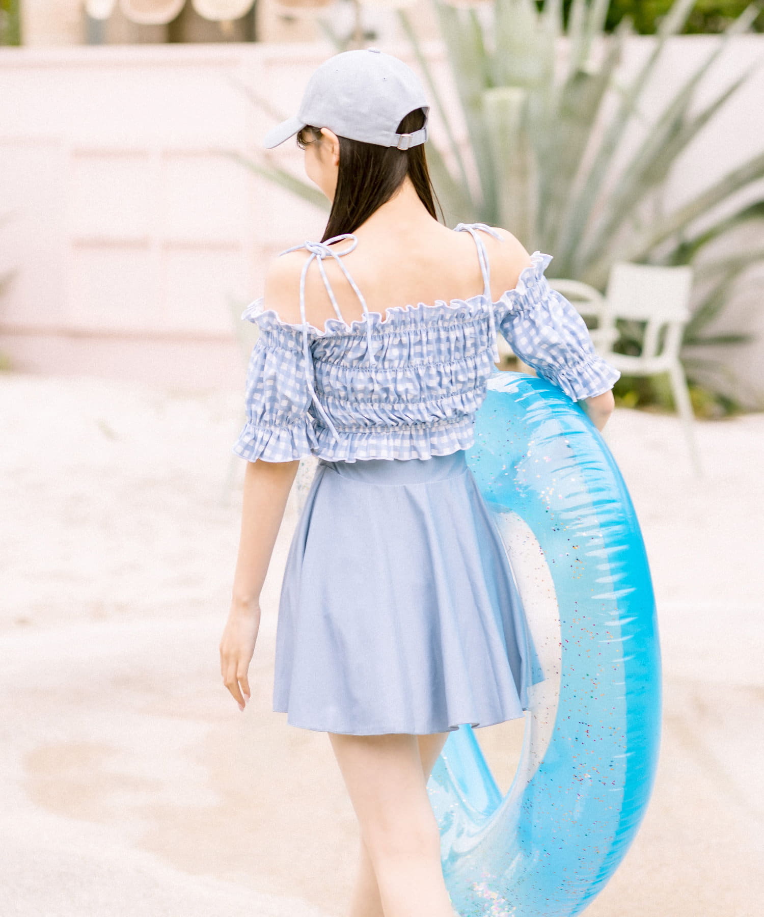 ・かわいく体型カバーでき、トレンドカラーで映えること間違いなしの水着。