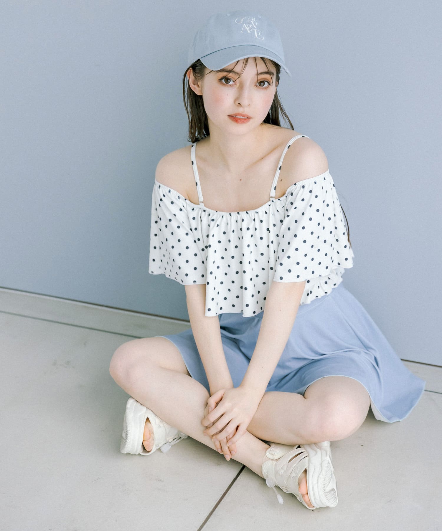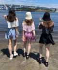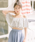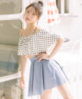 ・オフホワイト(トップス: ドット柄)/ブラック(トップス: ドット柄)/ピンク(無地)/スミクロ(トップス: ギンガムチェック)の4色展開