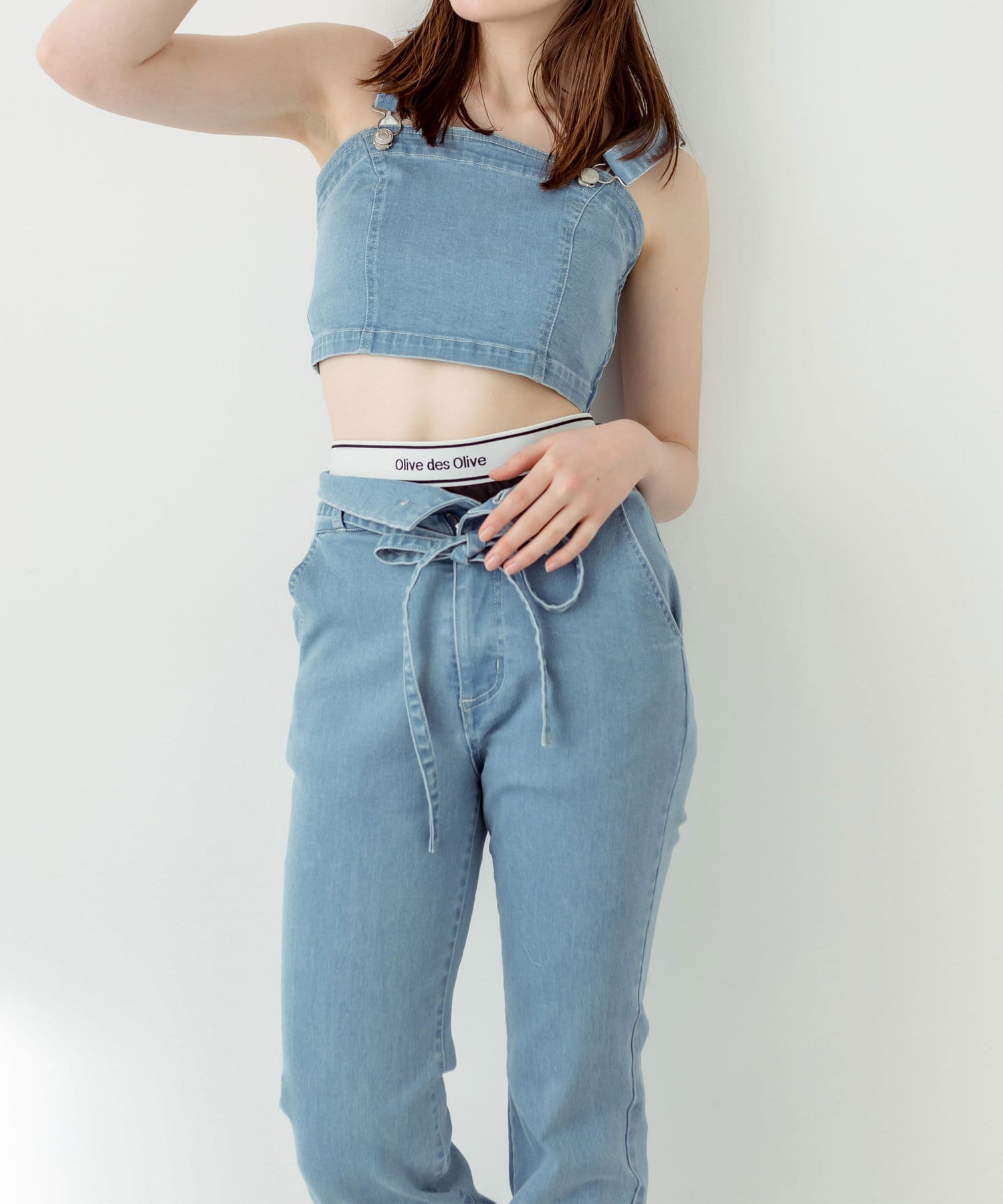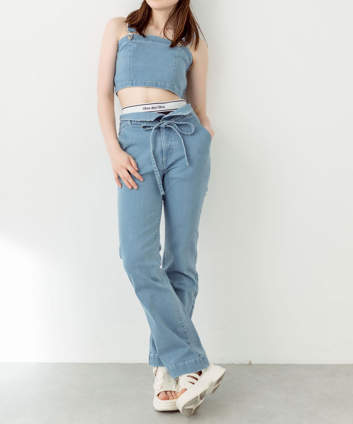 ・ウエストのオリーブロゴをみせて着るのが今年らしいポイント。