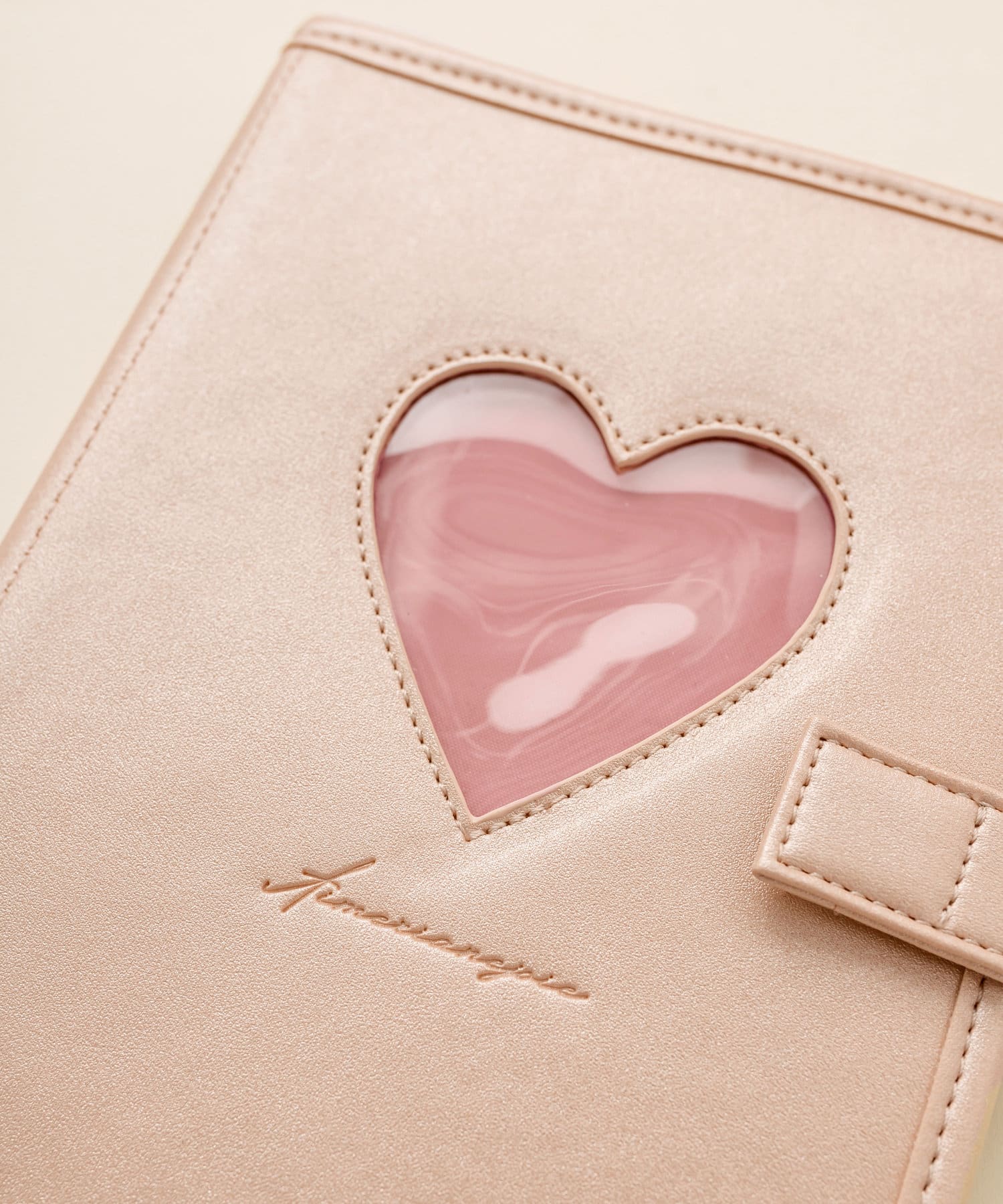 ・フロント面はハートにくりぬかれており、推しの写真を内側から入れられます。付属の硬化クリアファイルに挟むと写真がズレにくいのでおすすめです。