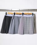 素材 【チェック】表地: ポリエステル90%, レーヨン10% 裏地: ポリエステル100% ゴム部分: ポリエステル70%, ポリウレタン30% 【チャコール/ブラック】表地: ポリエステル74%, レーヨン21%, ポリウレタン5% 裏地: ポリエステル100% ゴム部分: ポリエステル70%, ポリウレタン30%