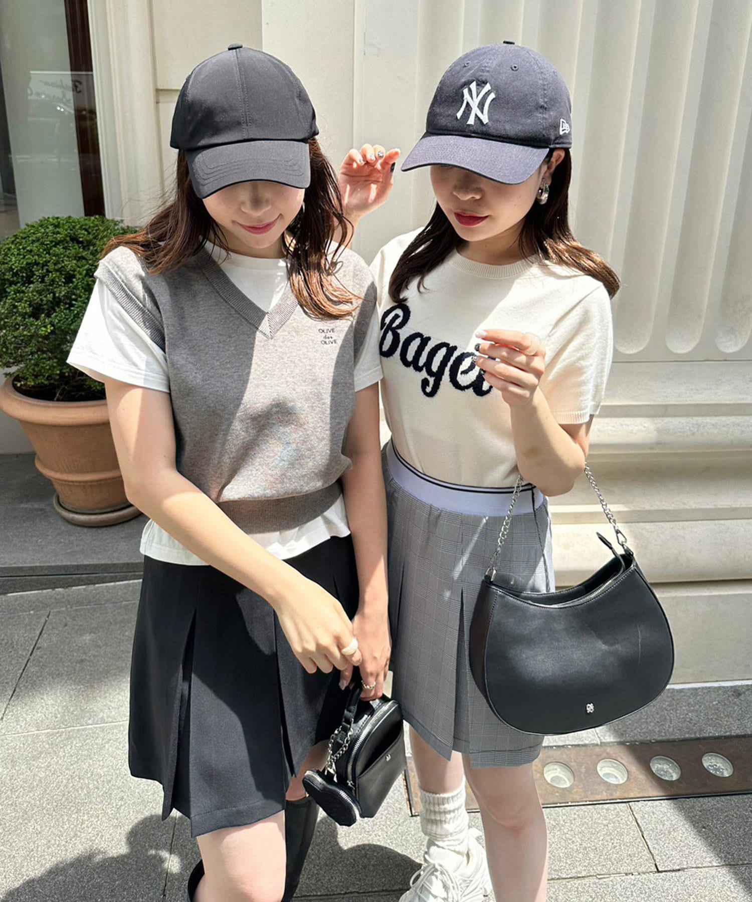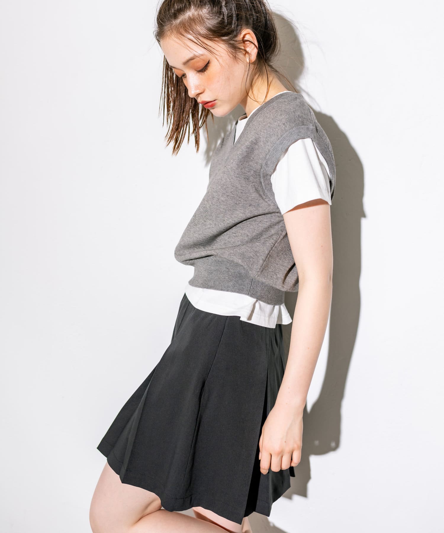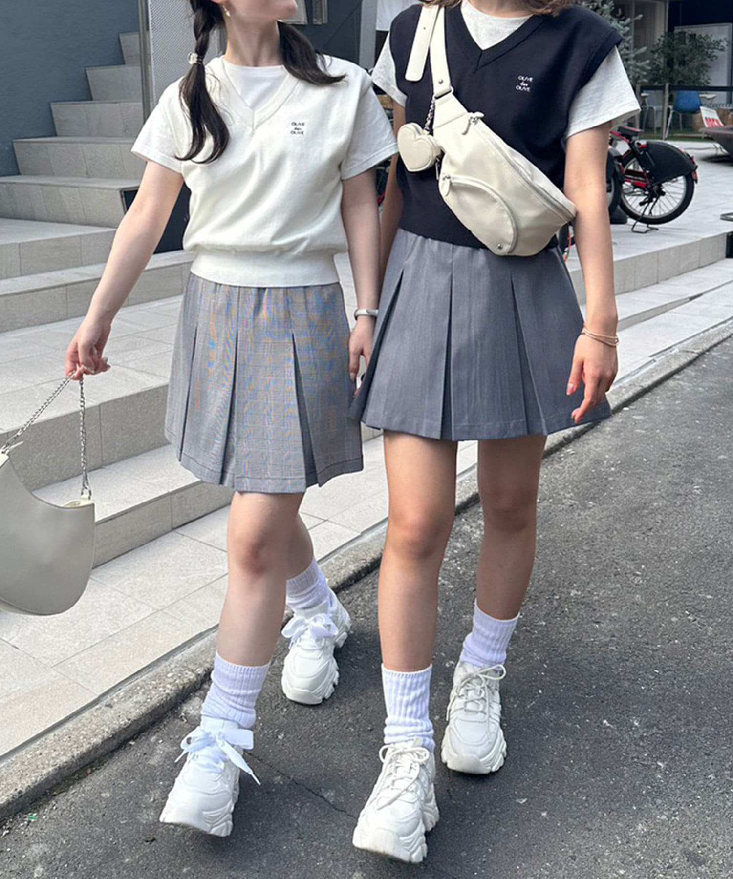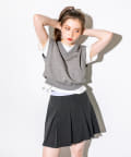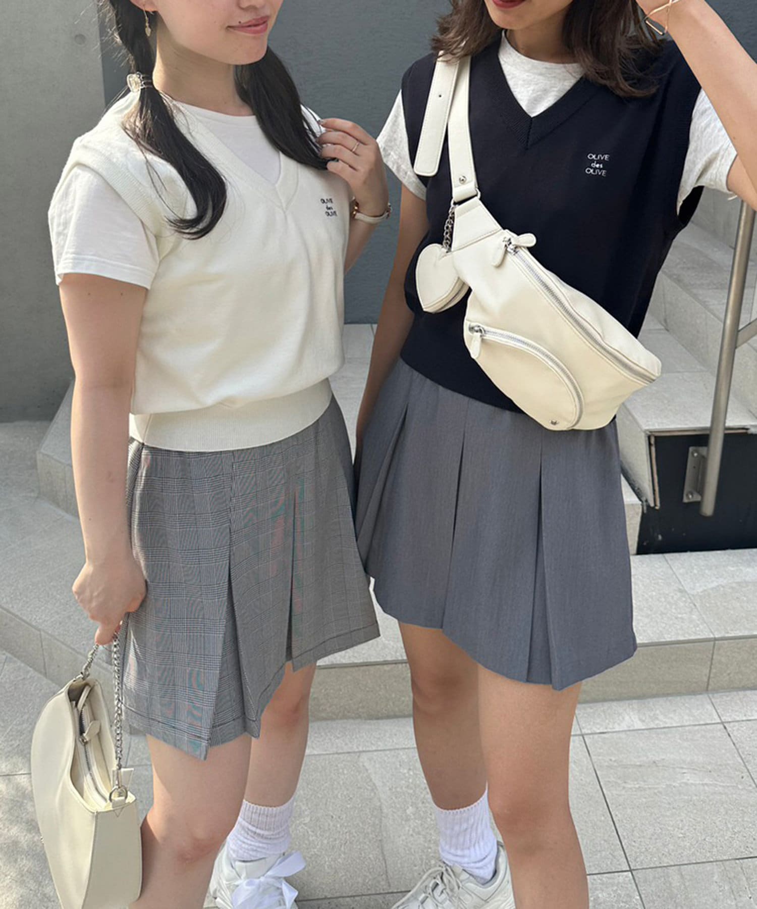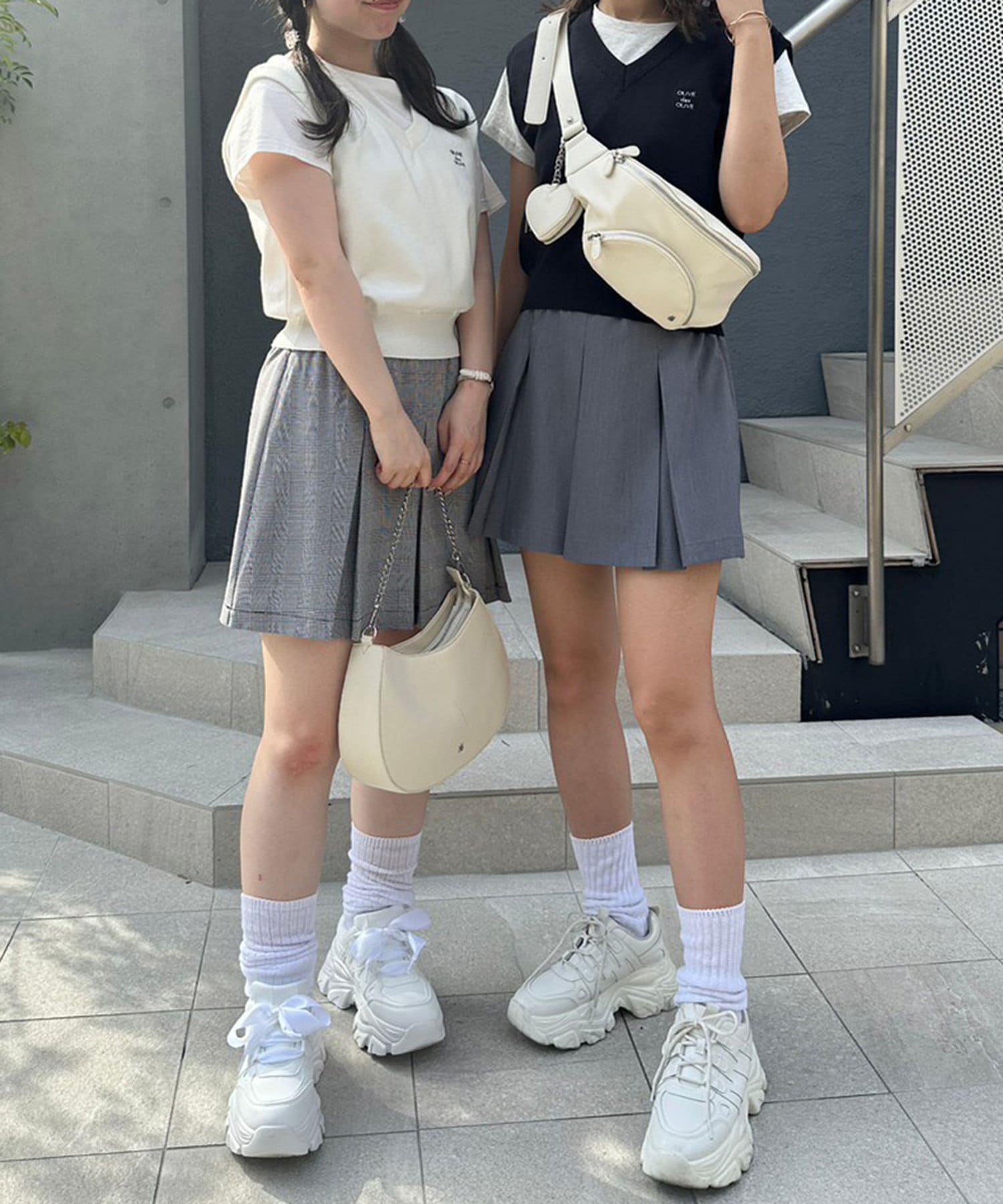 ・ニットベストで合わせれば韓国ガーリーな着こなしに。