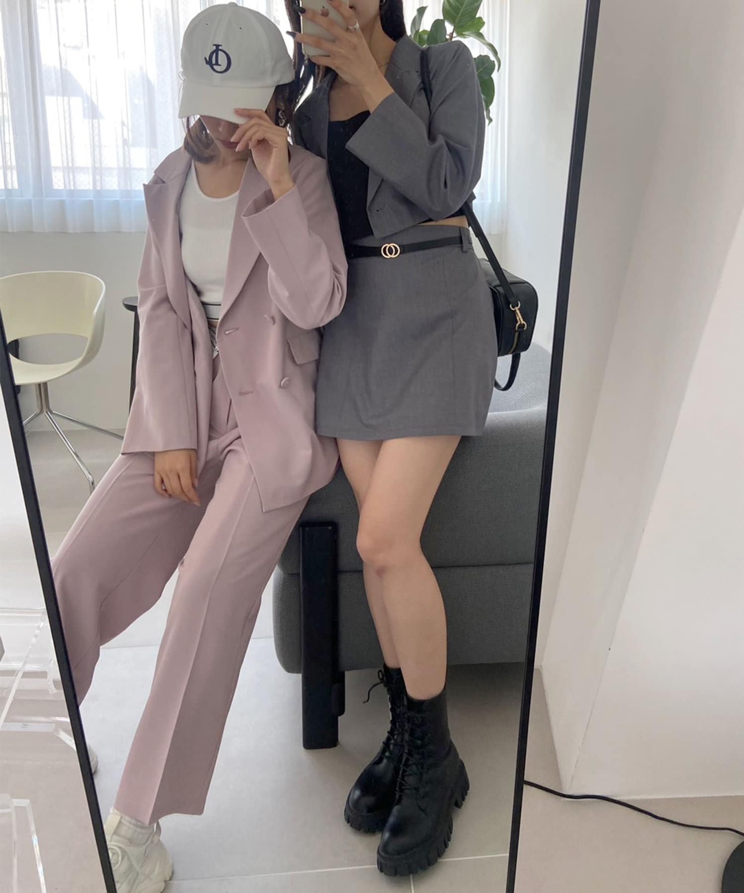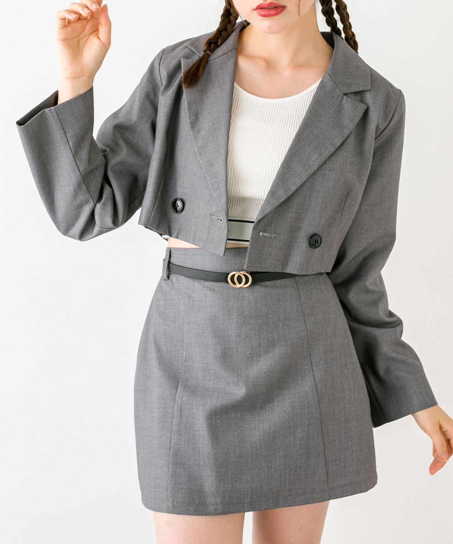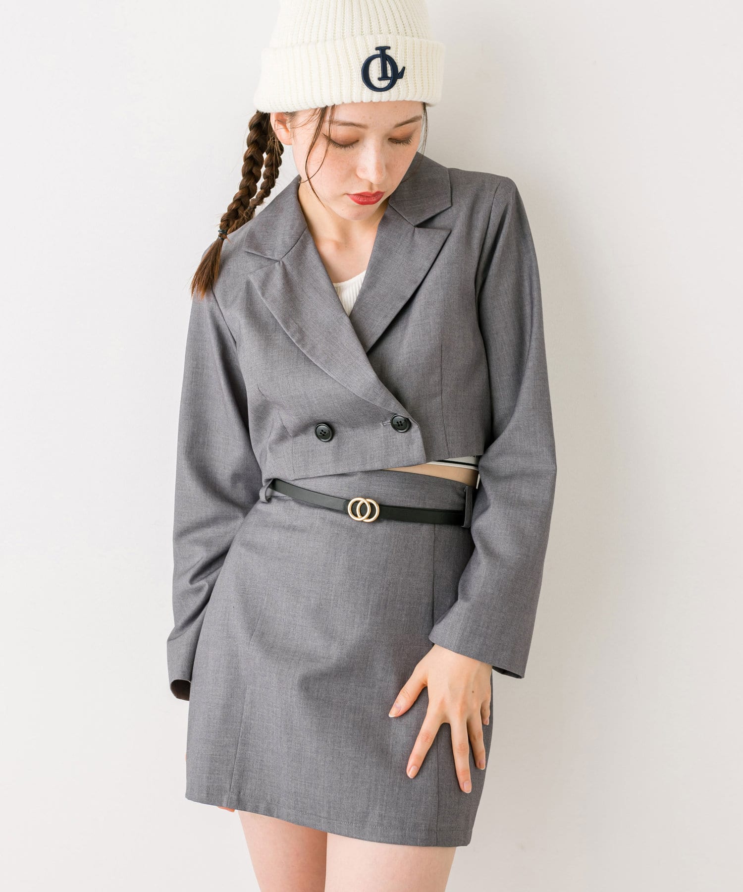 ・クロップドテーラードジャケット(品番: 1032070060)、ボクシーテーラードジャケット(品番: 1032070050)とセットアップコーデが一押し。