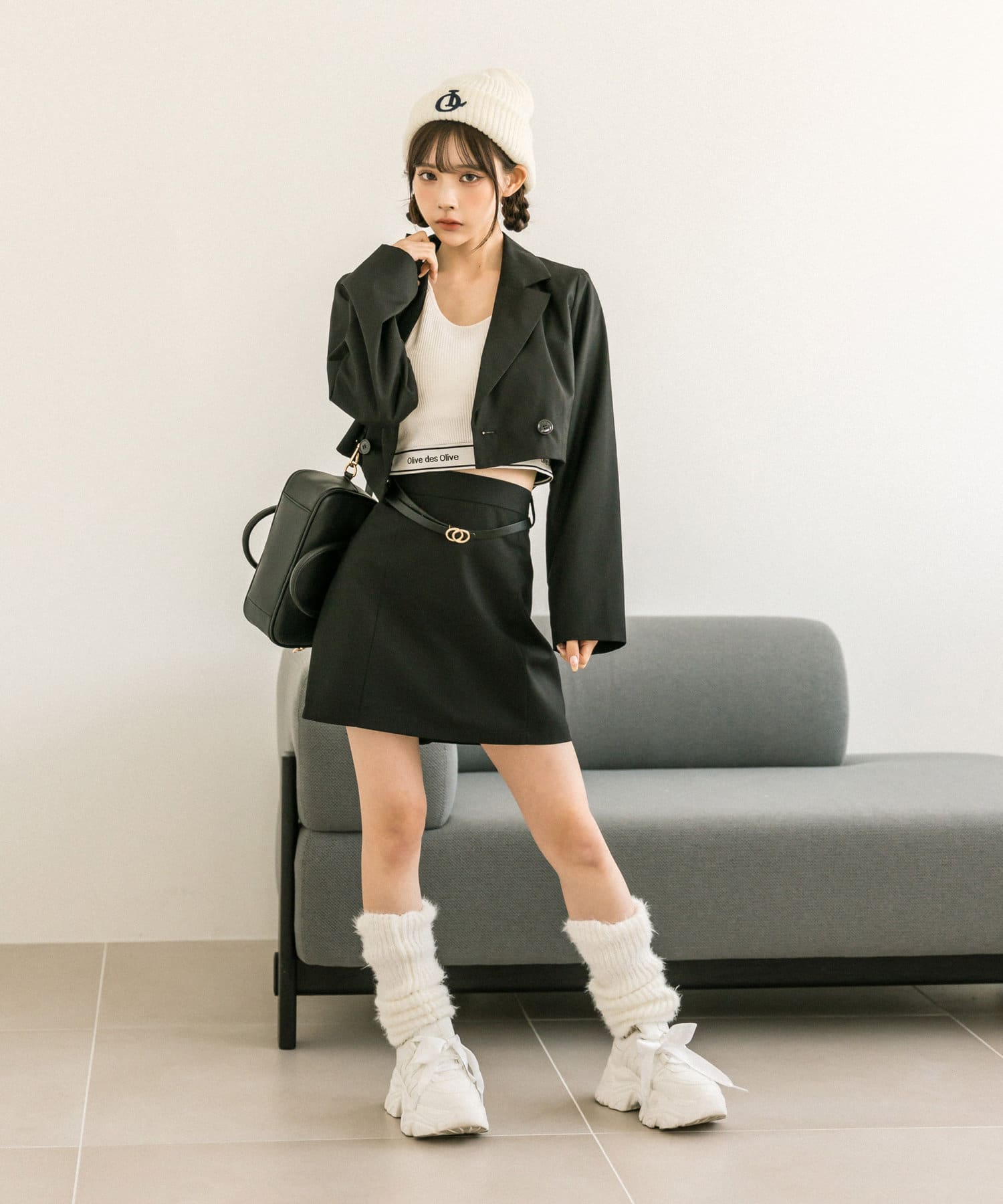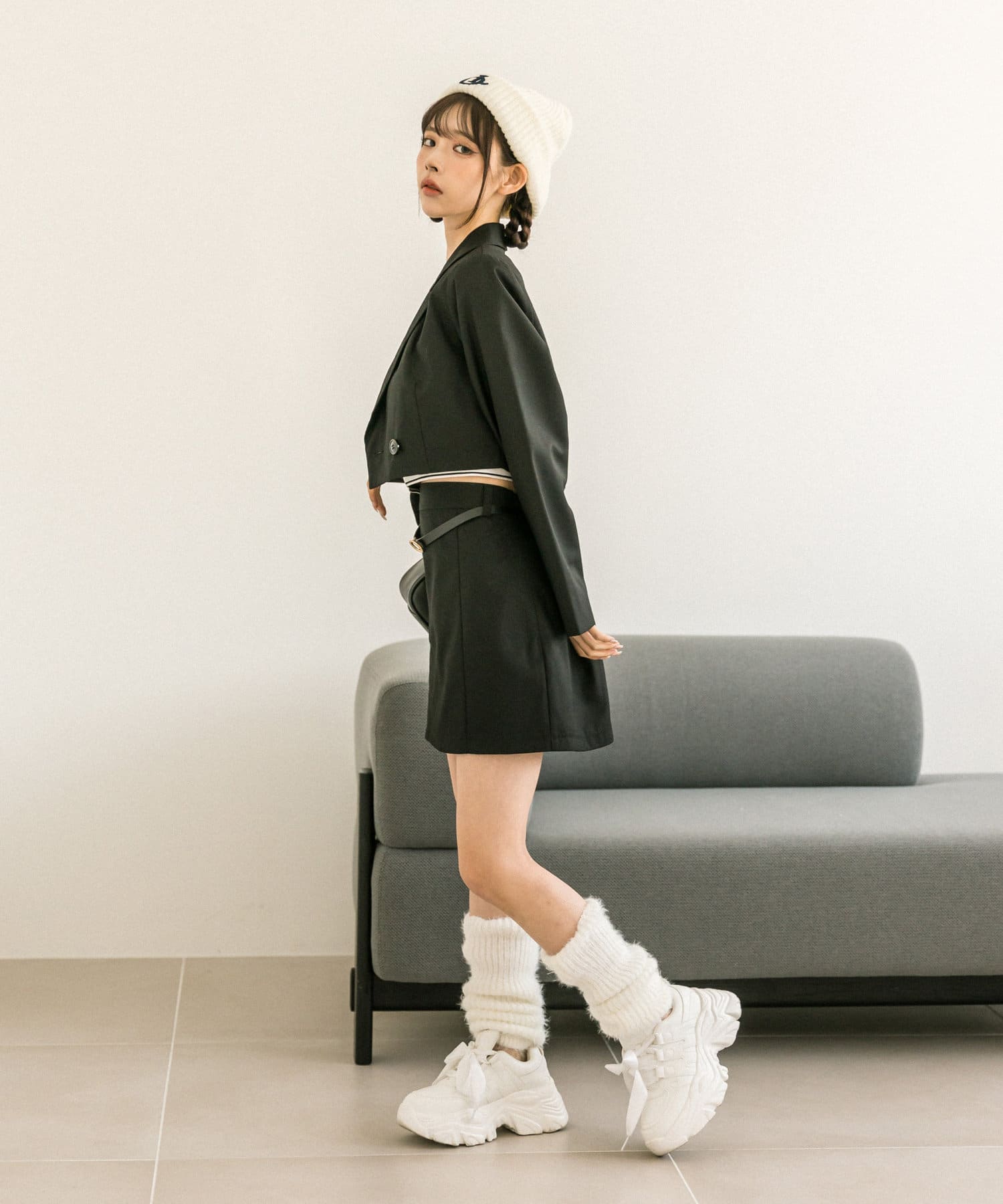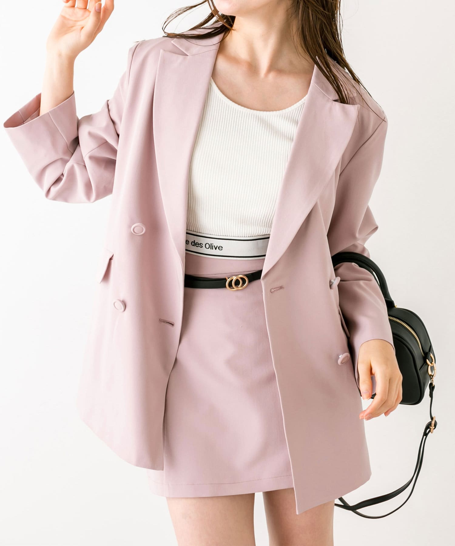 ・クロップドテーラードジャケット(品番: 1032070060)、ボクシーテーラードジャケット(品番: 1032070050)とセットアップコーデが一押し。