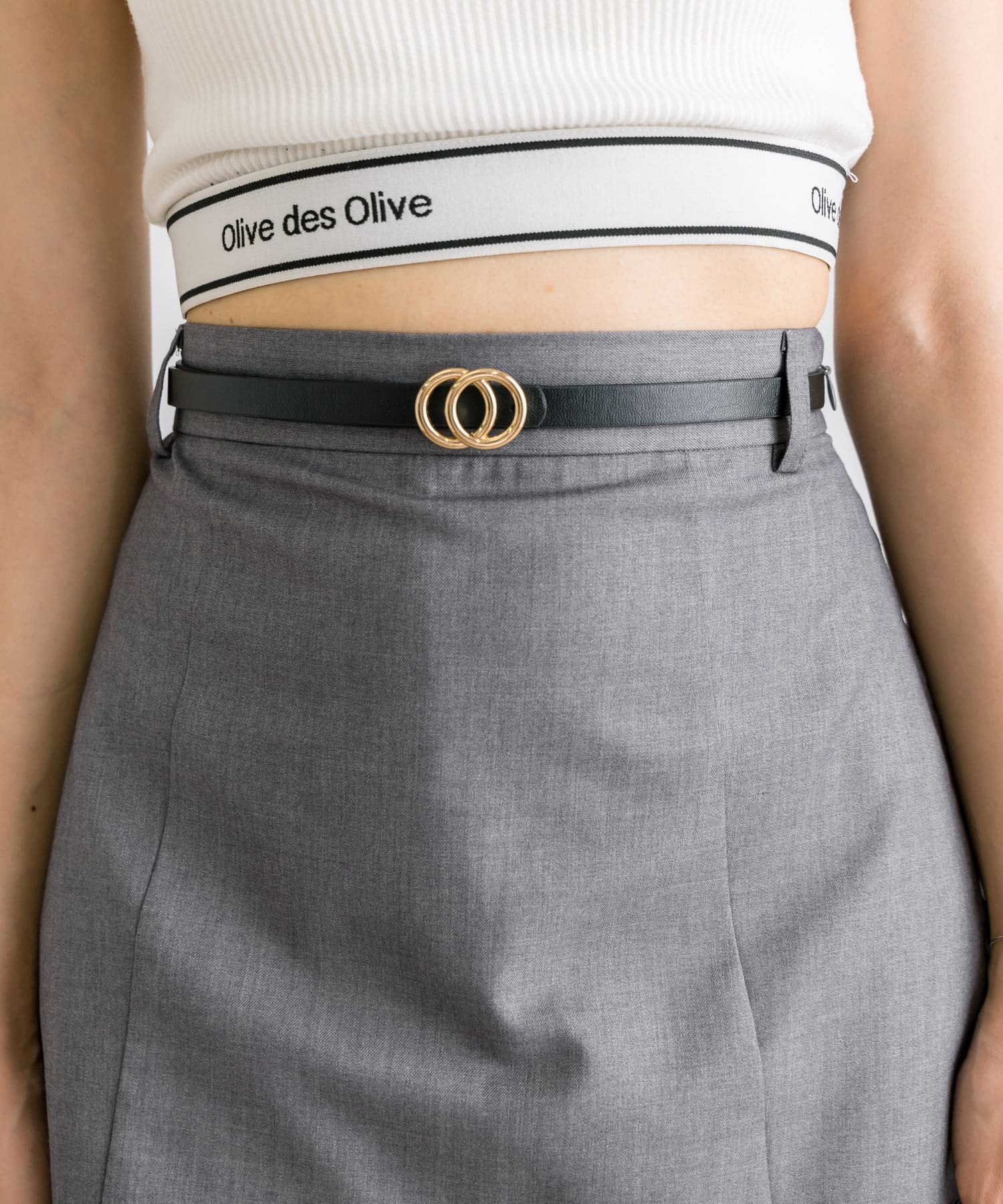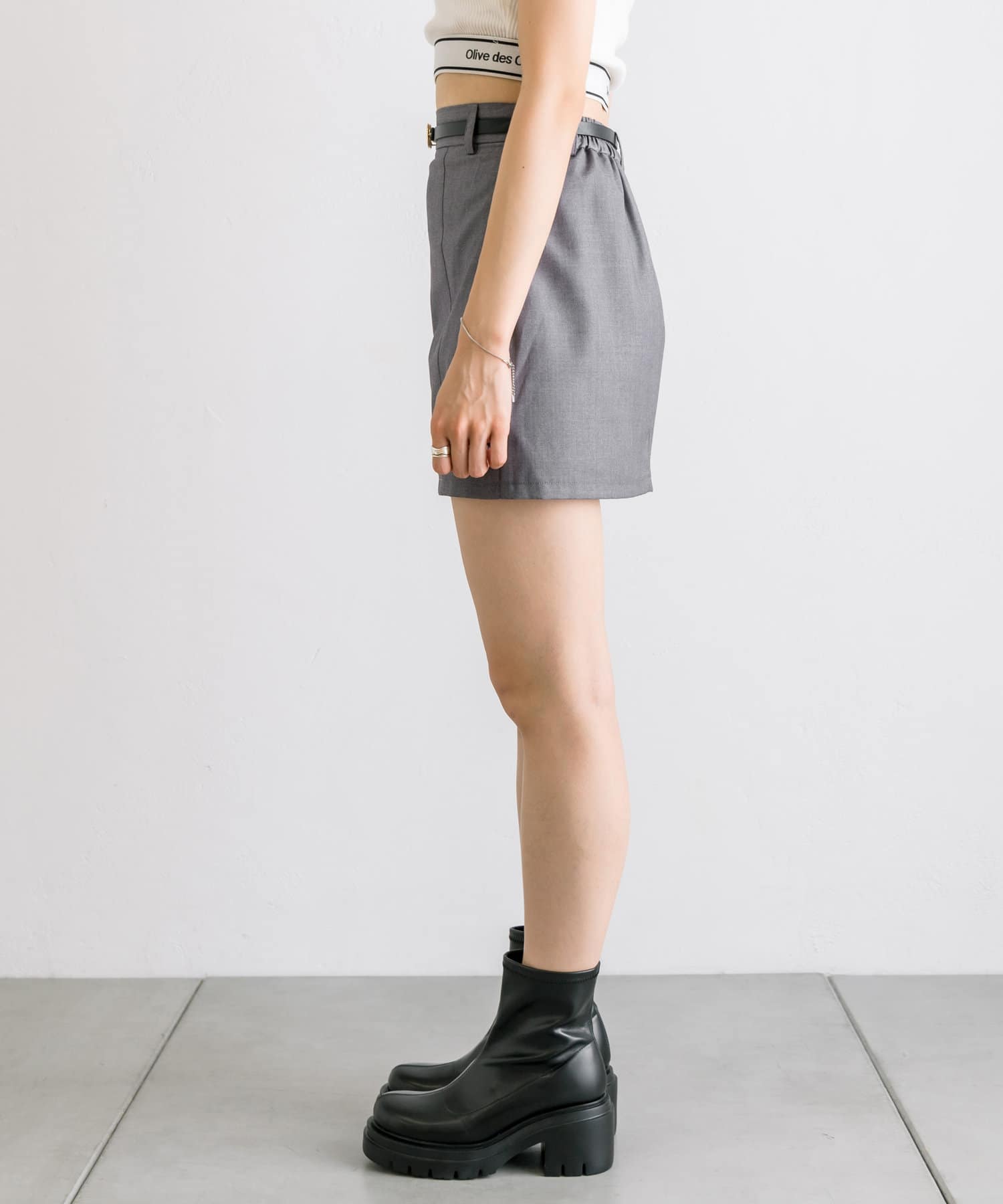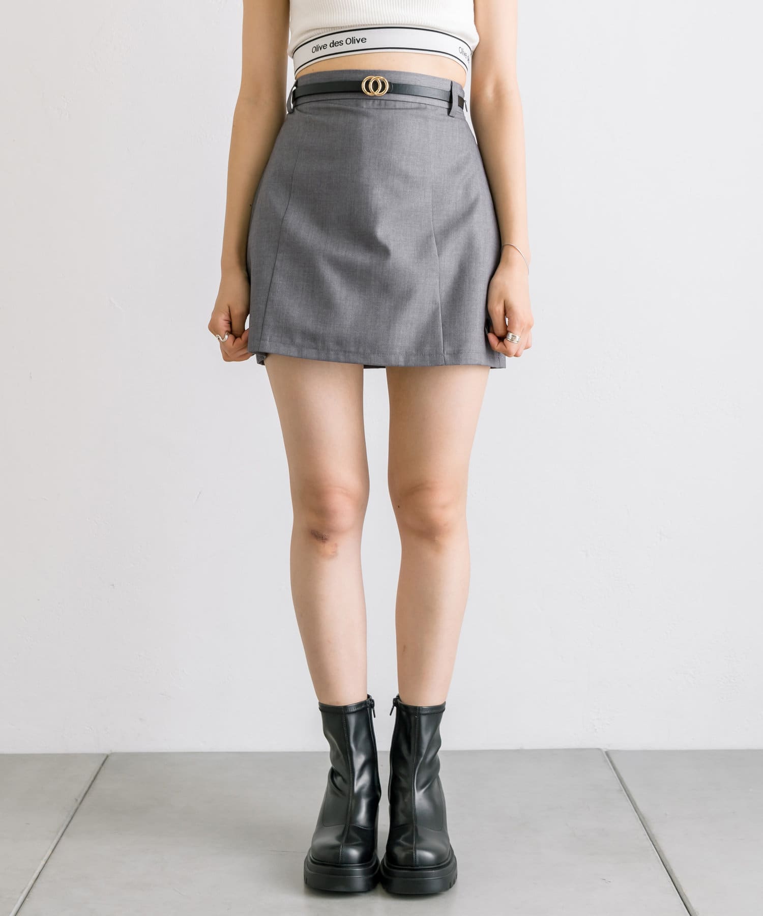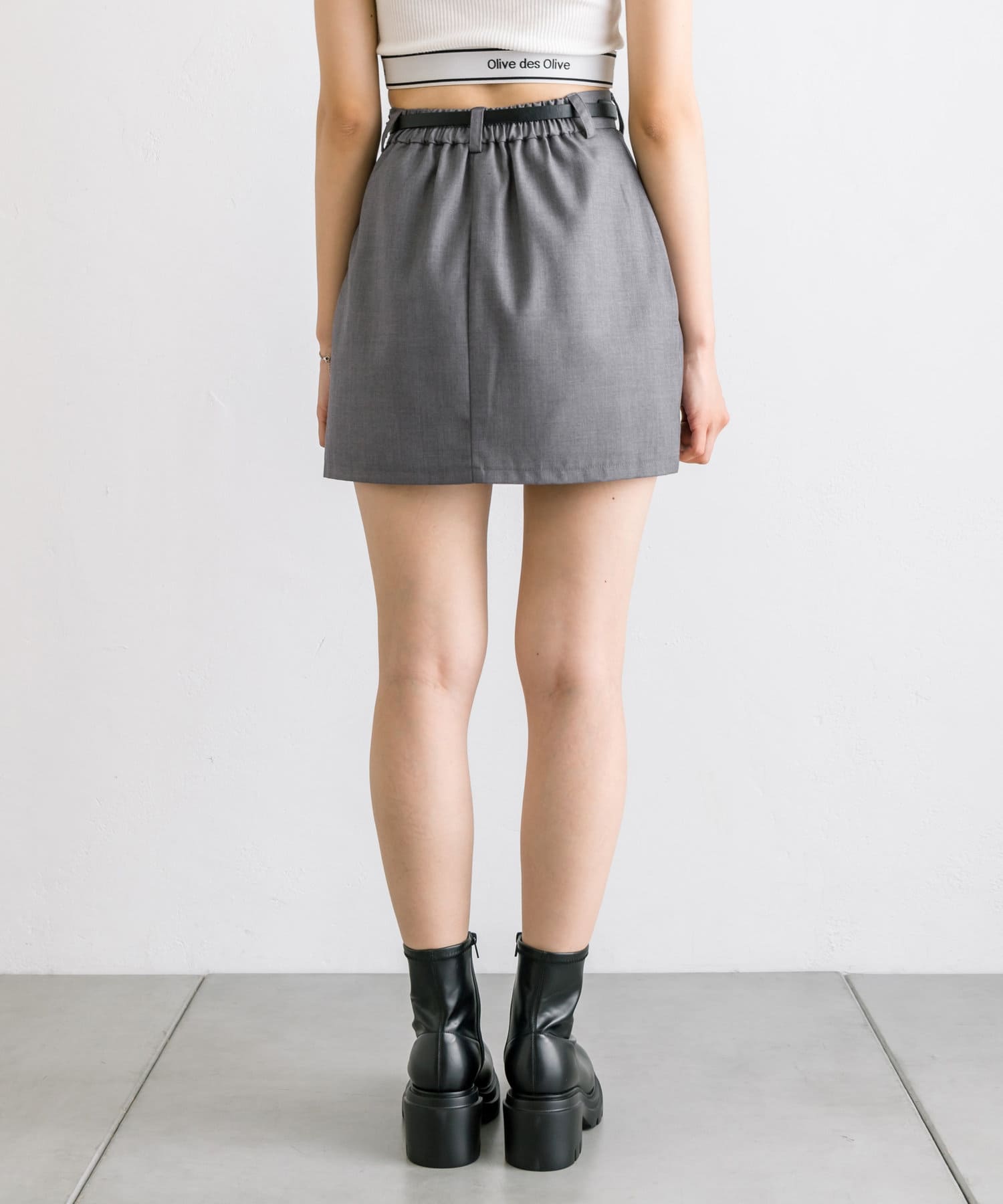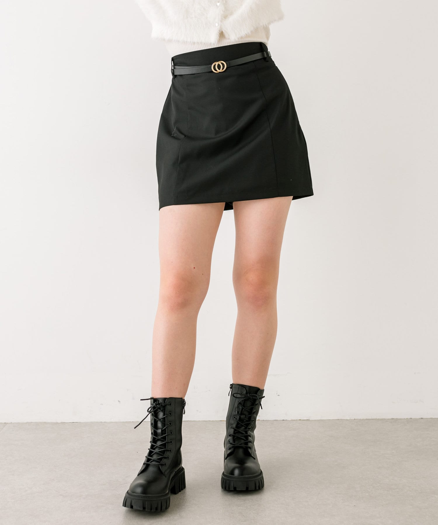 【セットアップ対応】ベルト付きタイトミニスカート