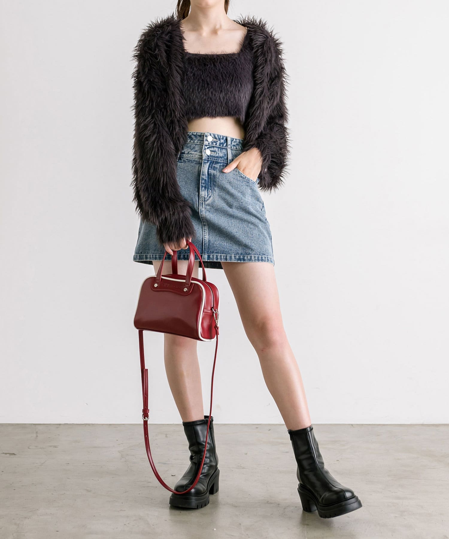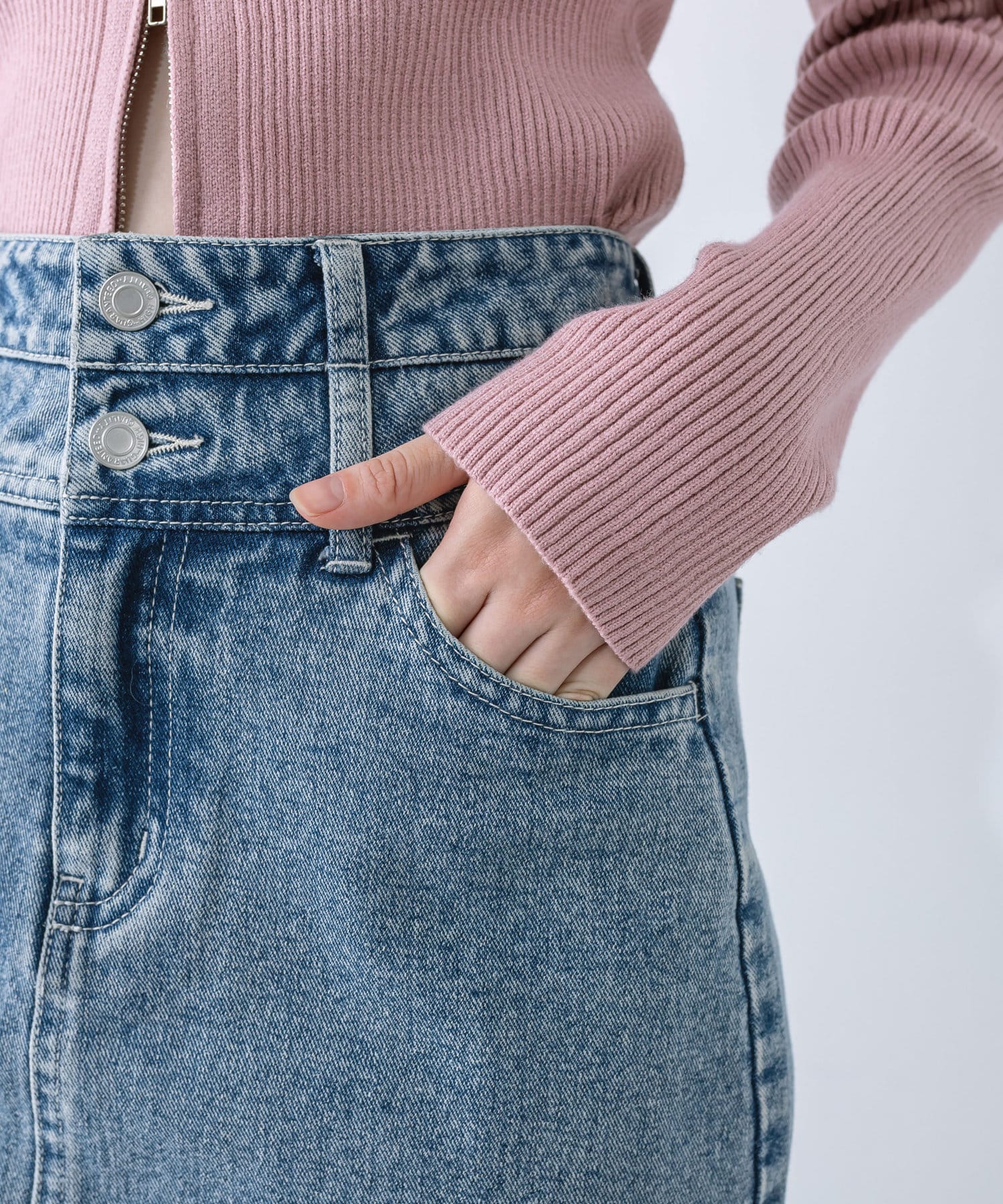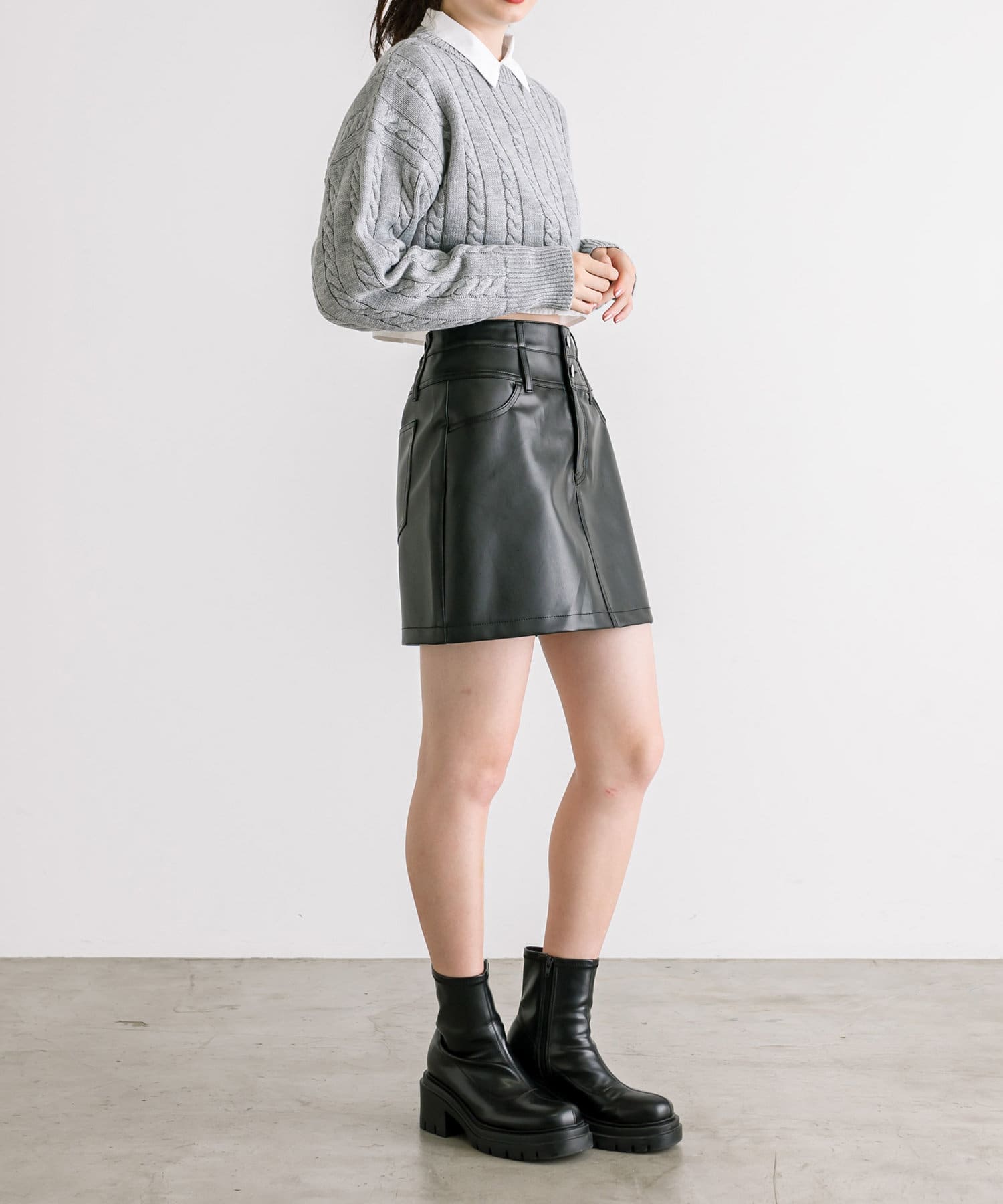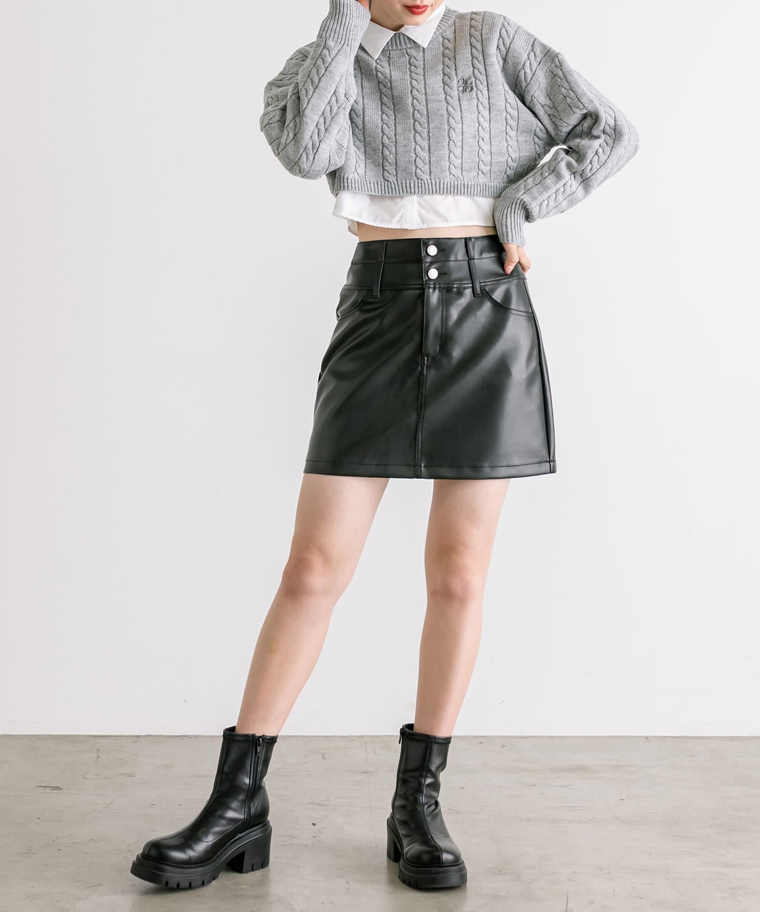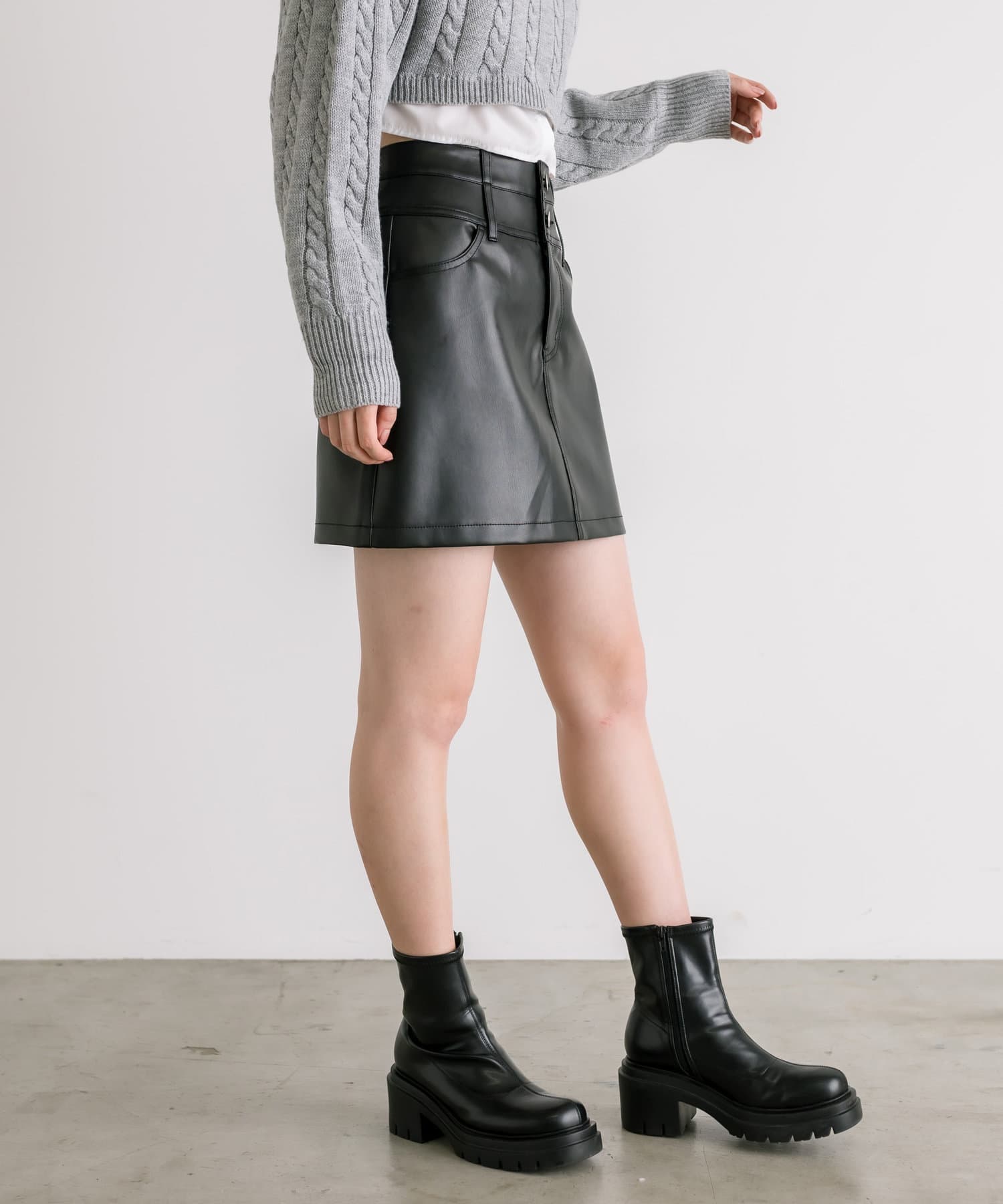 ・ダブルウエストデザインがトレンドライクなミニスカート。
