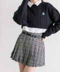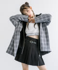素材 【デニム】表地: 綿100% 裏地: ポリエステル78%, 綿22% 【チャコール】表地: ポリエステル74%, レーヨン21%, ポリウレタン5% 裏地: ポリエステル100% 【ブラック】表地: ポリエステル70%, レーヨン25%, ポリウレタン5% 裏地: ポリエステル100% 【チェック】表地: ポリエステル98%, ポリウレタン2% 裏地: ポリエステル100% 全色共通: 合皮ベルト, 合成皮革