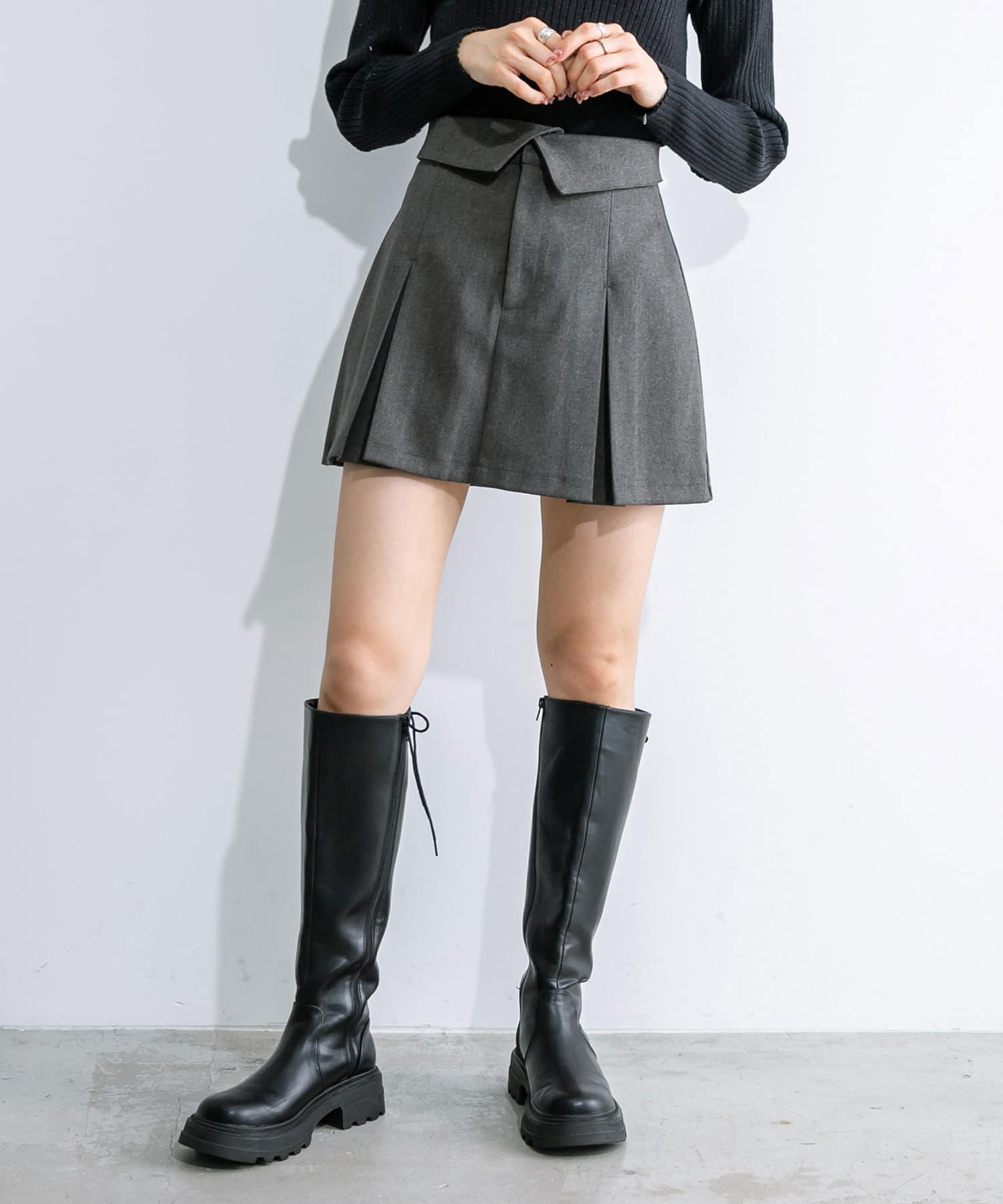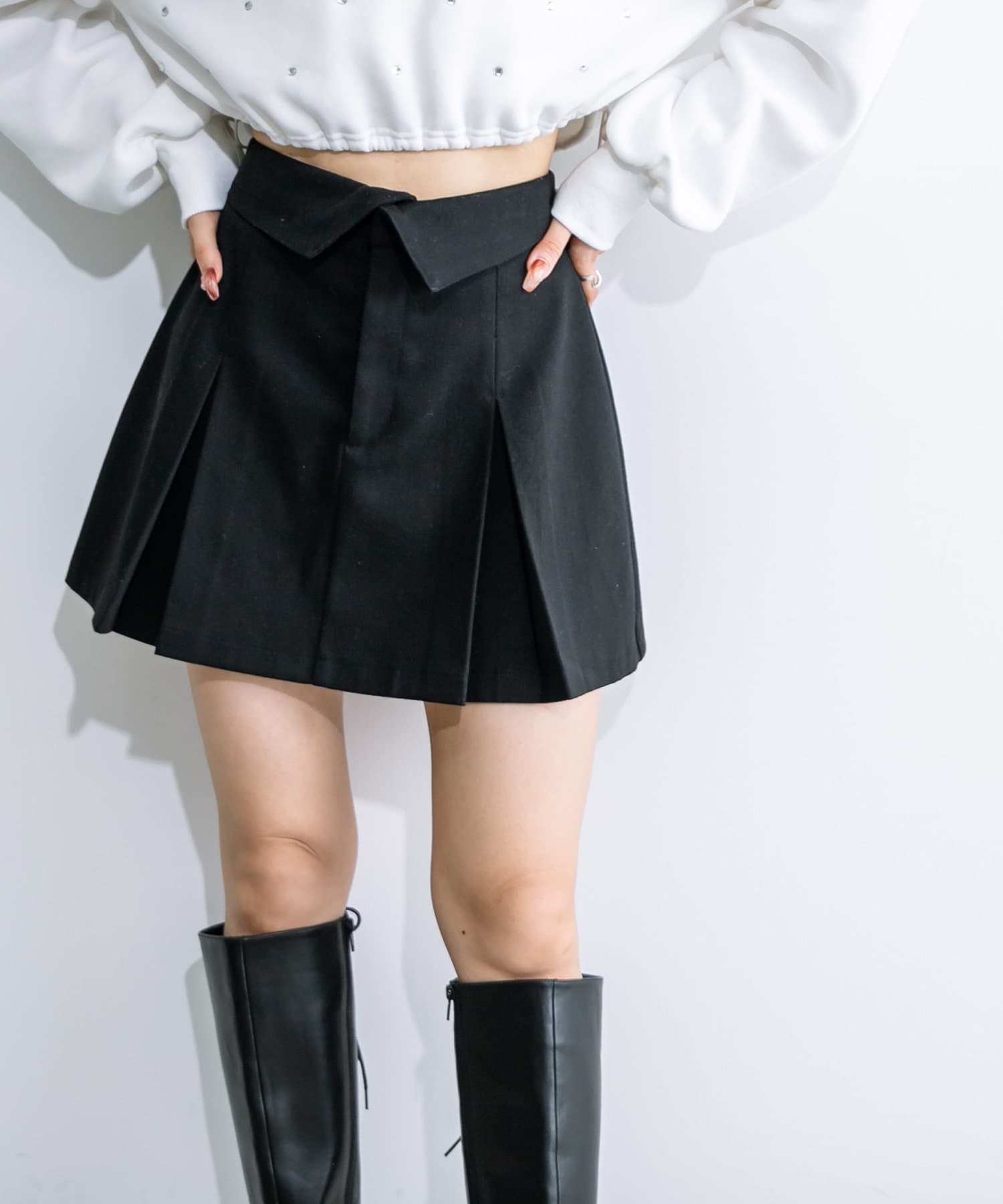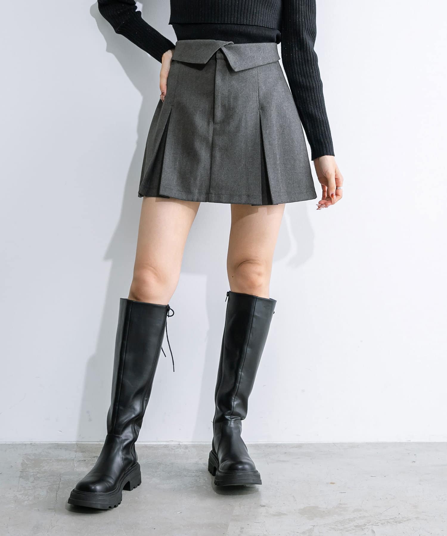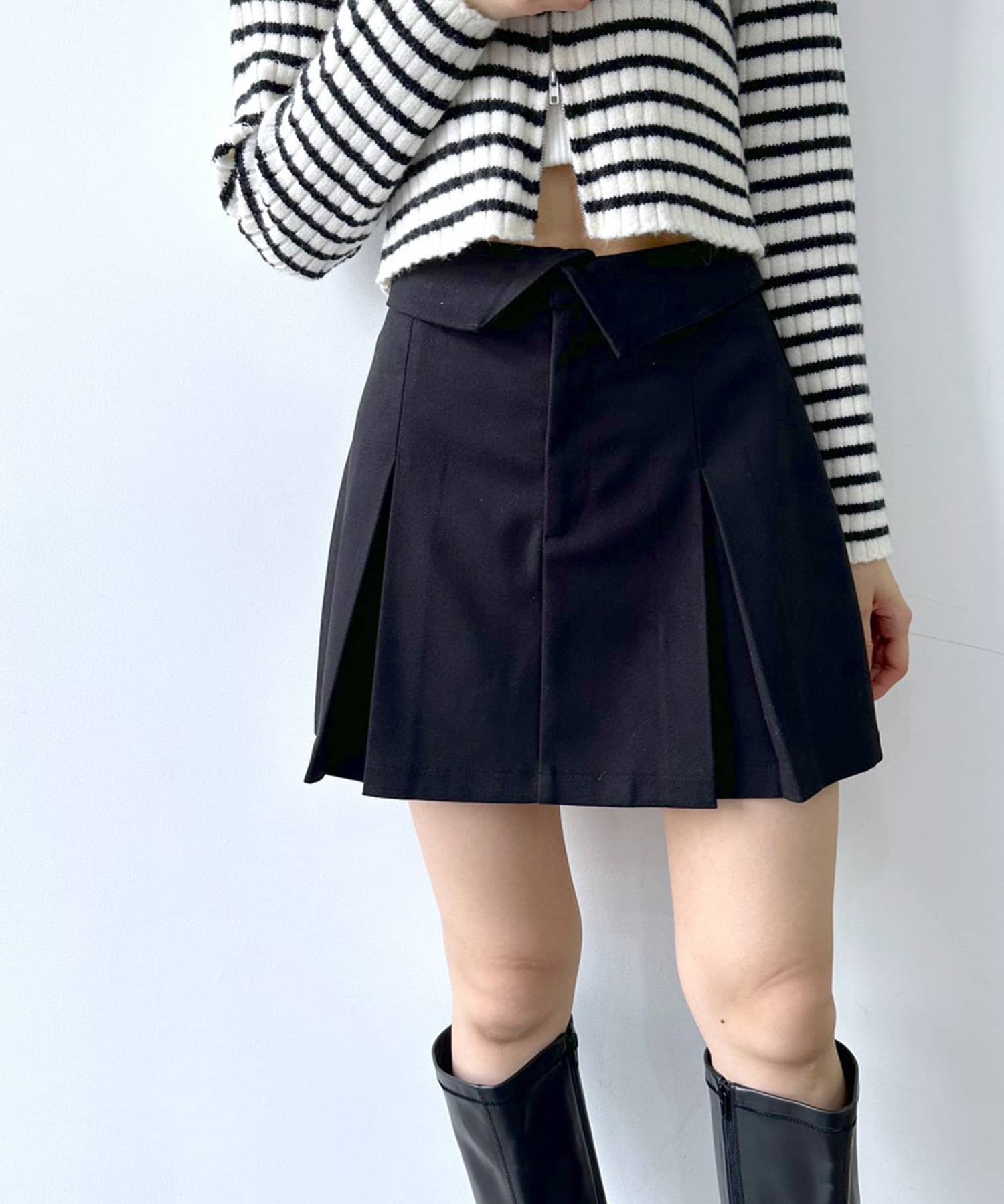 折り返しデザインがお洒落見えなプリーツミニスカート