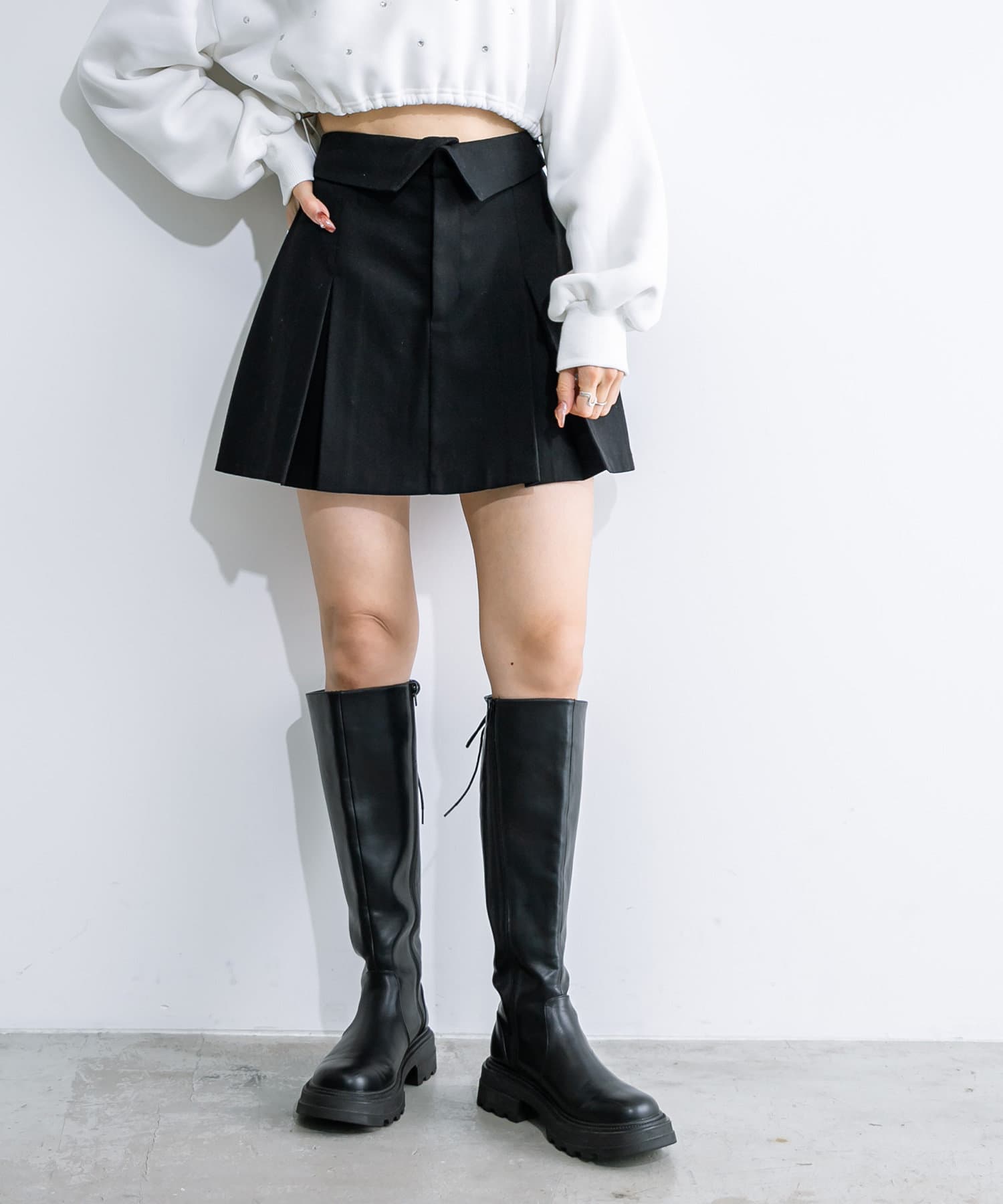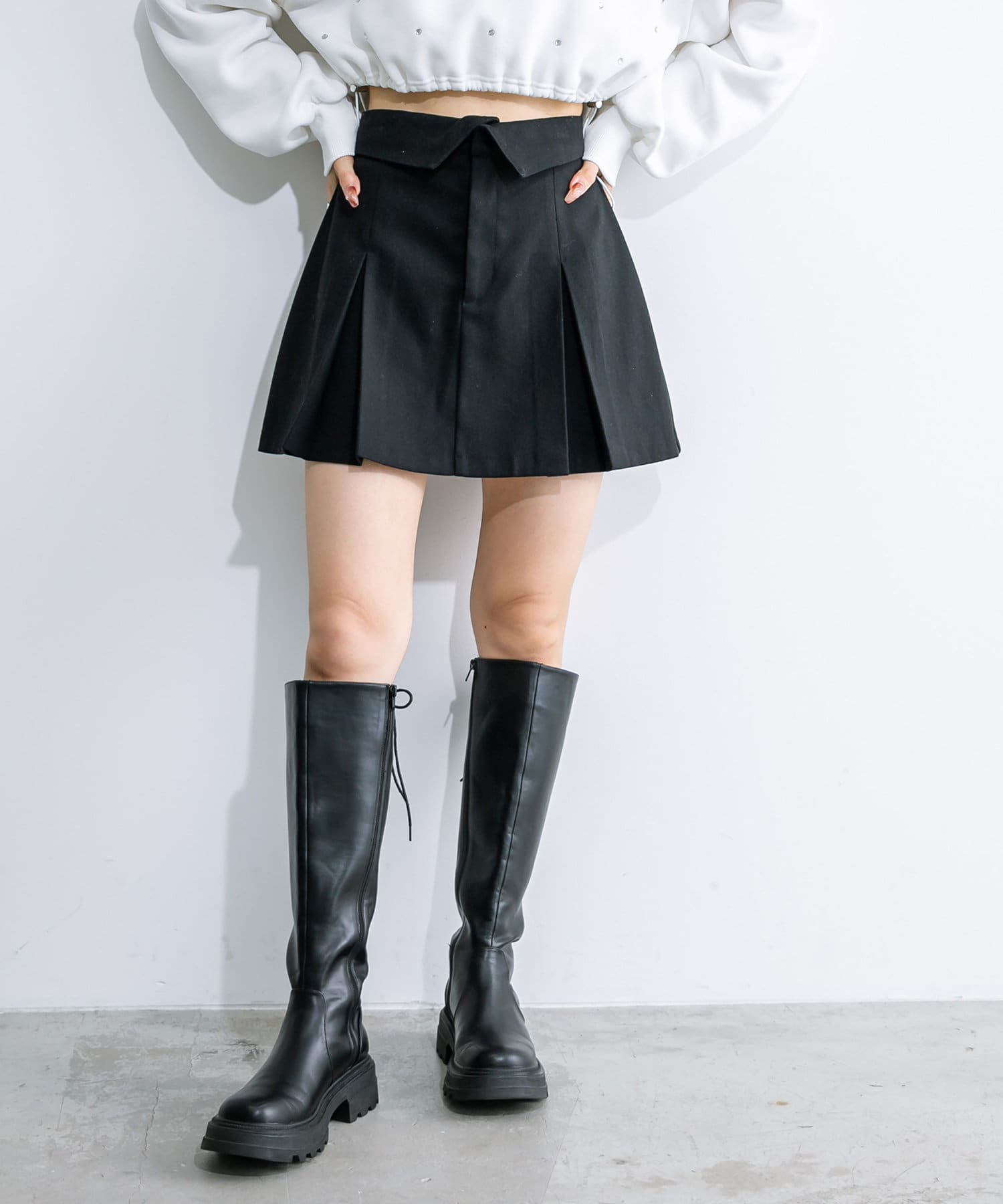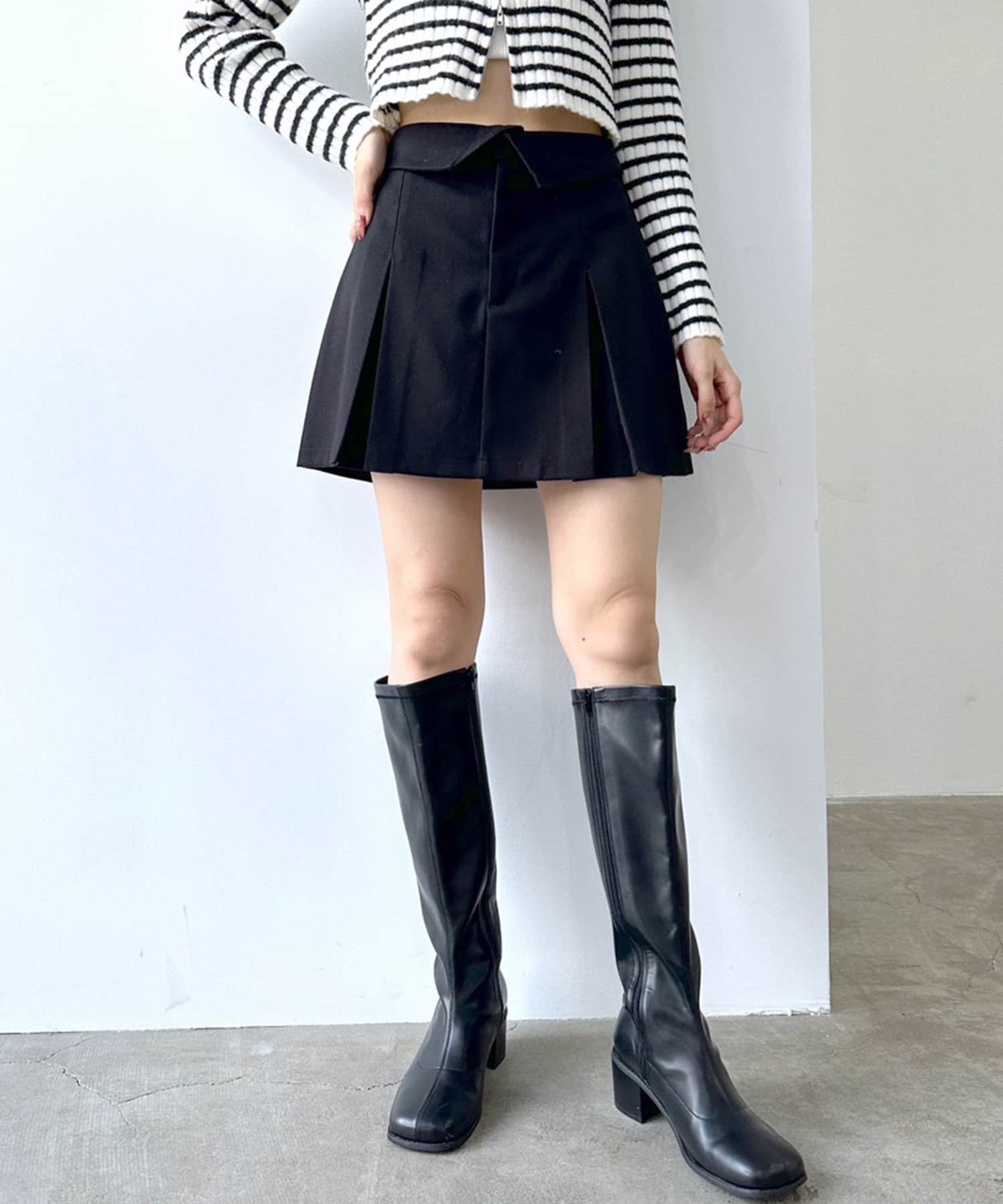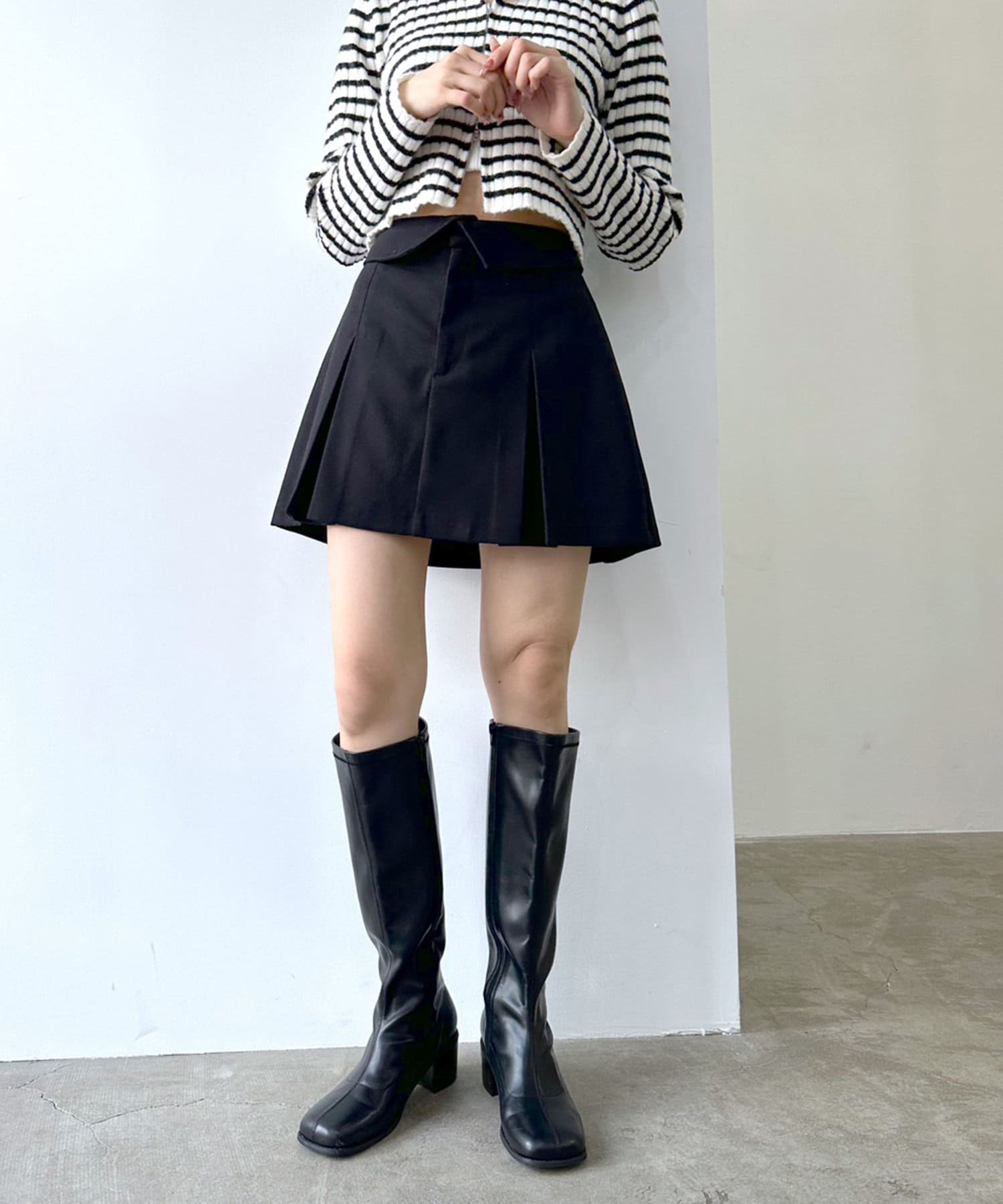折り返しデザインがお洒落見えなプリーツミニスカート