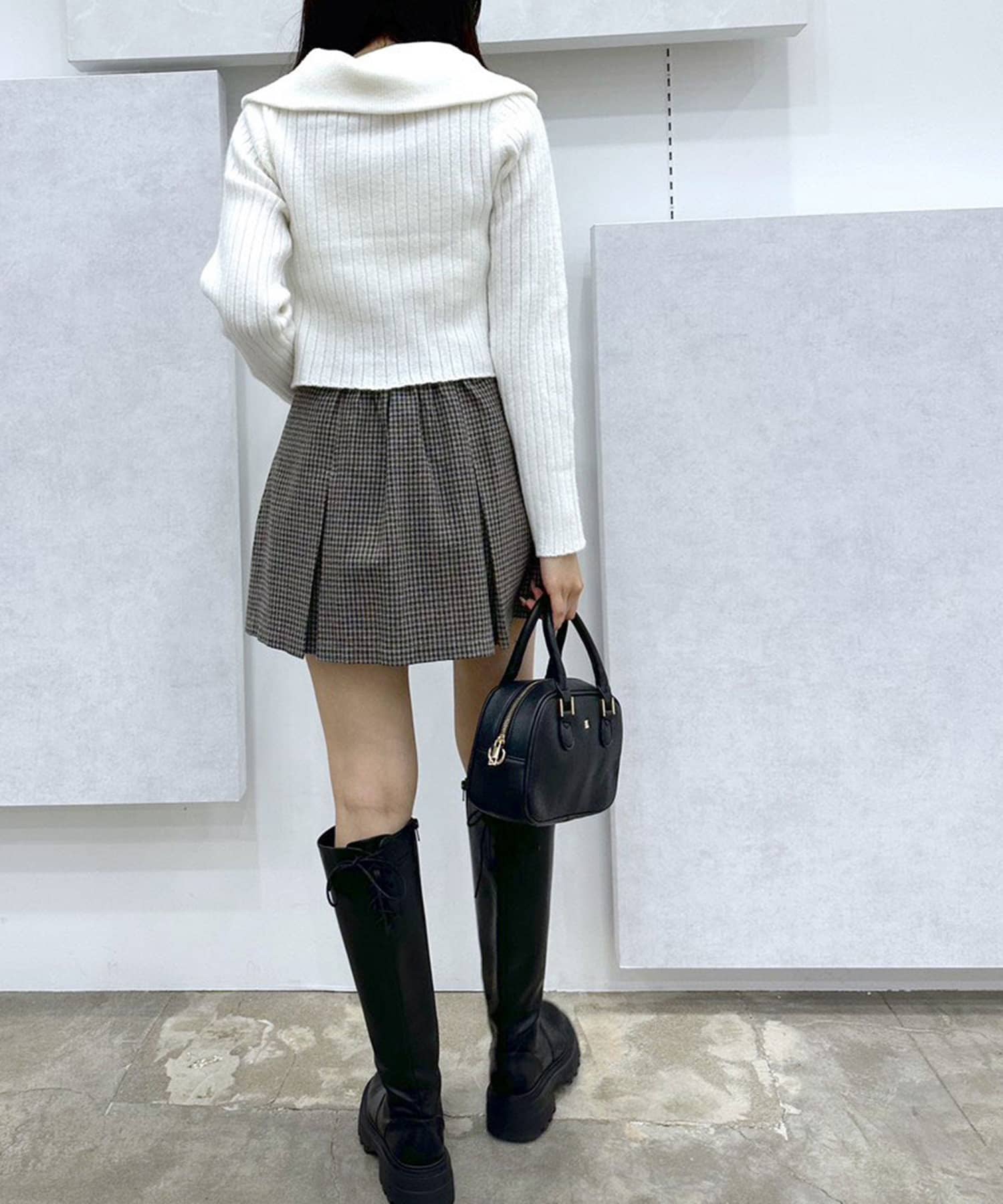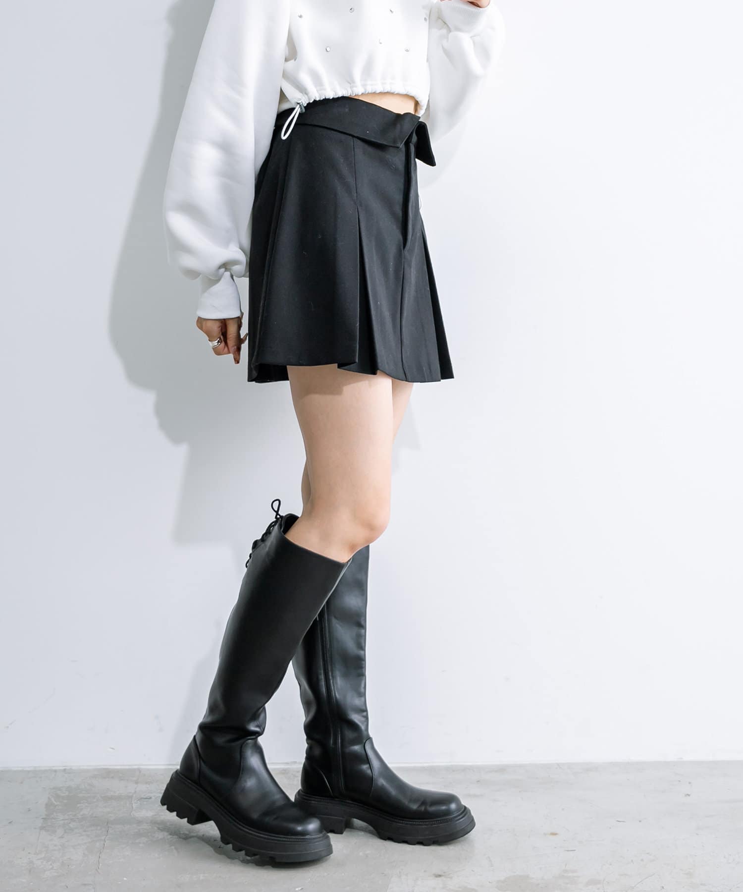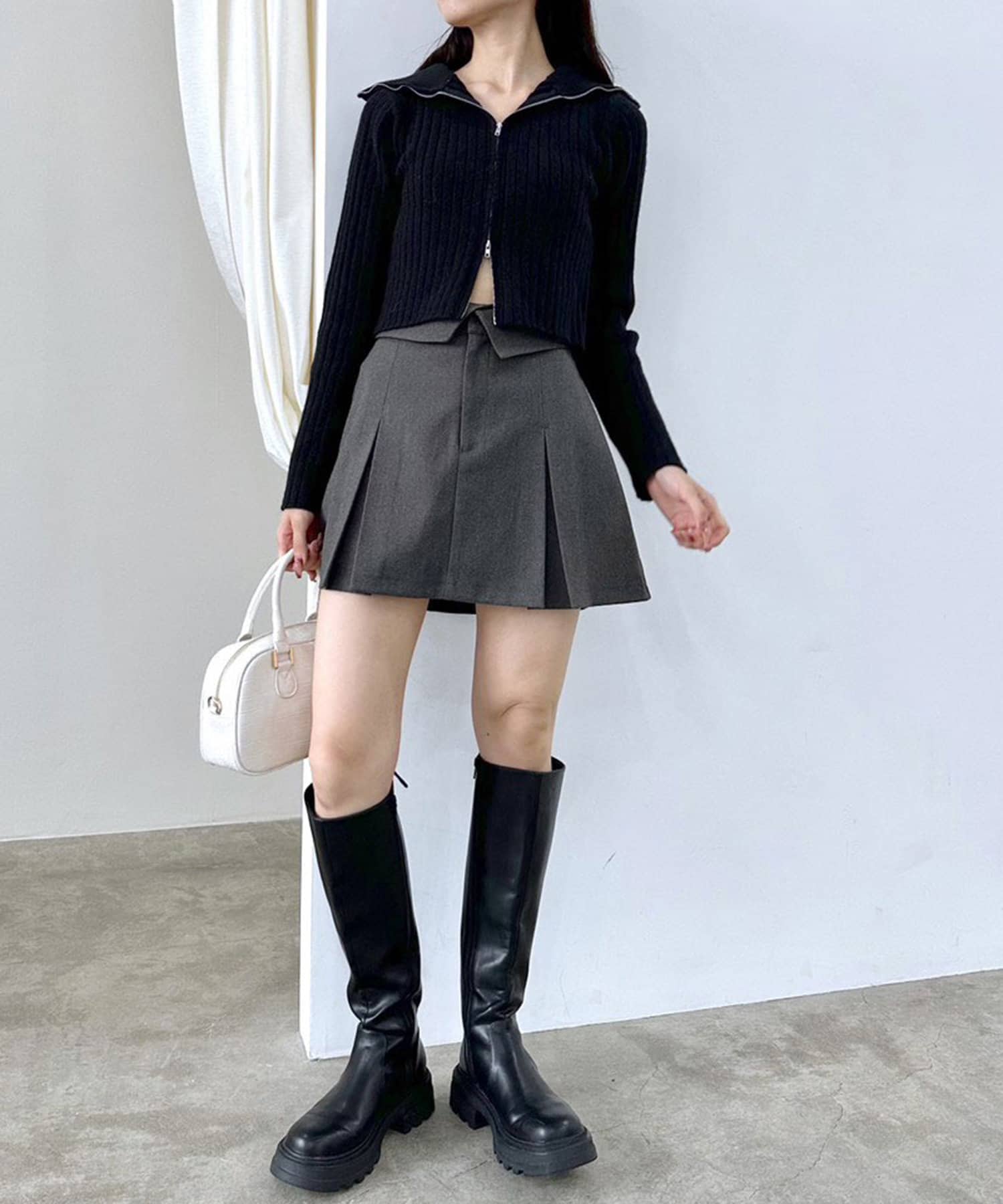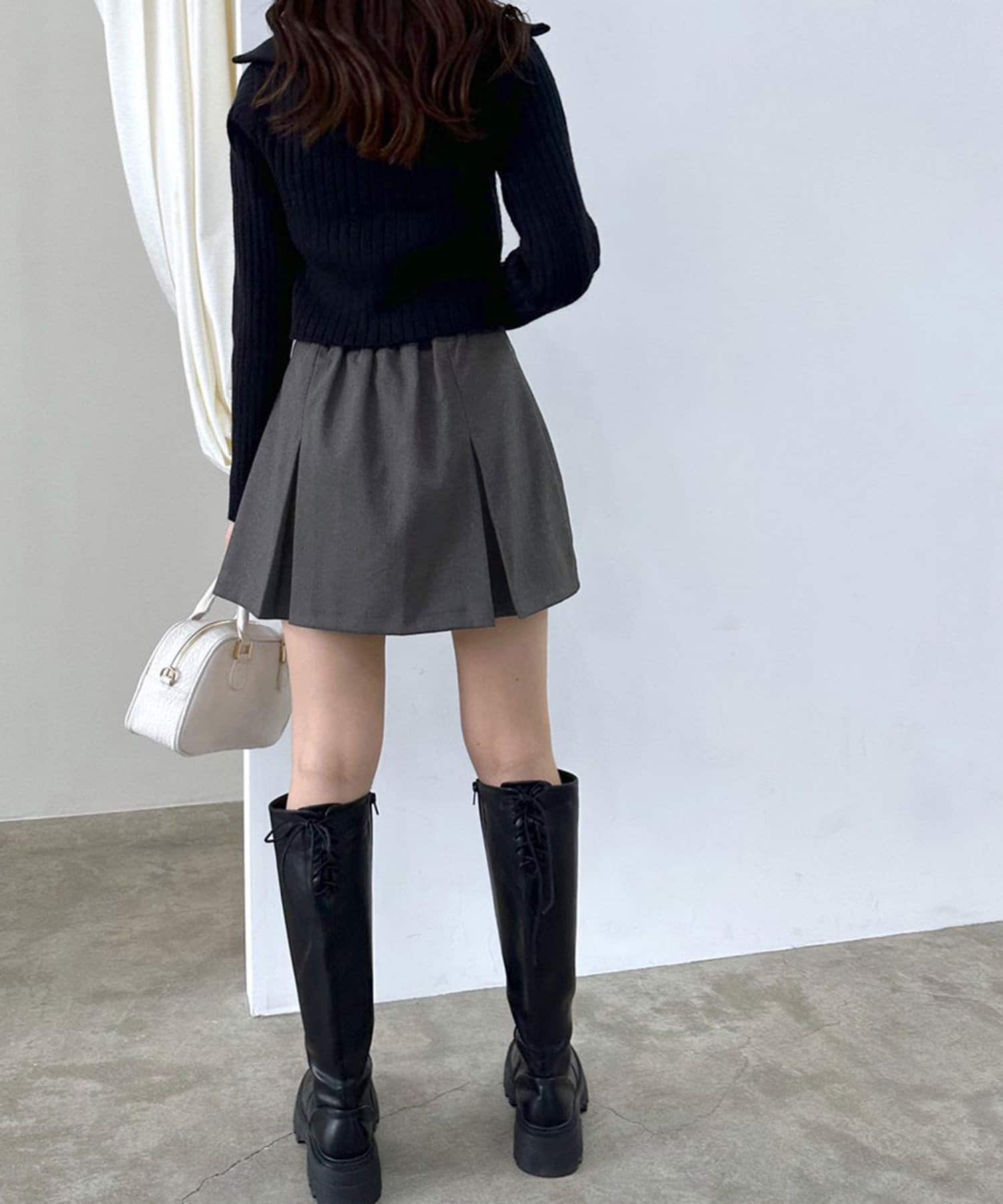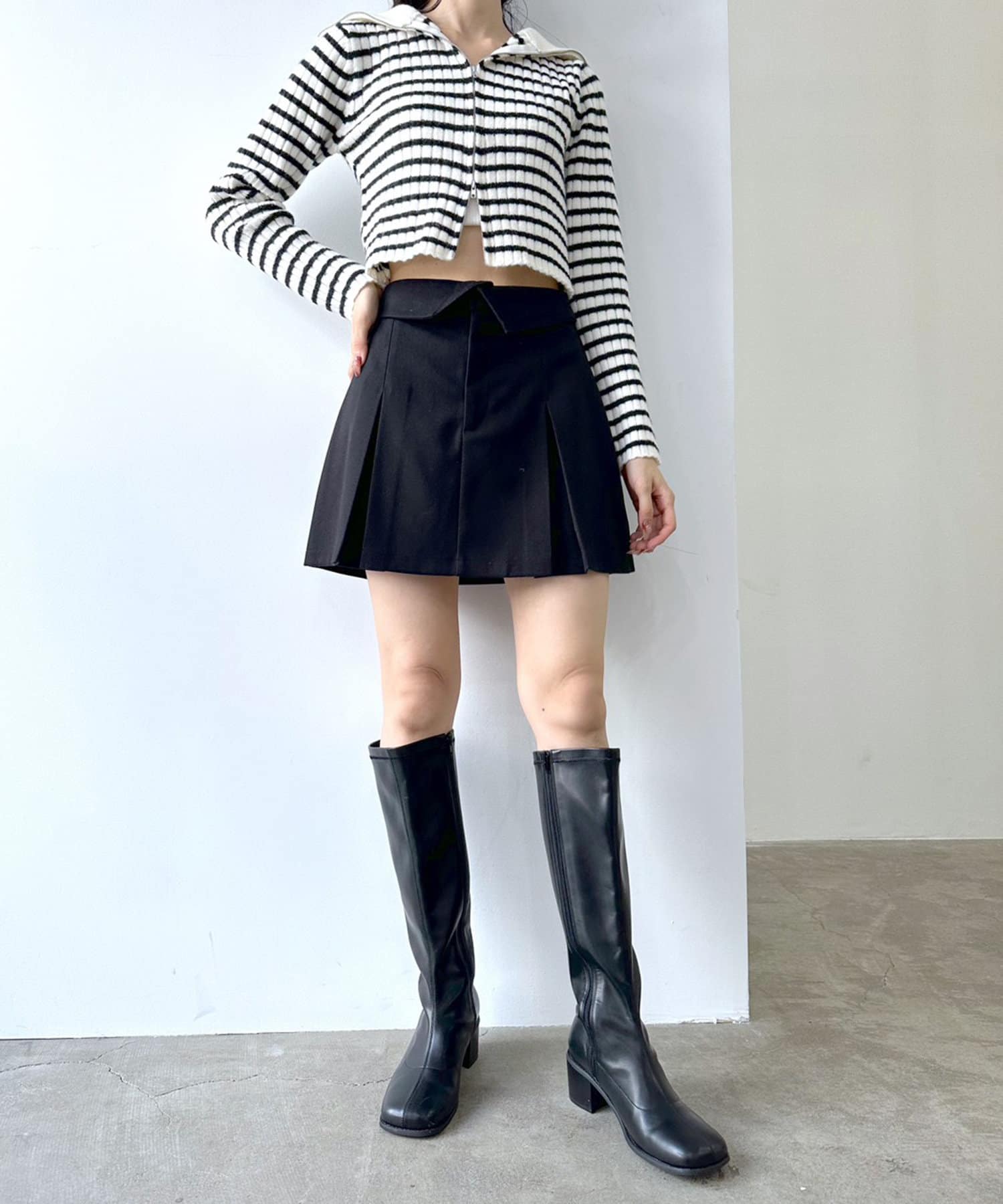 折り返しデザインがお洒落見えなプリーツミニスカート