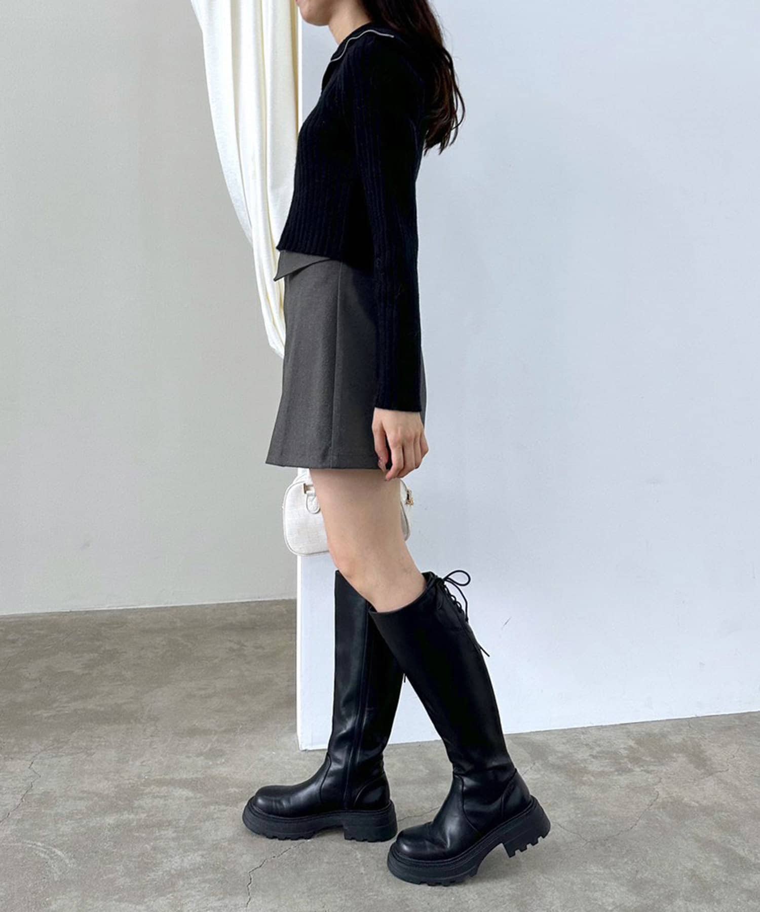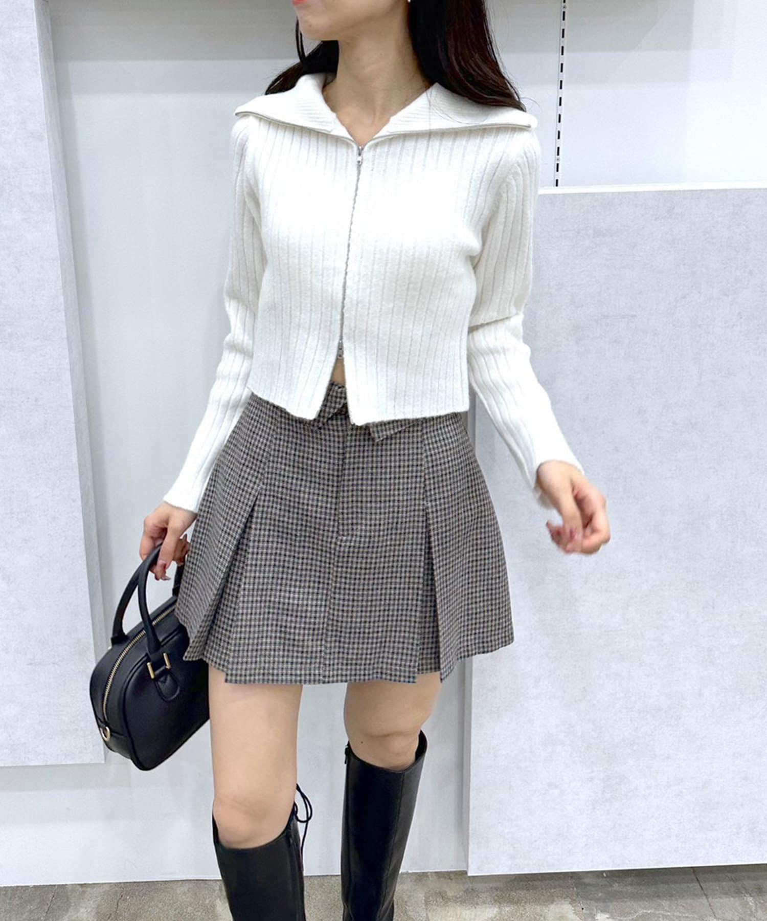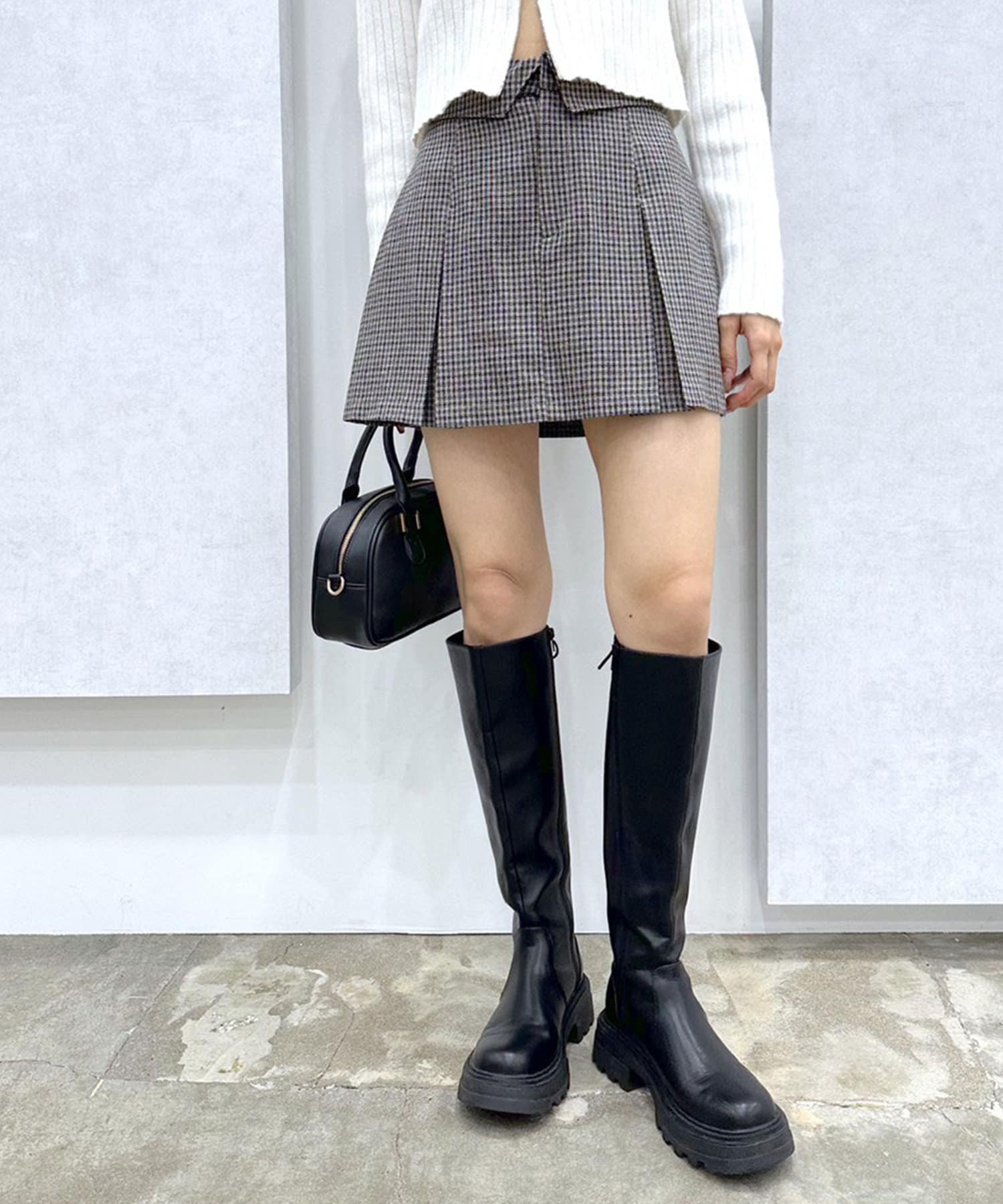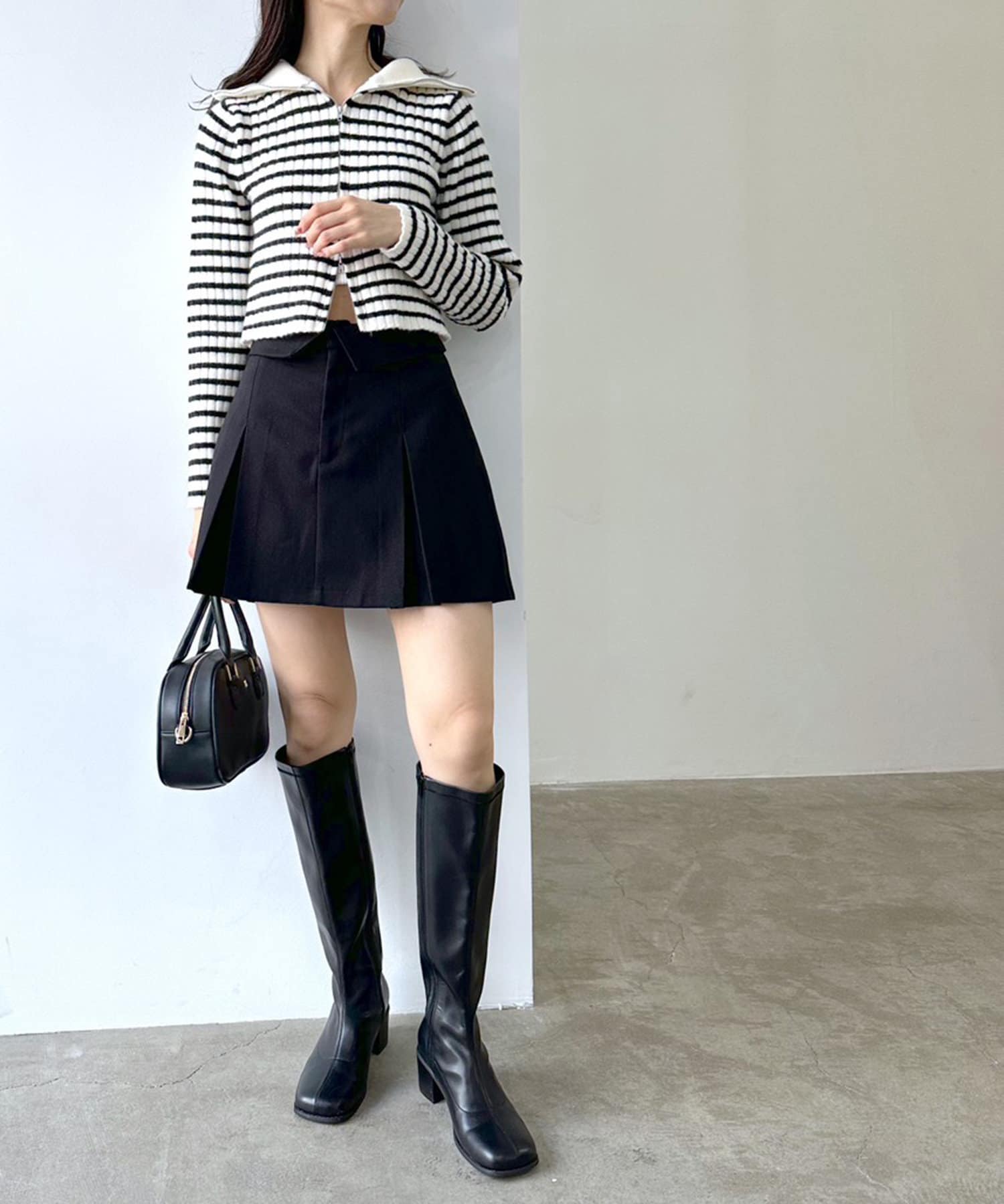 折り返しデザインがお洒落見えなプリーツミニスカート
