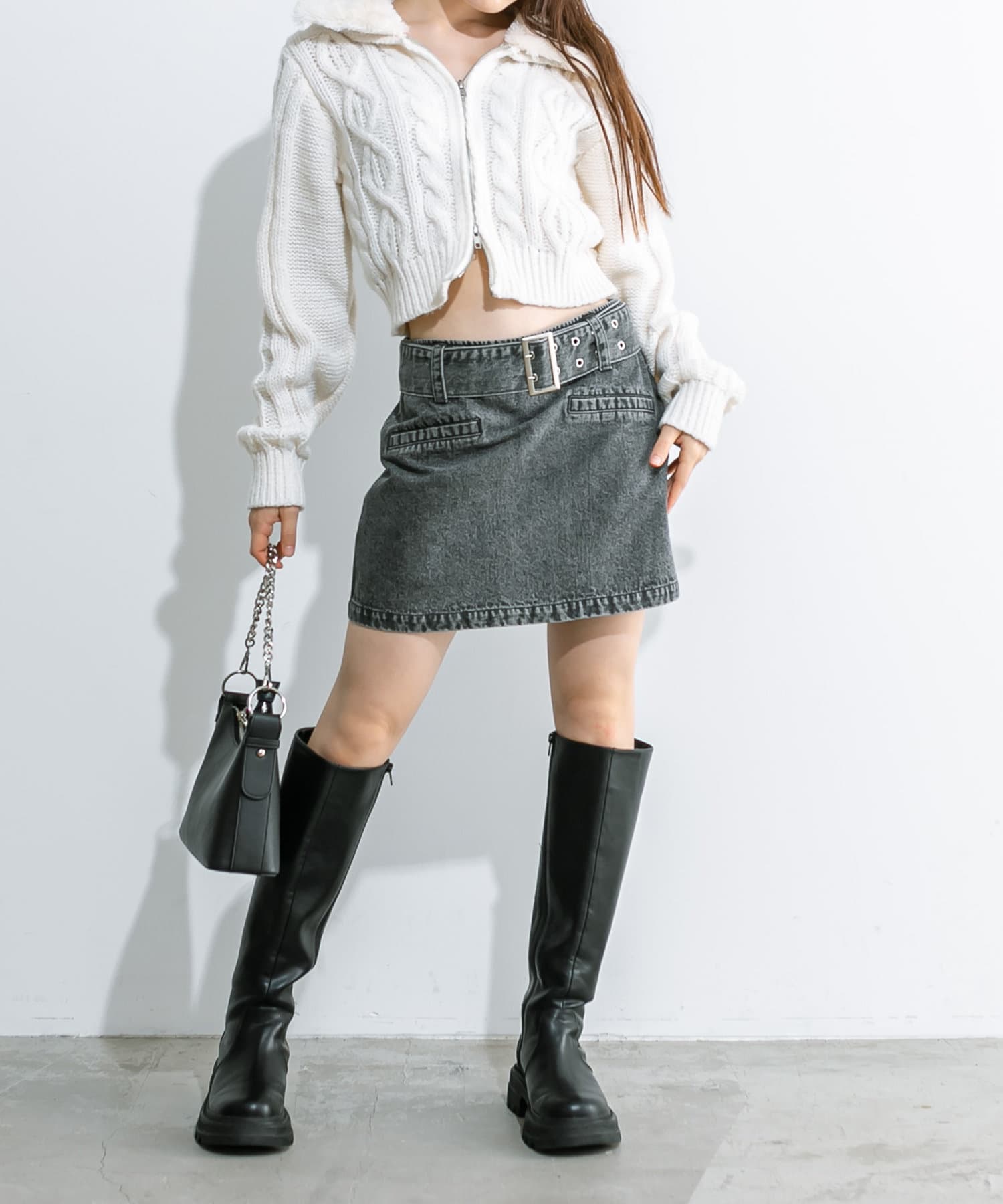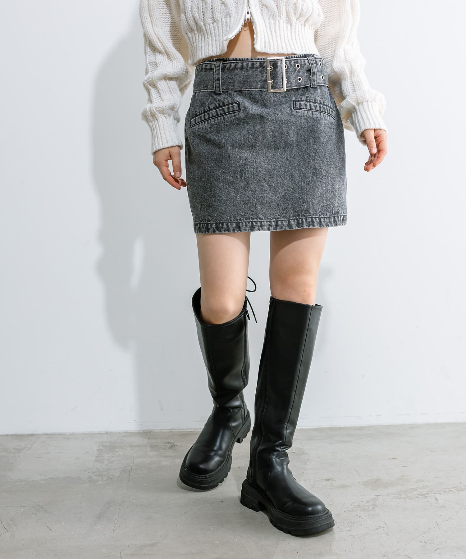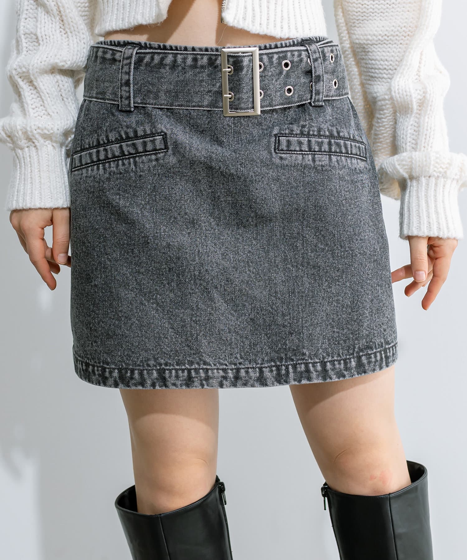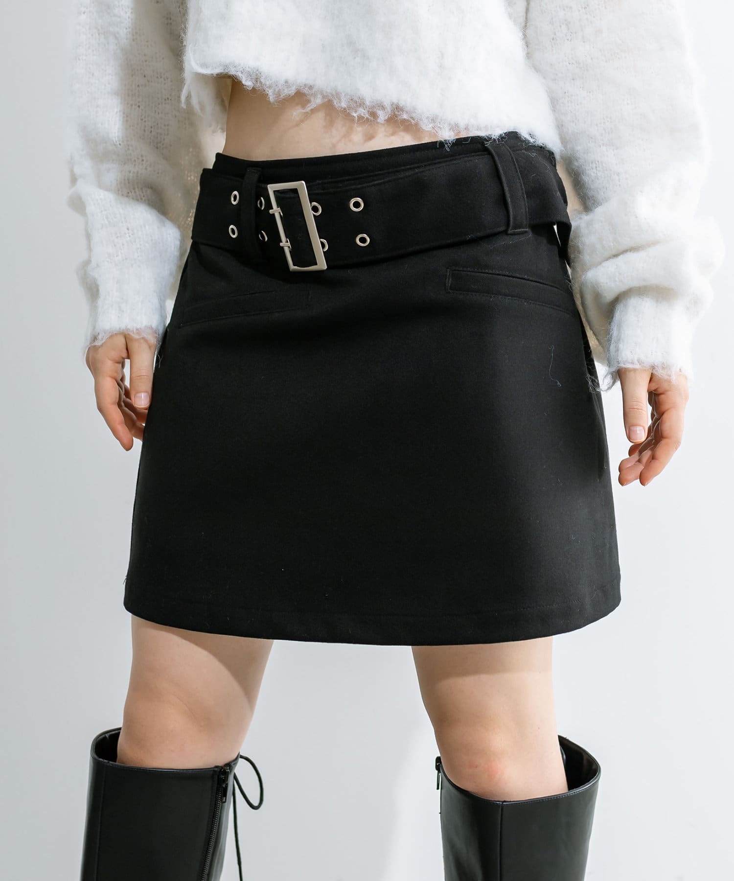 ハトメベルト付きミニスカート