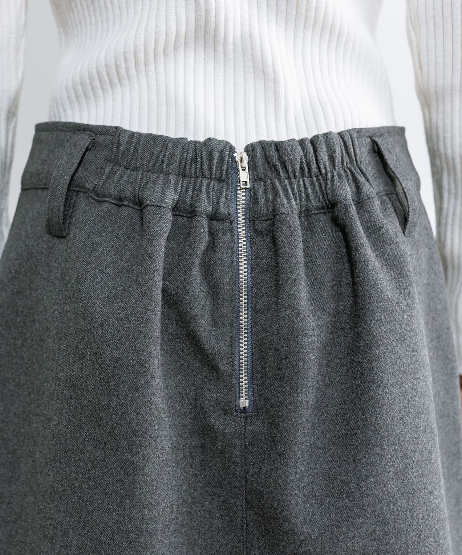 ・バックウエストはゴム入り。着脱しやすいファスナー付きです。